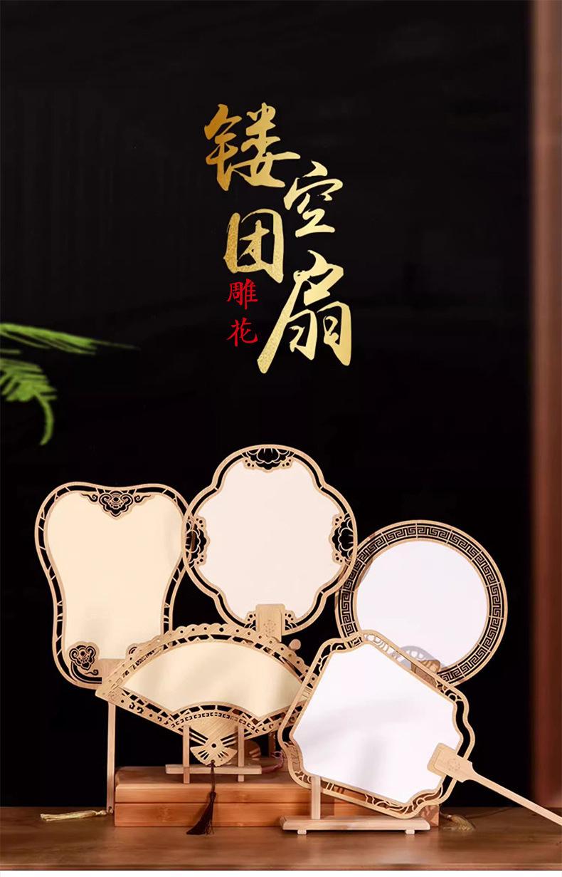 Abanico Redondo Hueco Abanico de Palacio Abanico en Blanco Caligrafía Pintura Francesa Abanico para Pintar Abanico de Palacio de Alta Gama Bambú Estilo Antiguo Estilo Chino Pintado a Mano