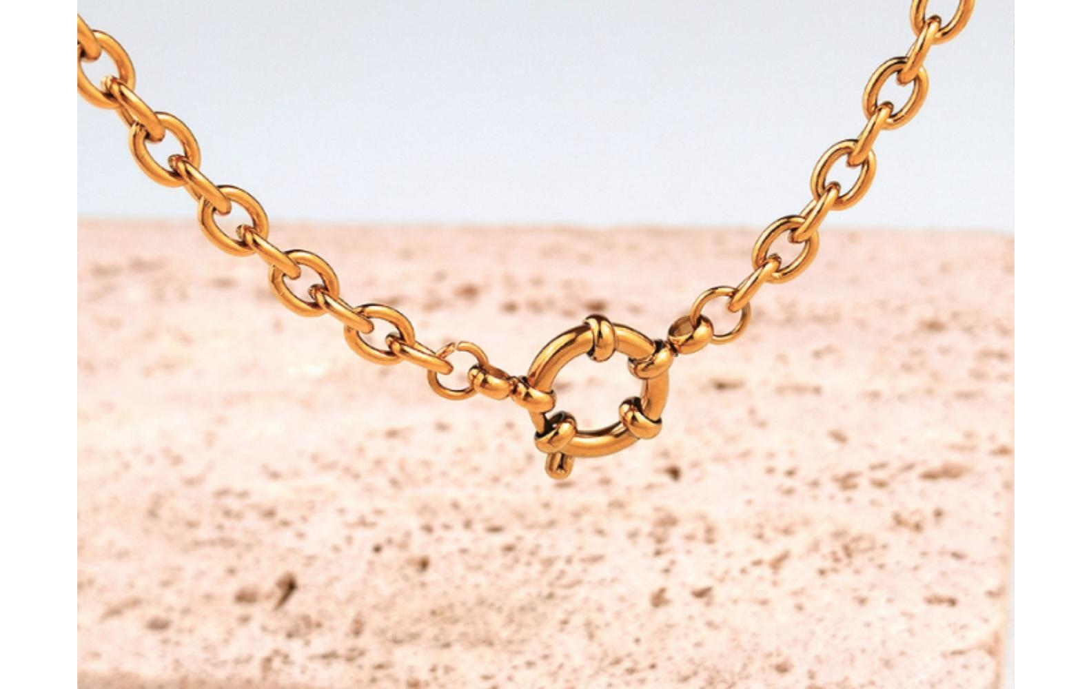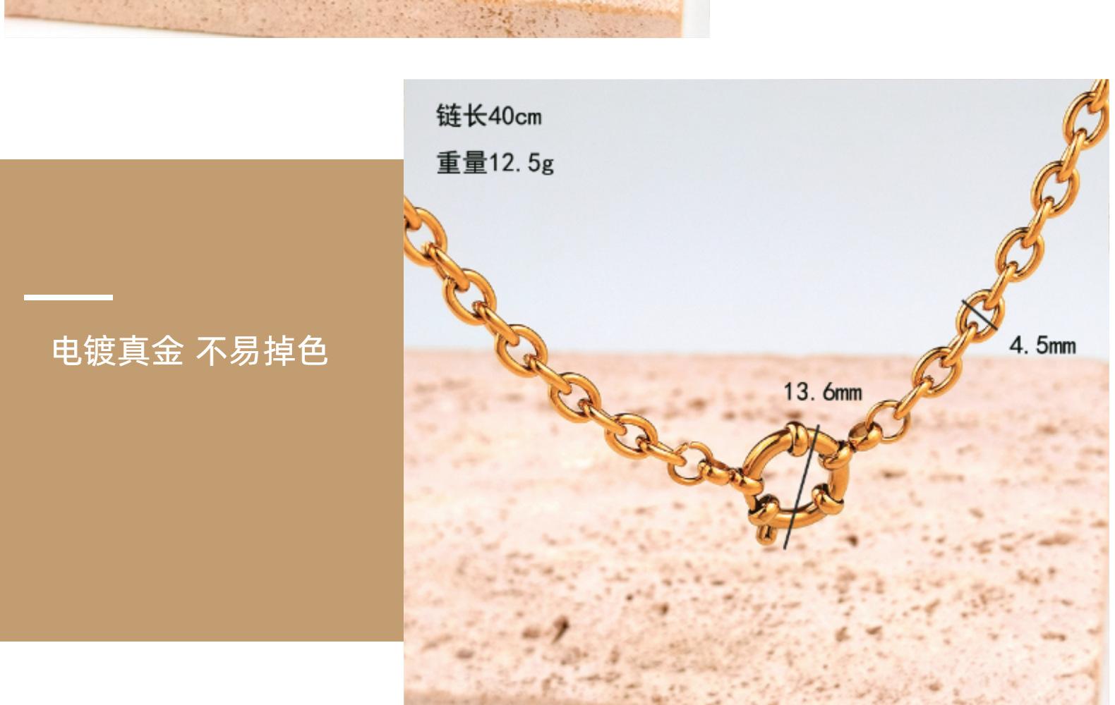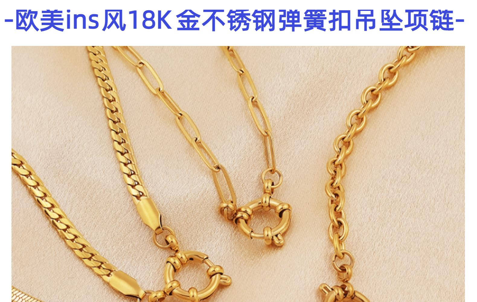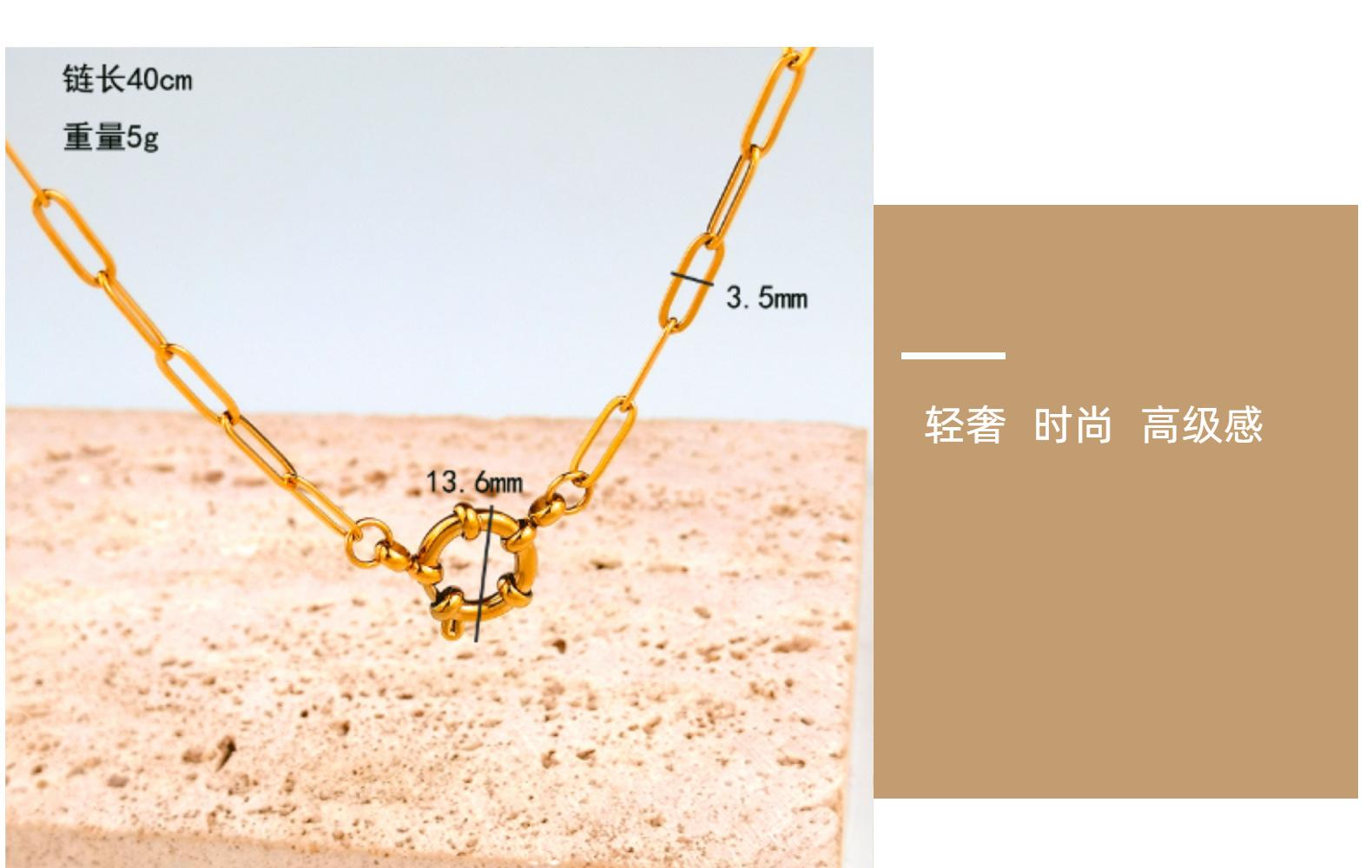 Spring buckle pendant necklace-o-shaped chain gold, Spring buckle pendant necklace-paper pin chain gold, Sprin...