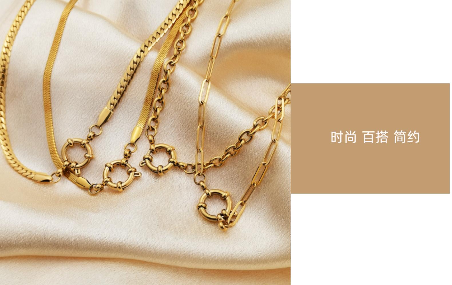 Moda INS Europea y Americana Nuevo Collar con Colgante de Hebilla de Primavera Acero Inoxidable Electrochapado Oro de 18K Collar de Hoja O para Mujer