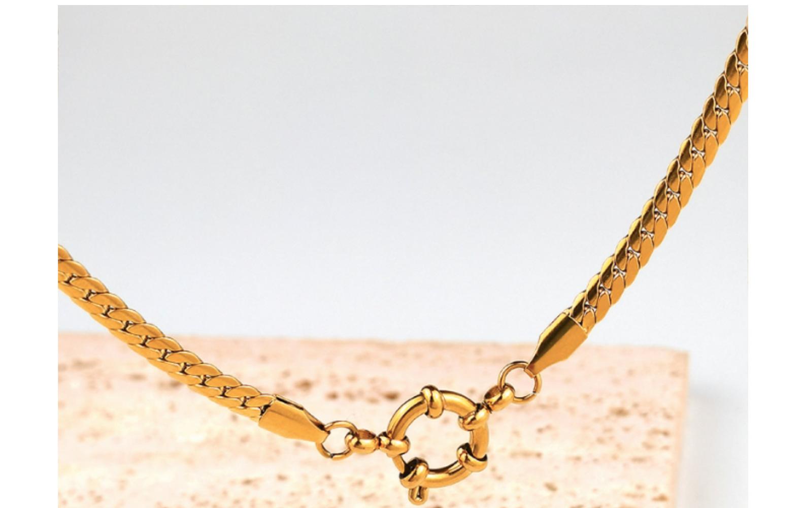 Spring Buckle Pendant Necklace-Blade Chain Gold