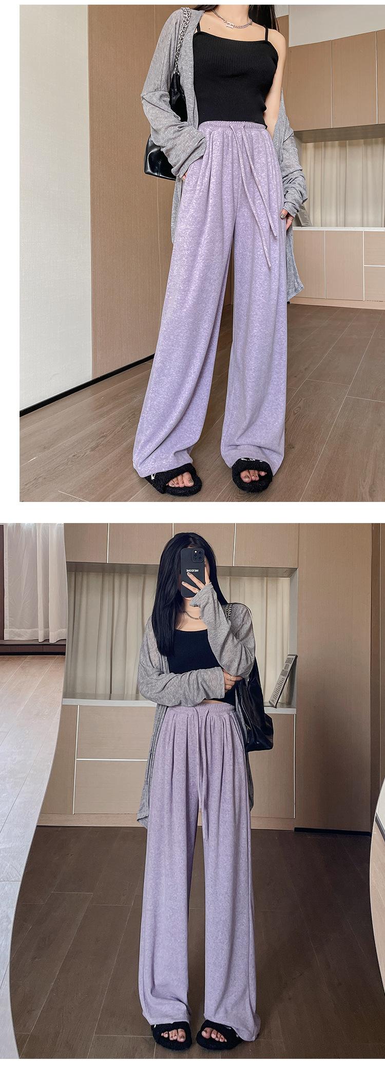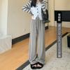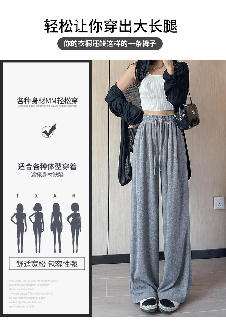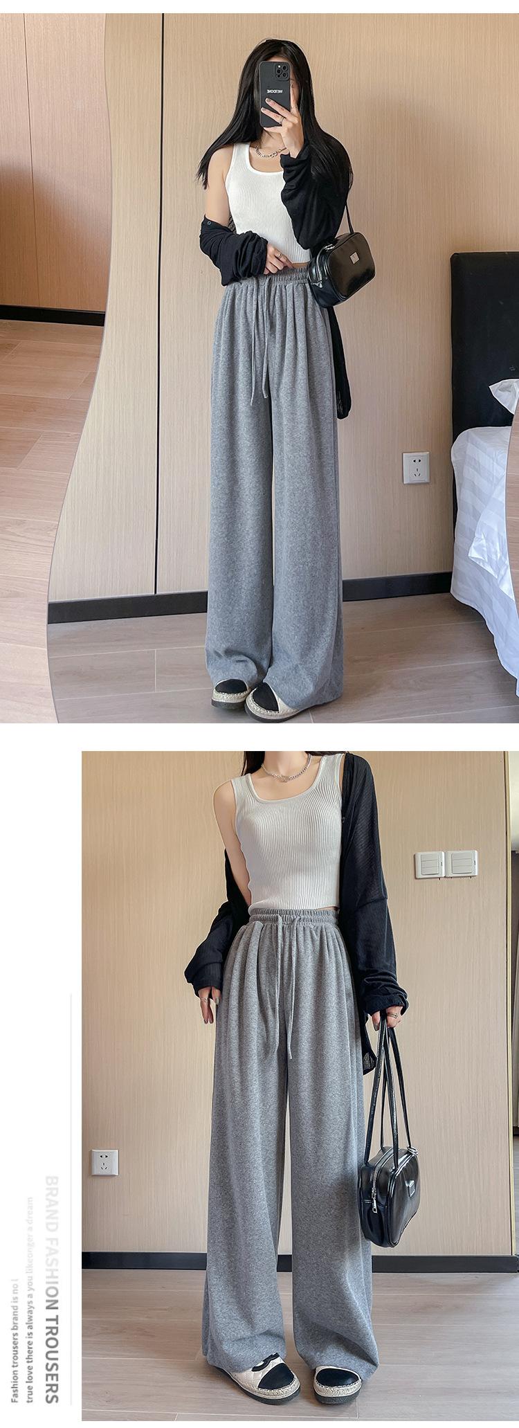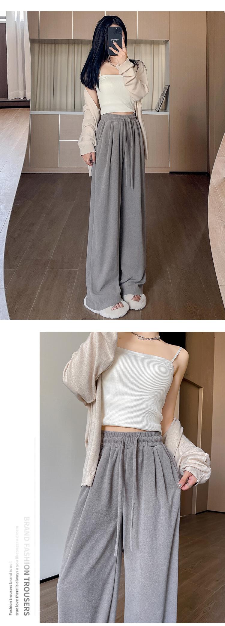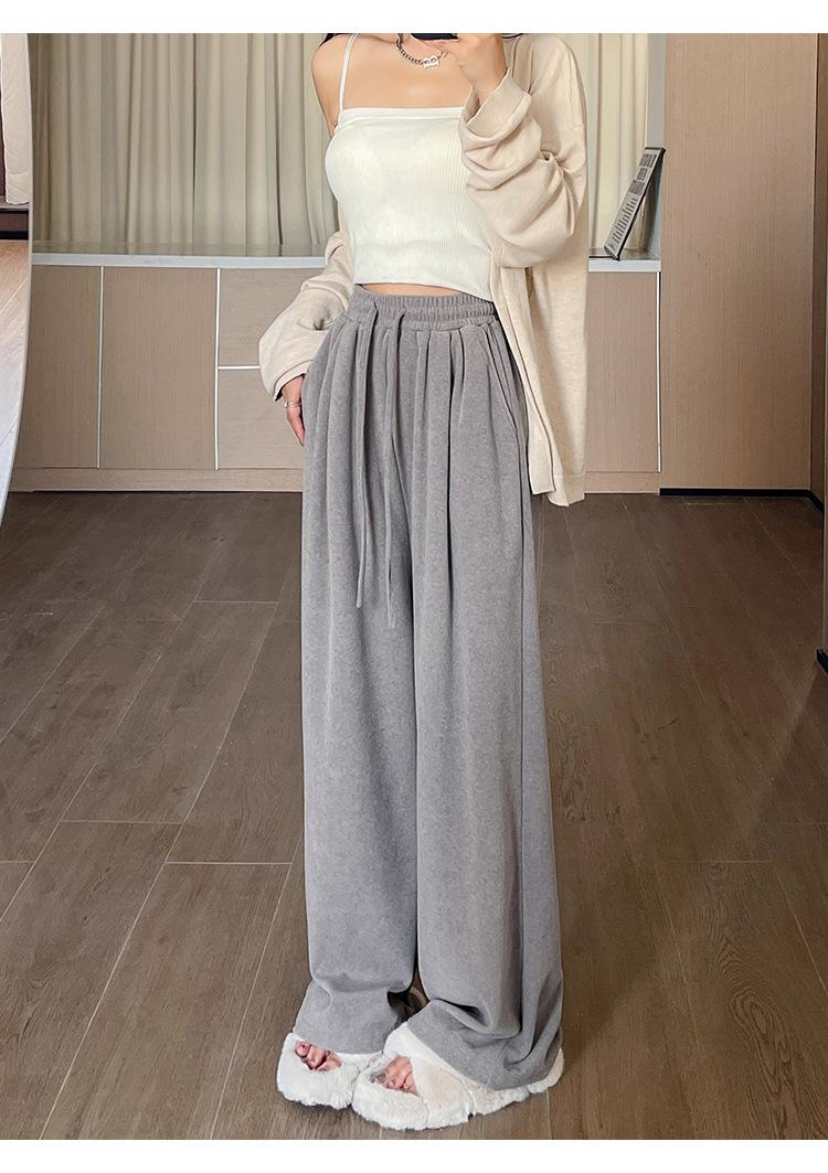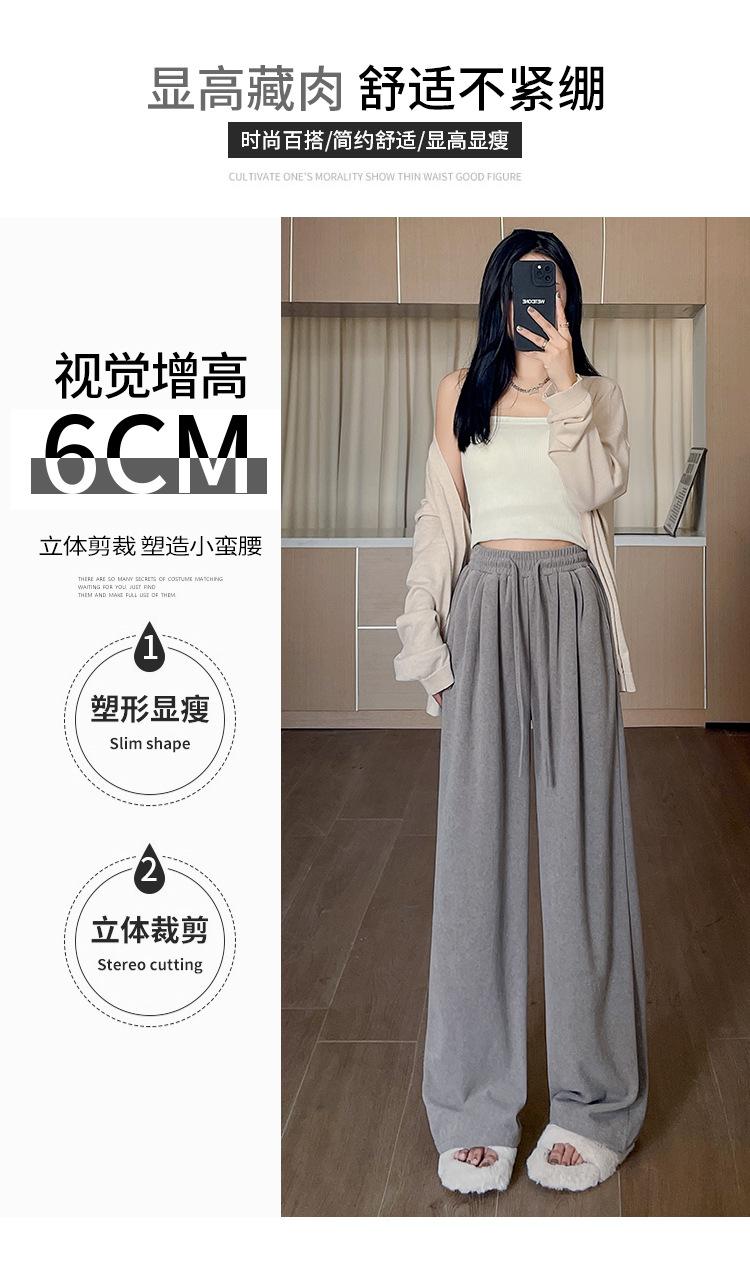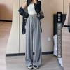 Pantalones grises de pierna ancha para mujer Primavera y Otoño 2025 Nuevo Pantalón recto drapeado ajustado de cintura alta Suelto Casual Suave Pantalón toalla ceroso