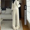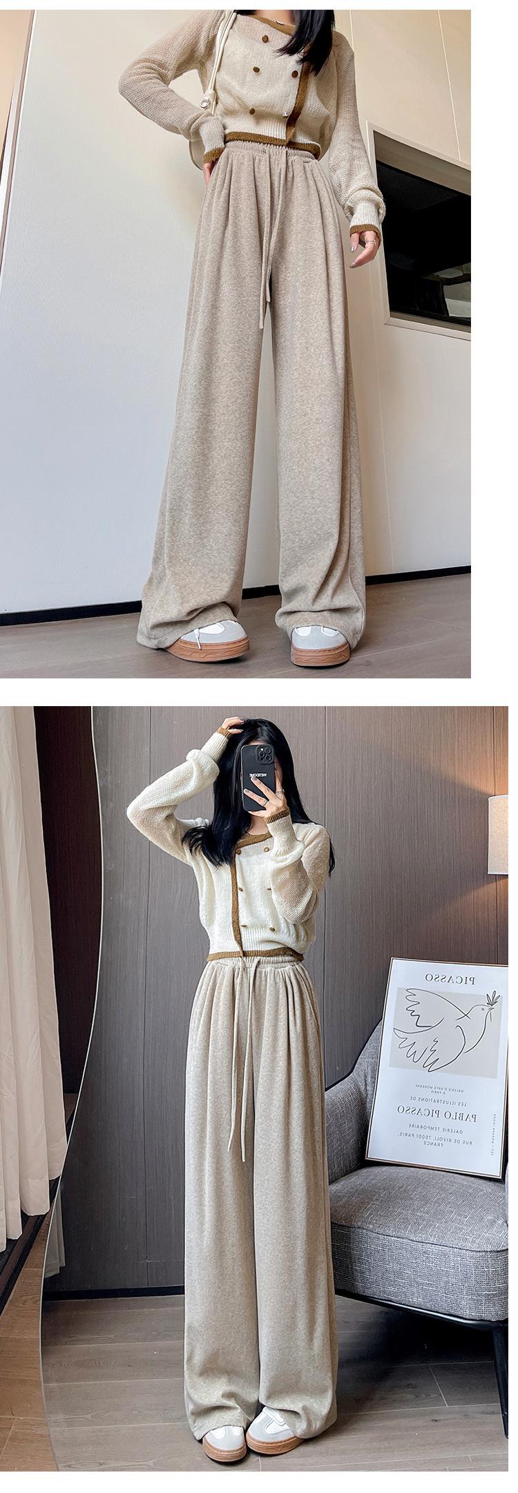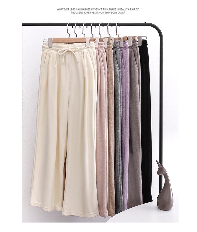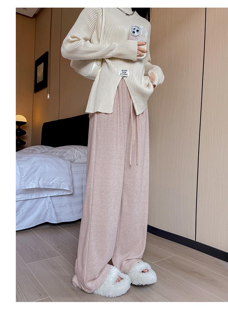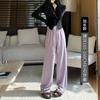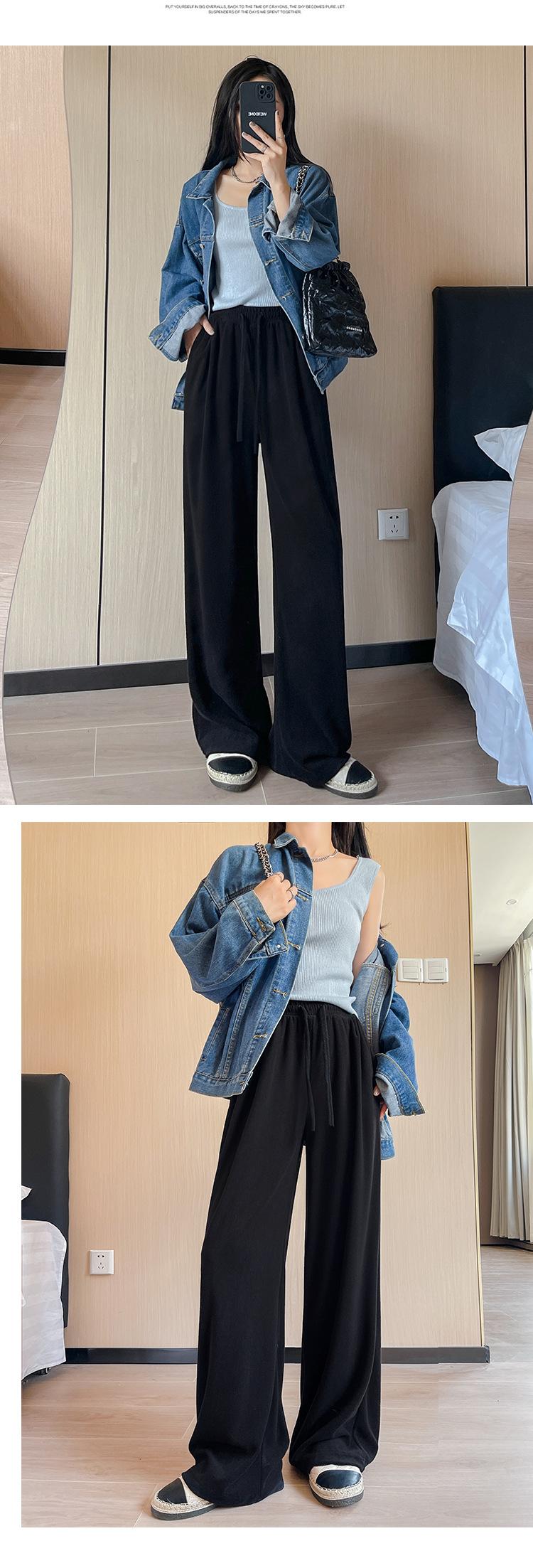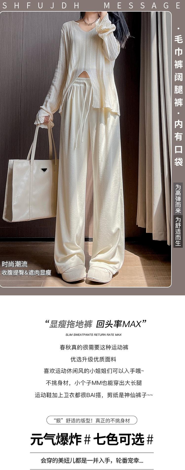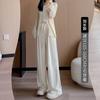Pantalones grises de pierna ancha para mujer Primavera y Otoño 2025 Nuevo Pantalón recto drapeado ajustado de cintura alta Suelto Casual Suave Pantalón toalla ceroso