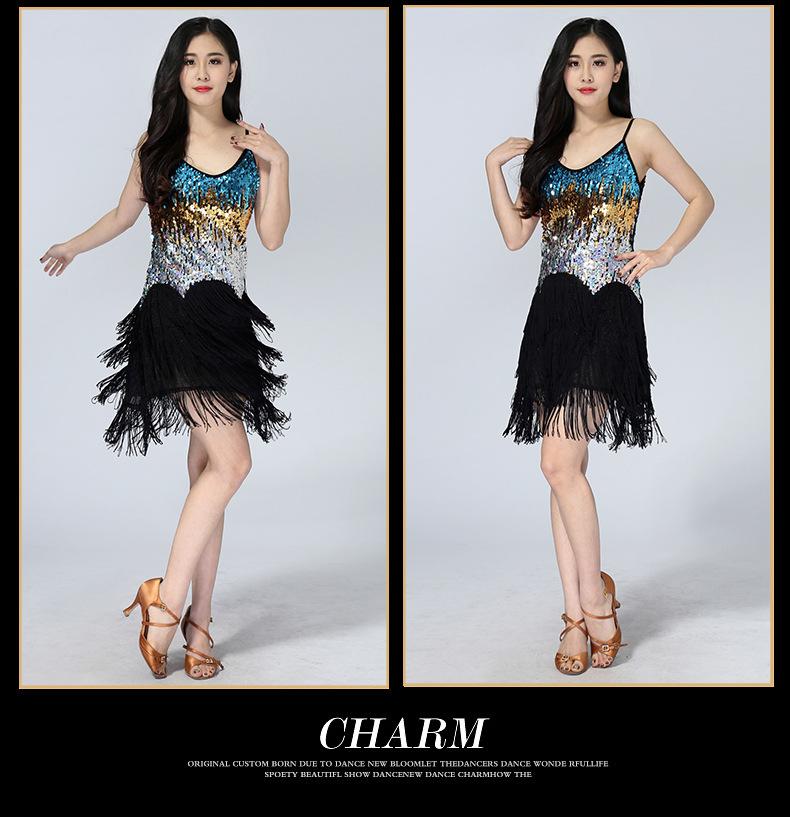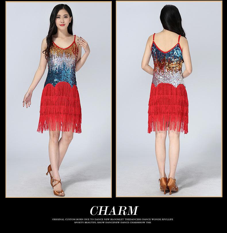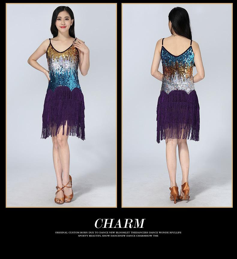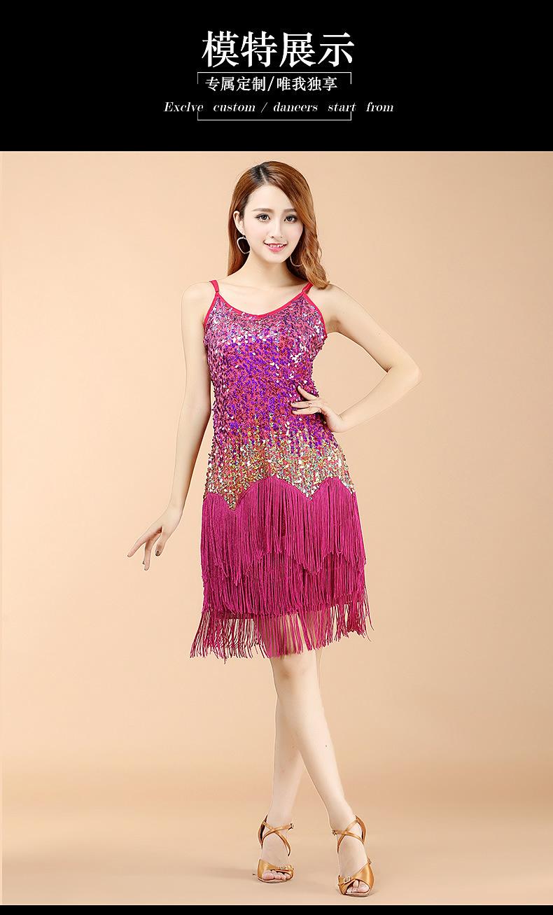 Bailarina n.° 11, disfraz de baile latino para mujer adulta, disfraz de otoño, vestido de baile latino con borlas para competición