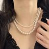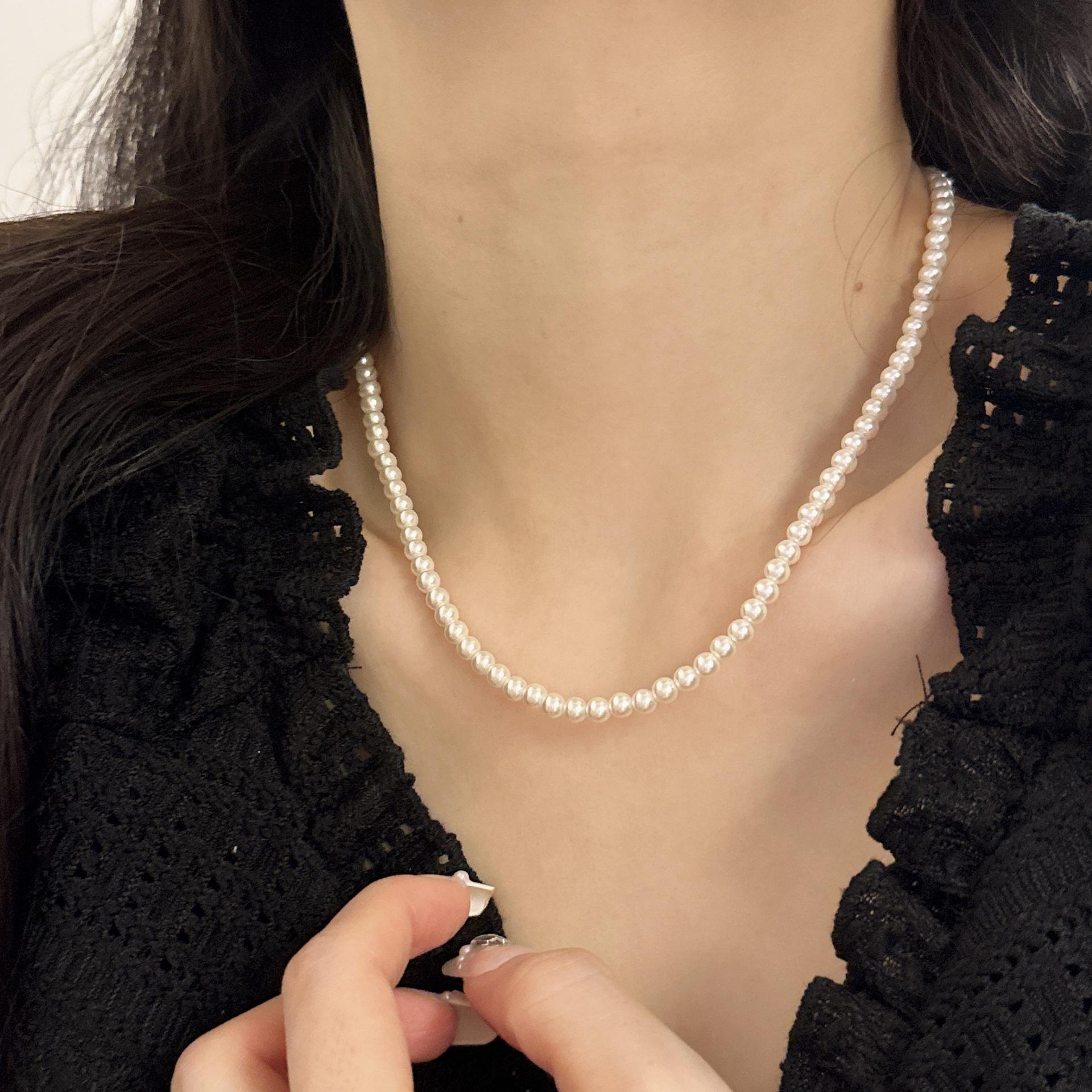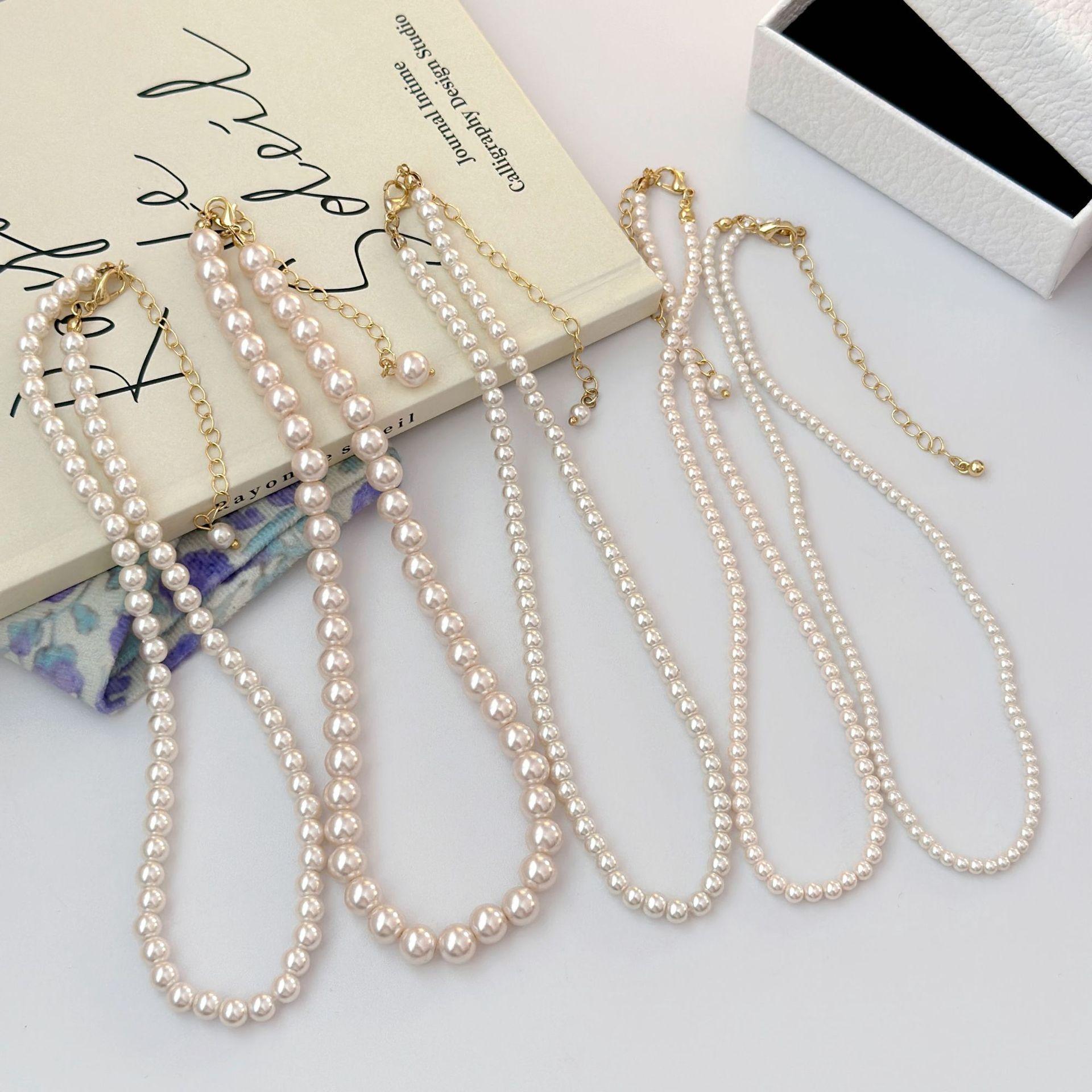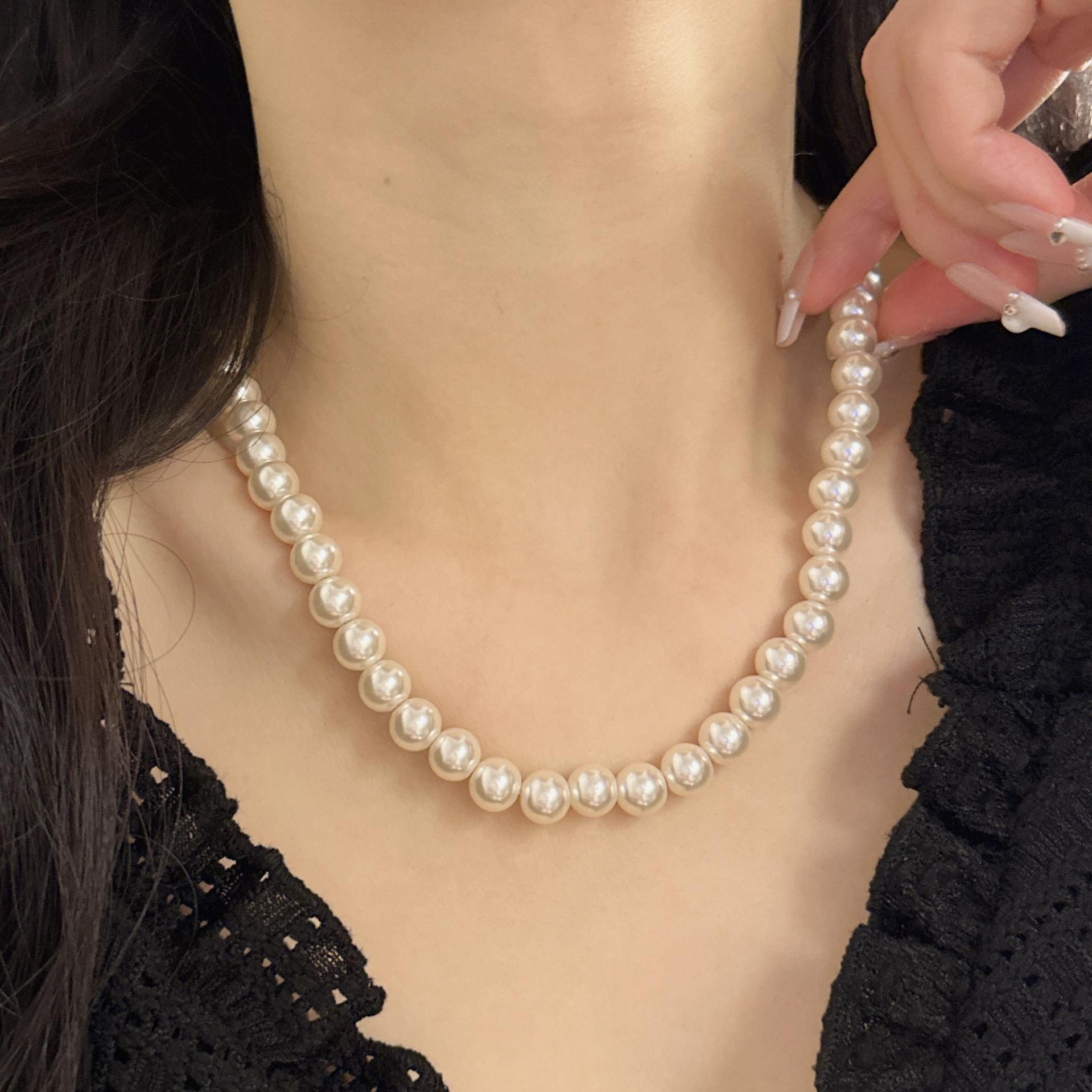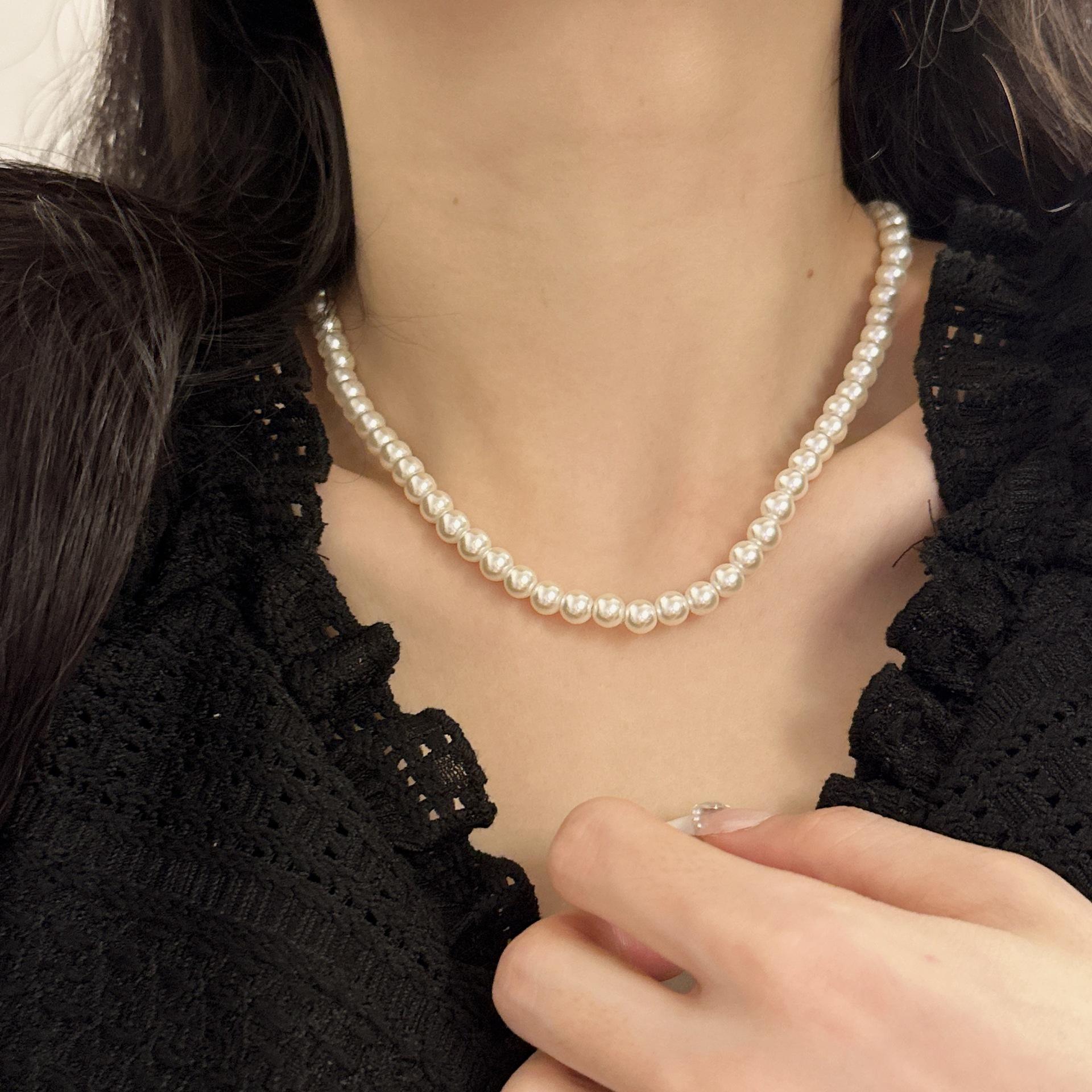 Collar de Perlas de Imitación Shijia Francesas del Mismo Estilo de Fever, Collar de Cuentas Redondas de Luz Brillante, Lujo Accesible y Cadena Clavicular de Alta Gama
