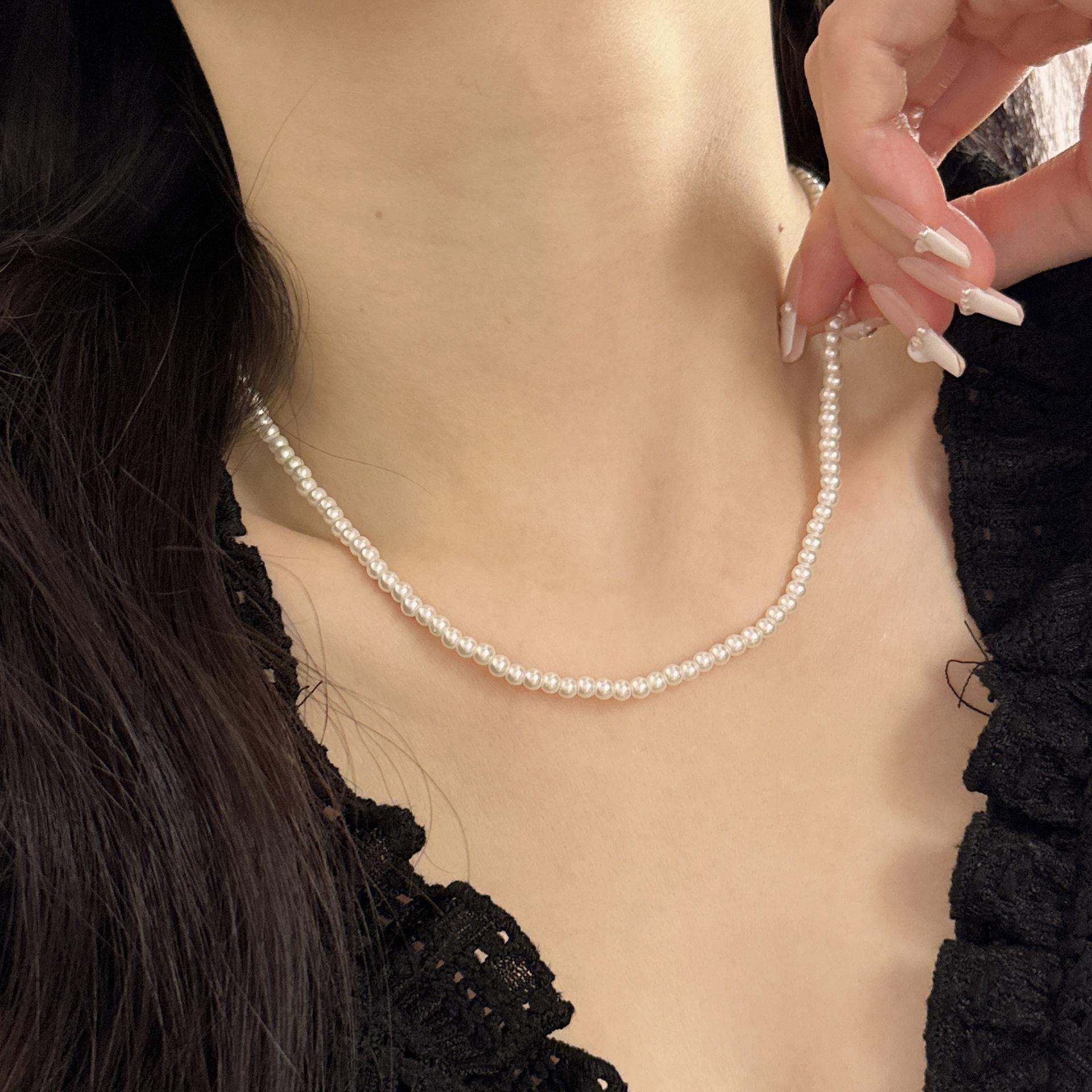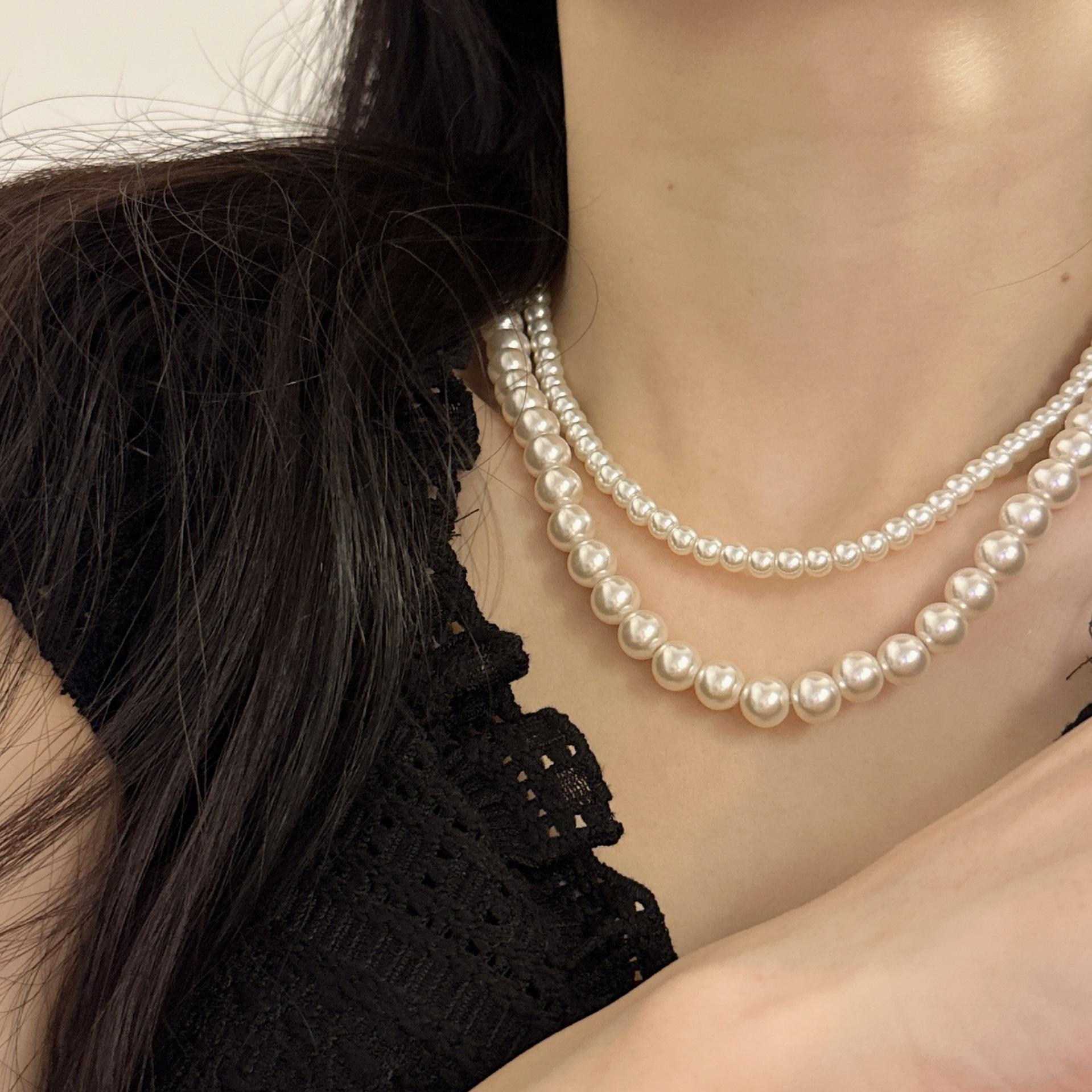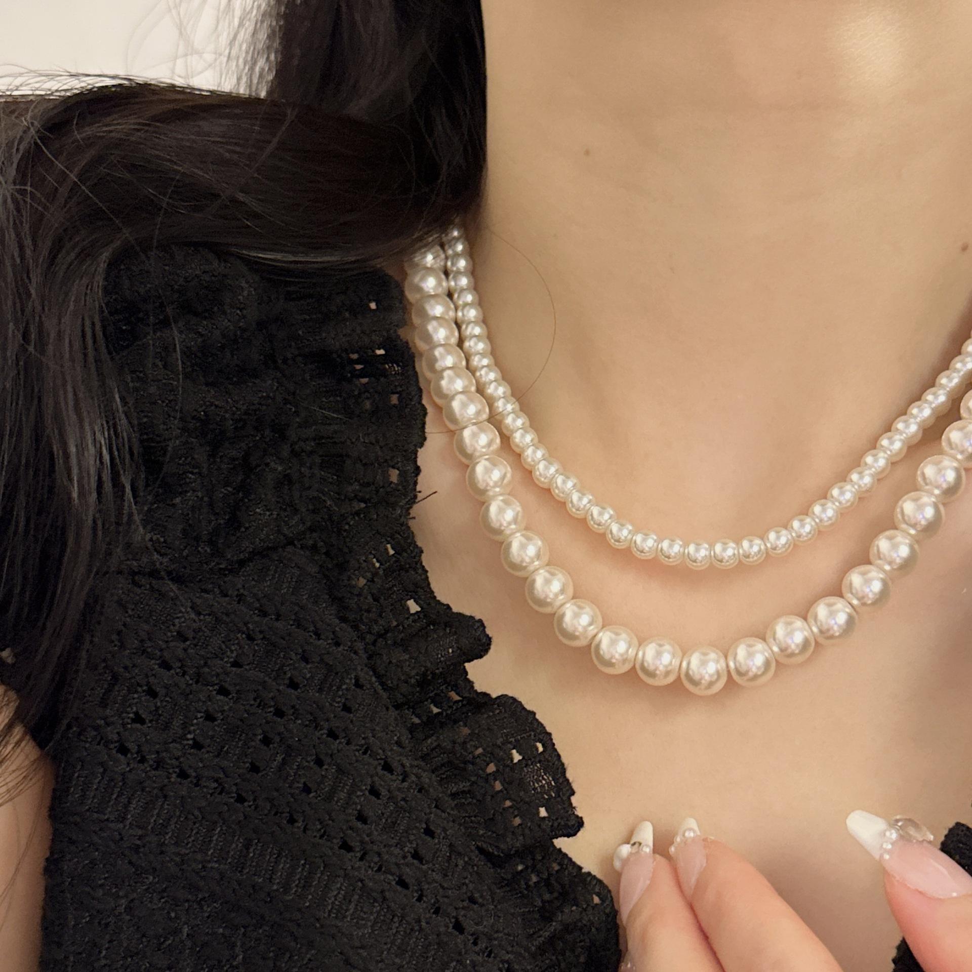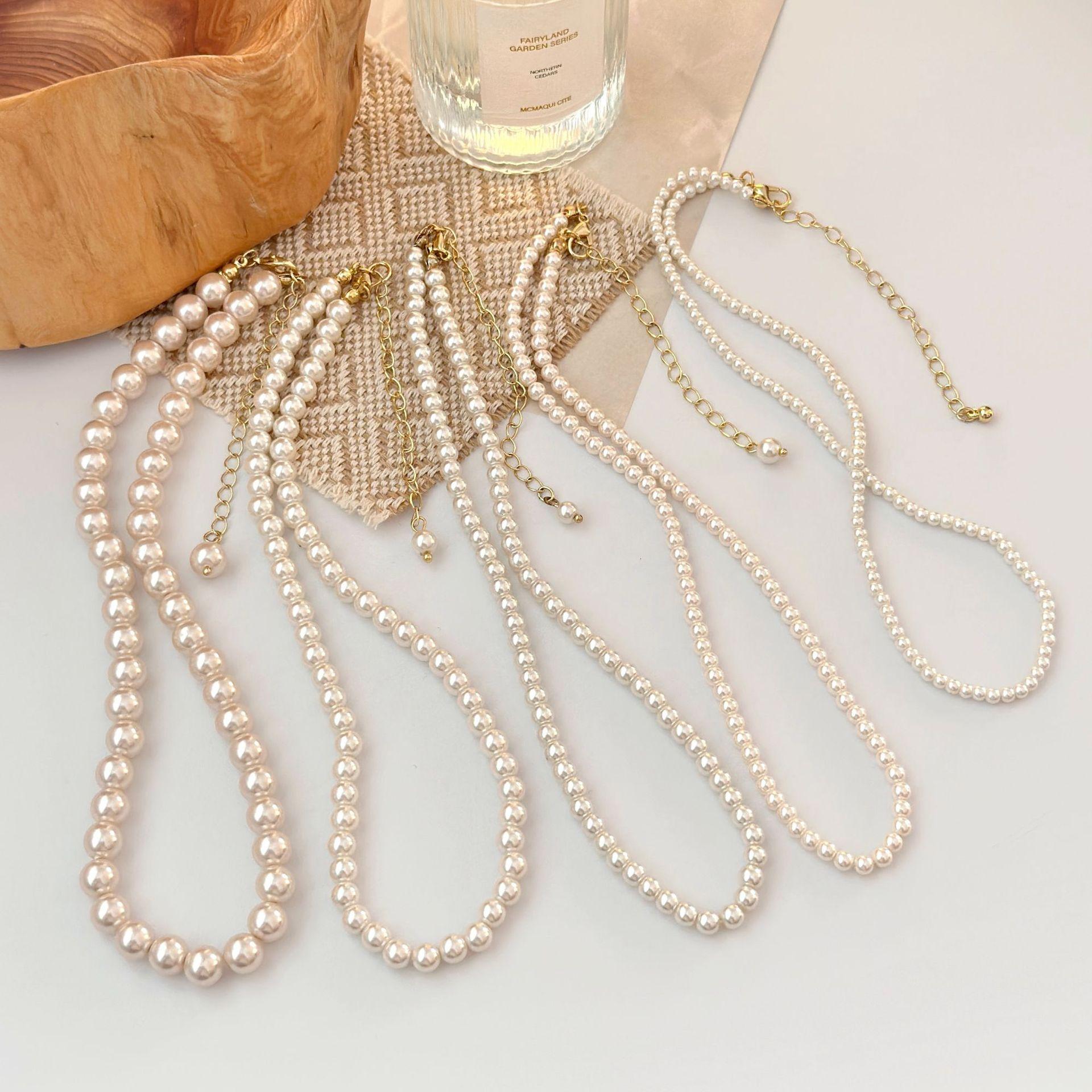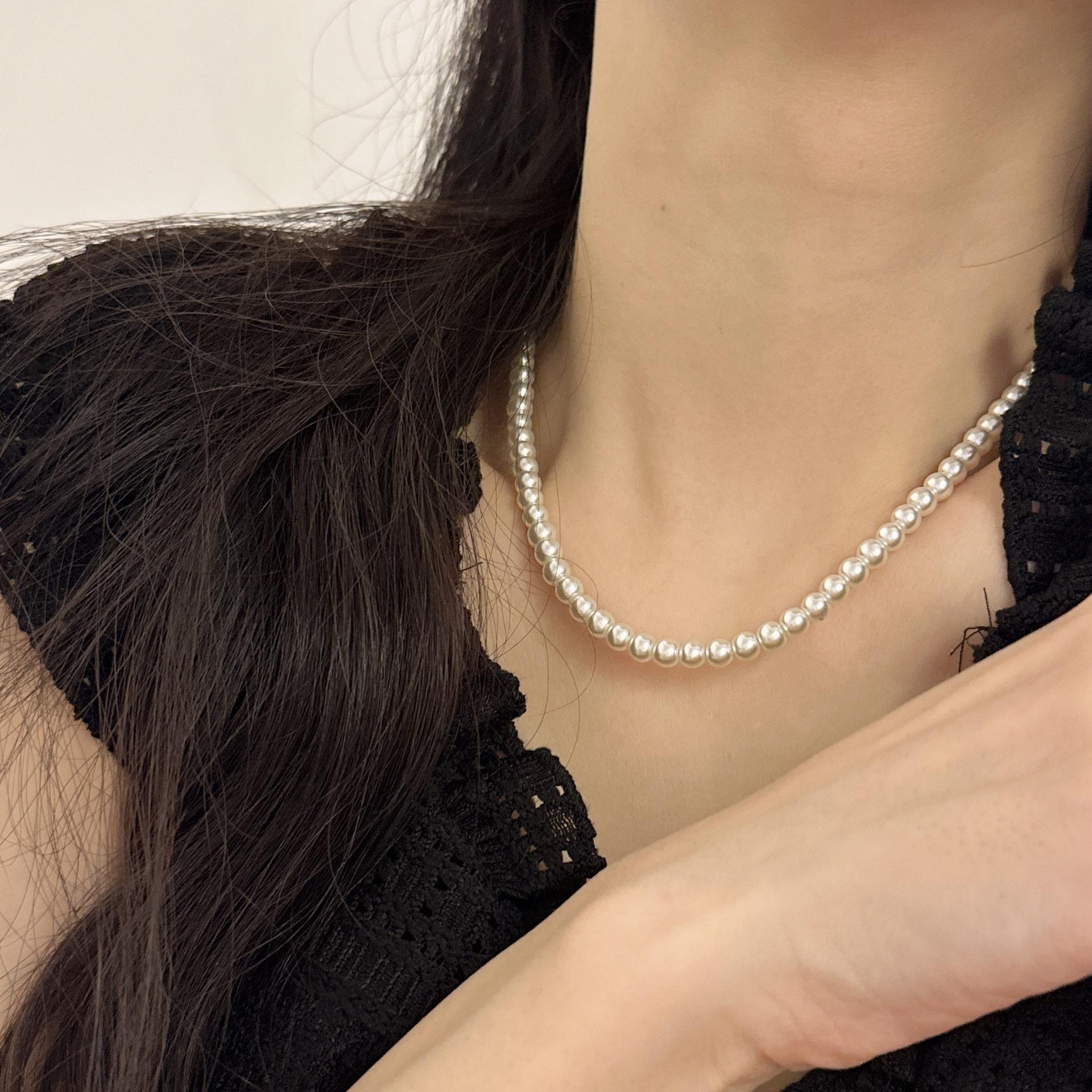 Collar de Perlas de Imitación Shijia Francesas del Mismo Estilo de Fever, Collar de Cuentas Redondas de Luz Brillante, Lujo Accesible y Cadena Clavicular de Alta Gama