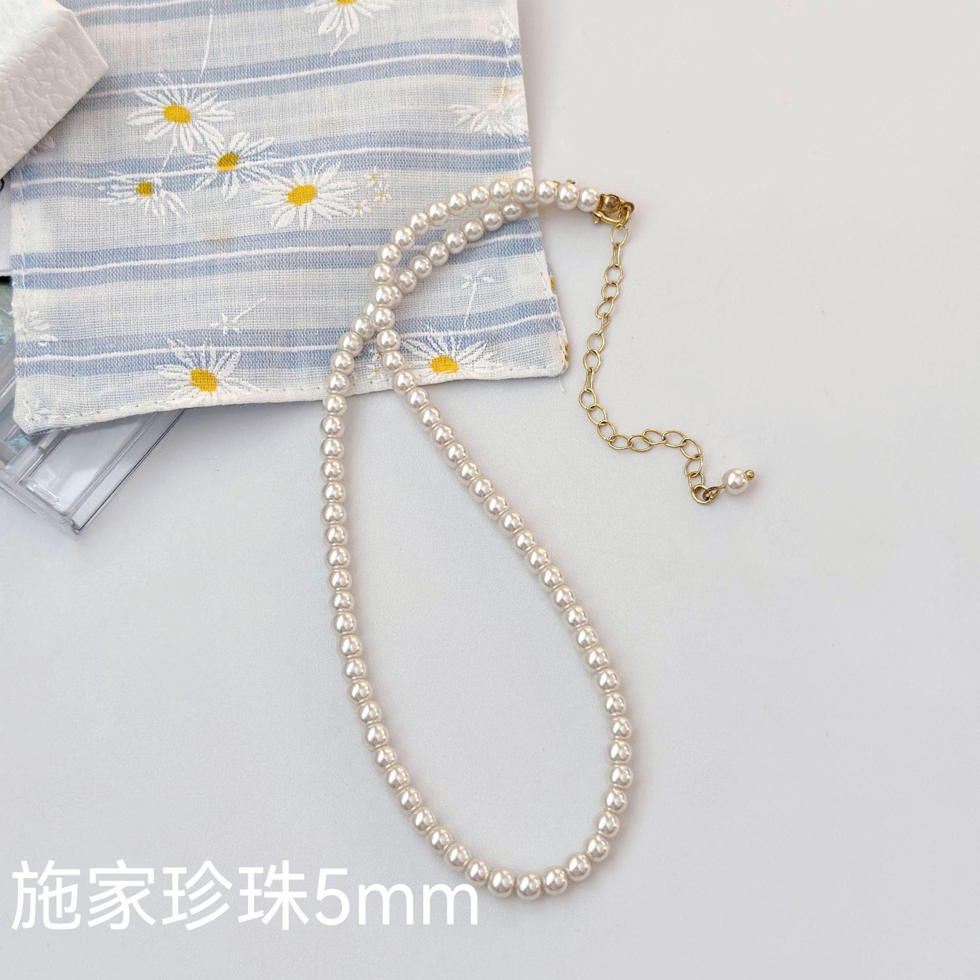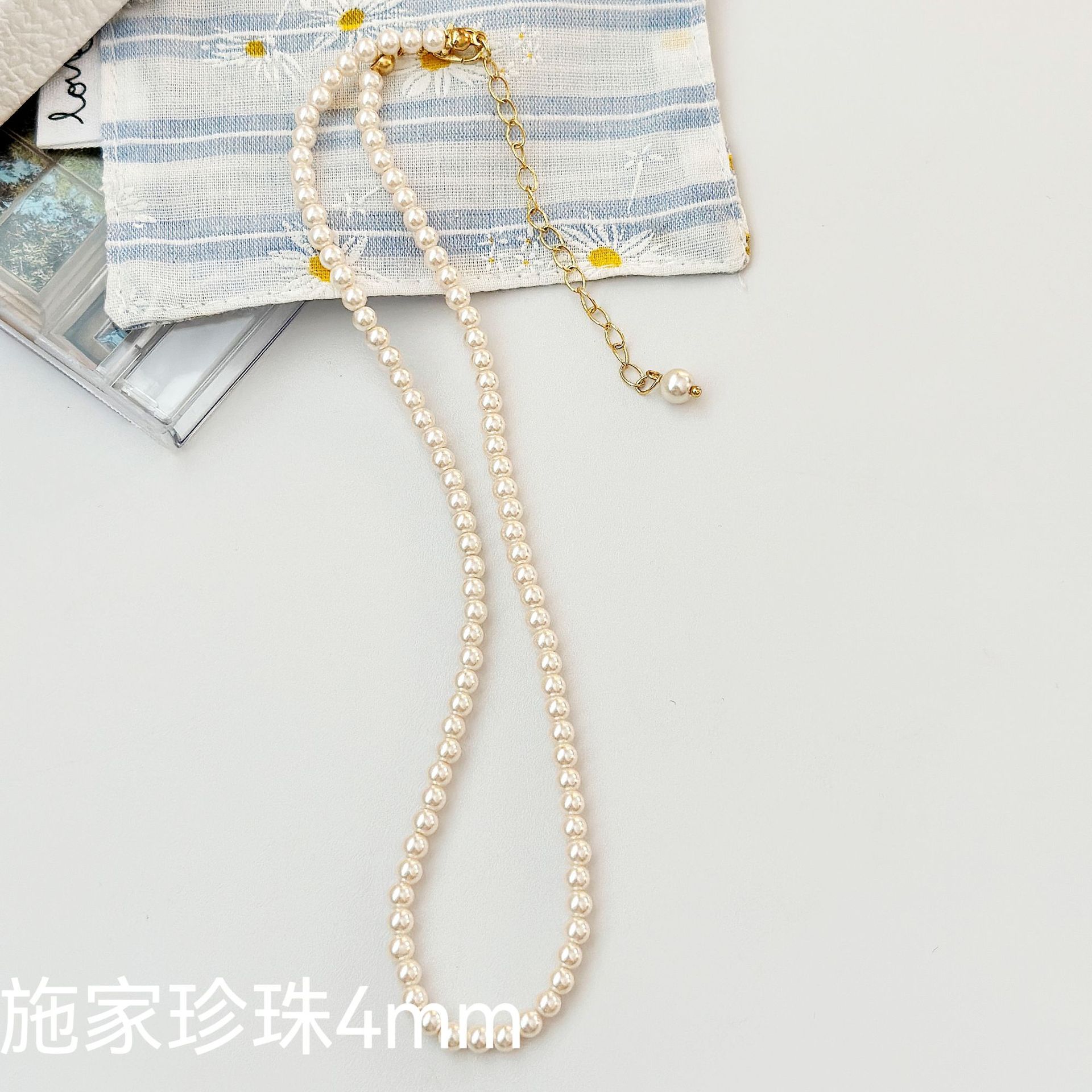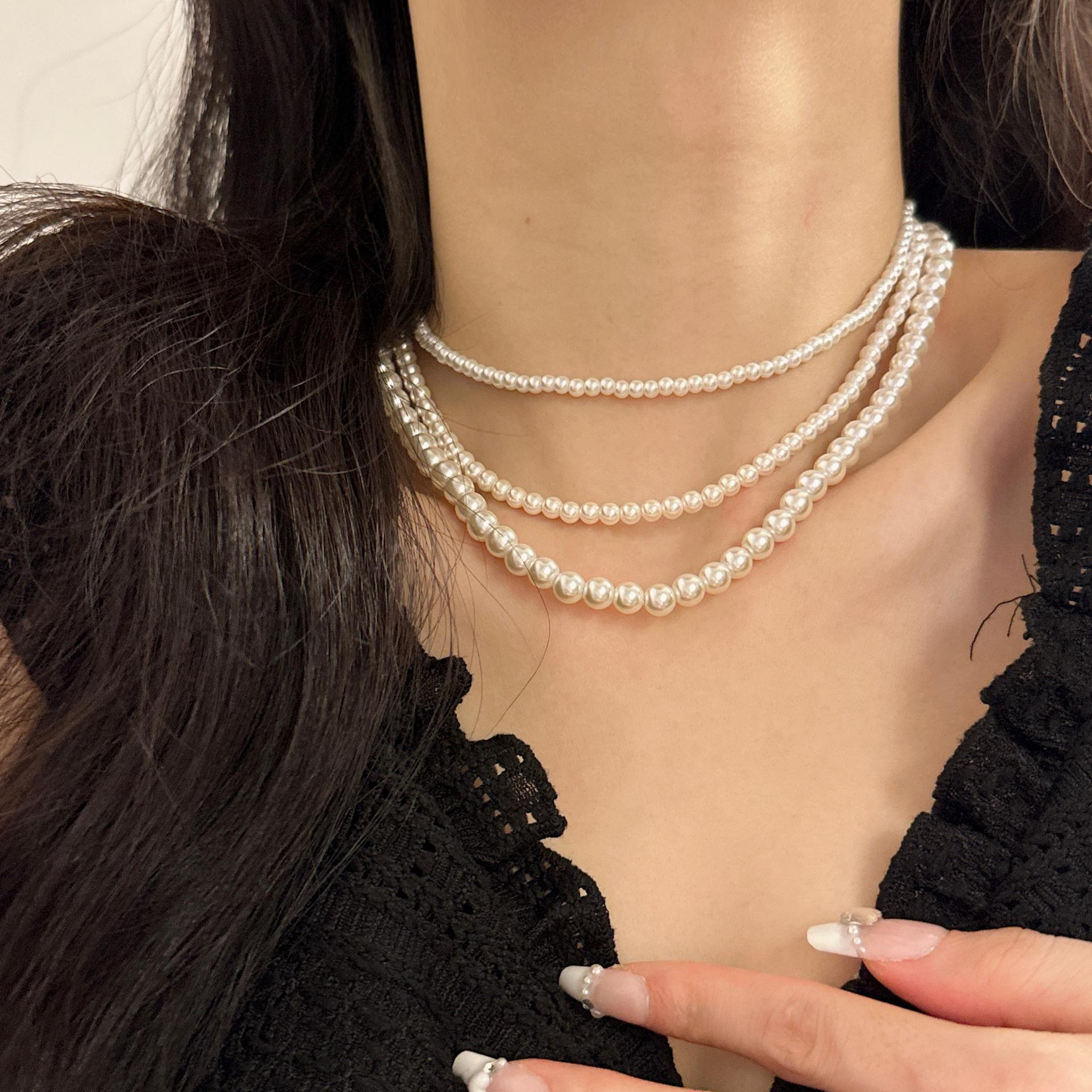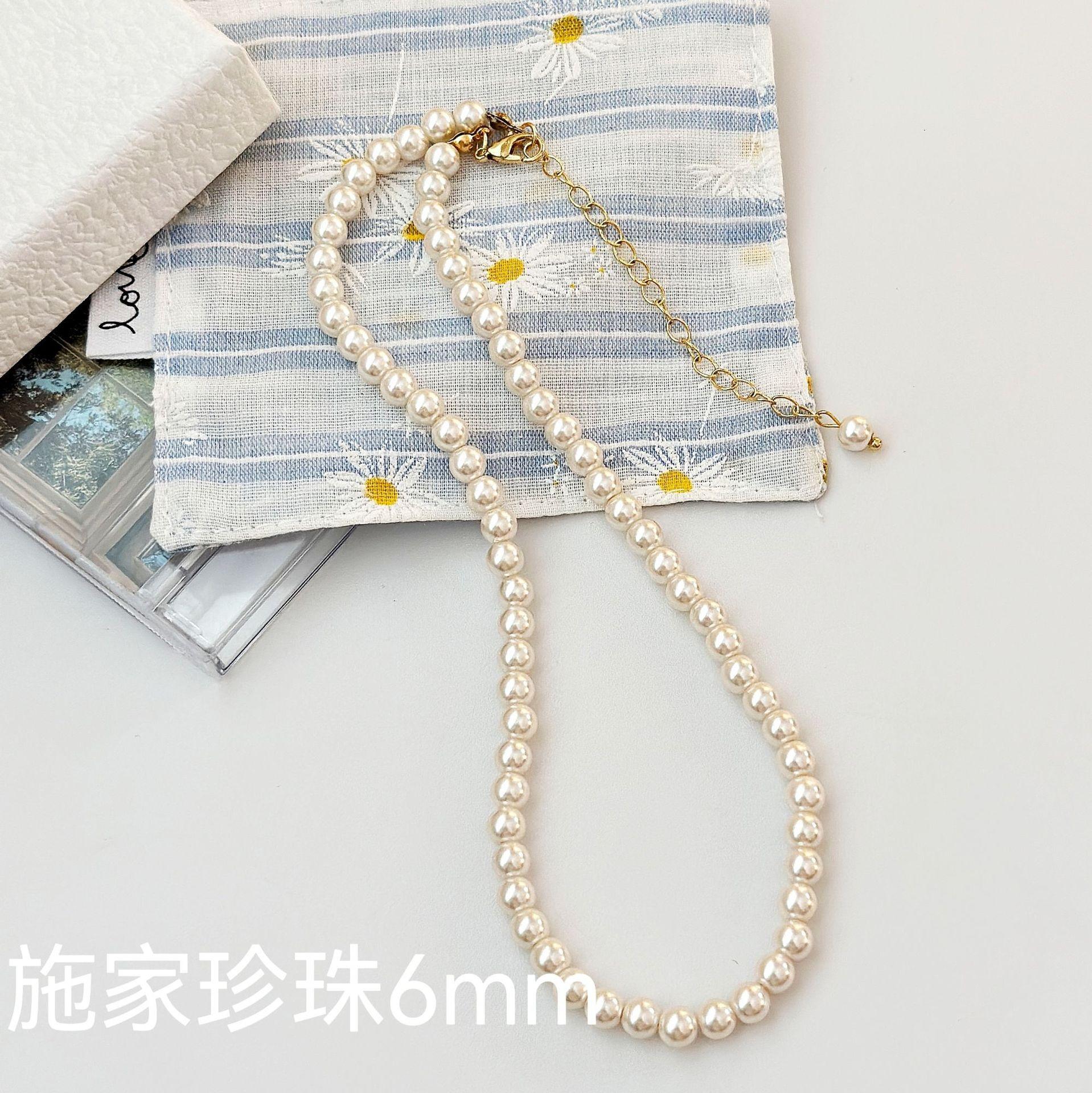Collar de Perlas de Imitación Shijia Francesas del Mismo Estilo de Fever, Collar de Cuentas Redondas de Luz Brillante, Lujo Accesible y Cadena Clavicular de Alta Gama