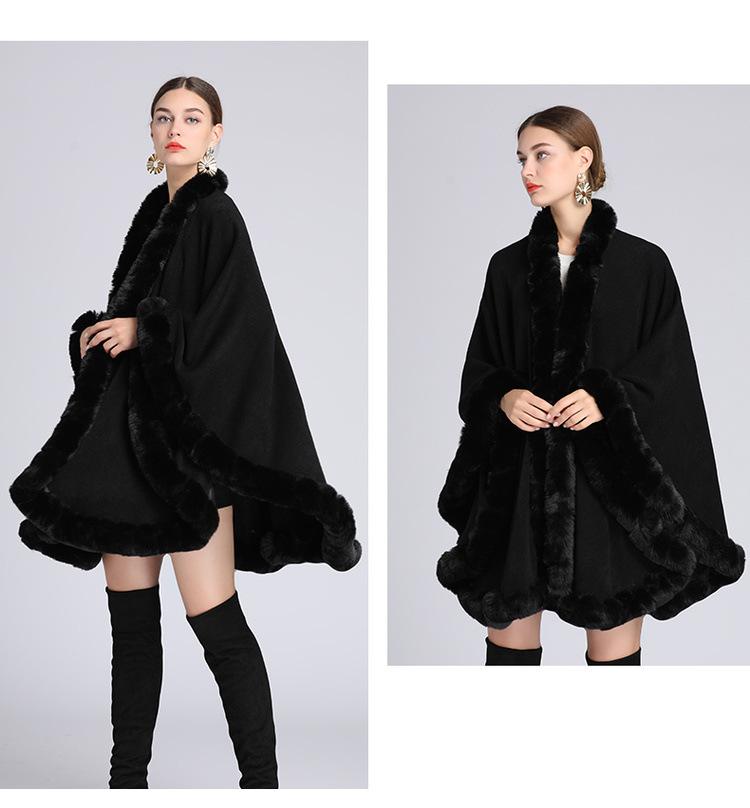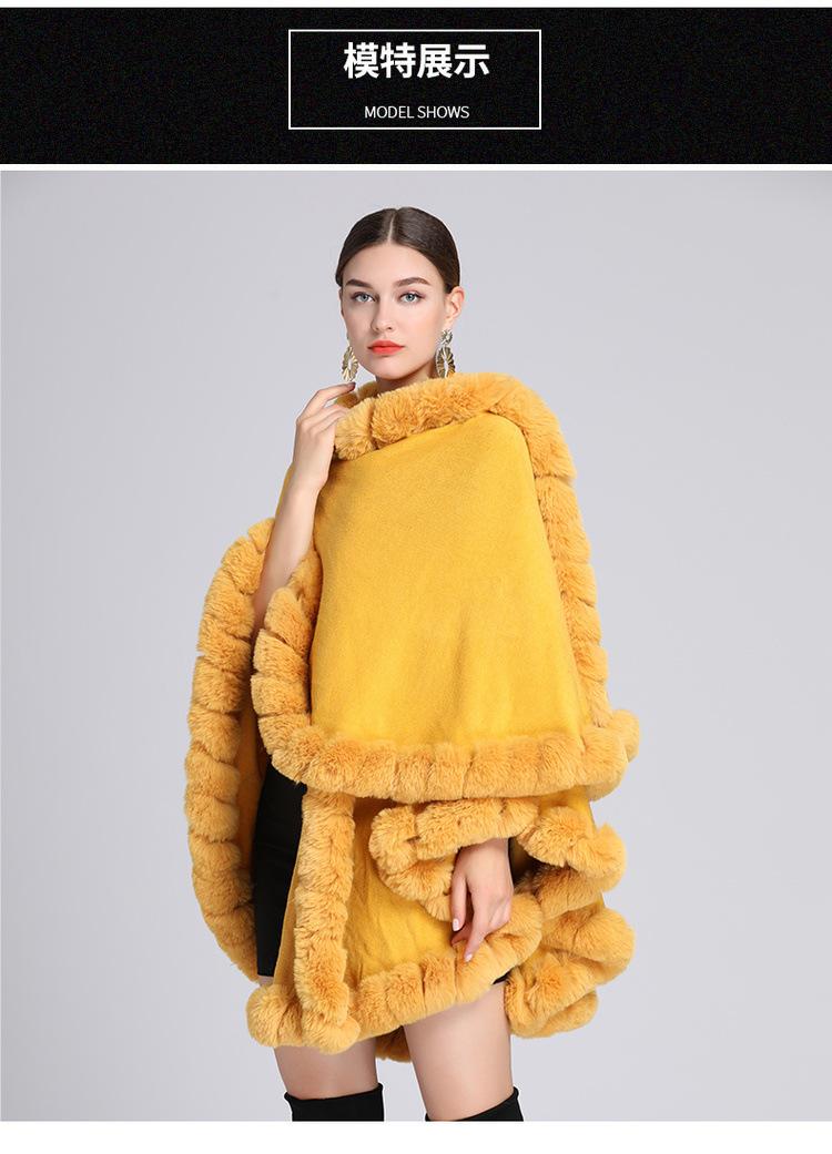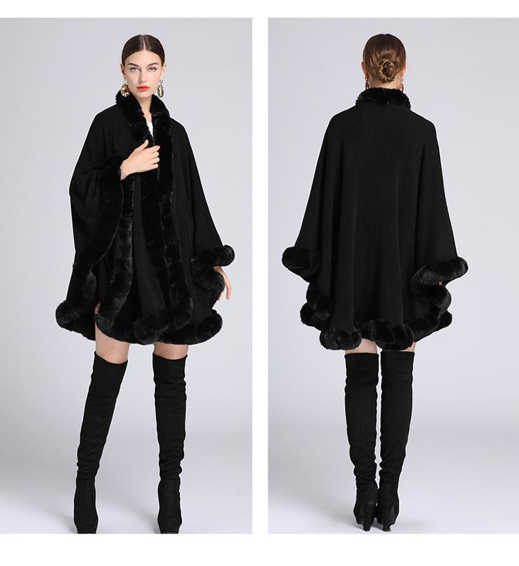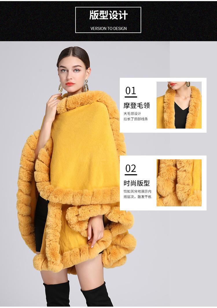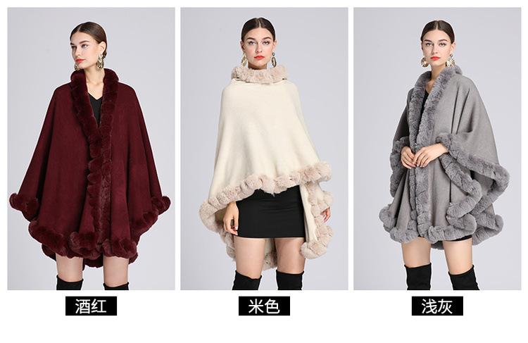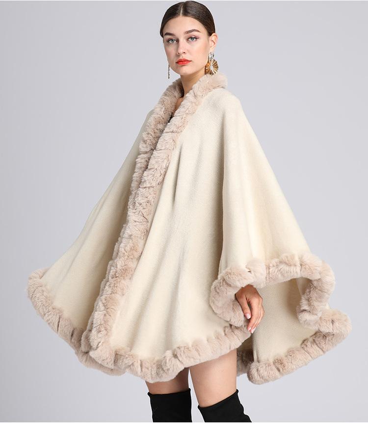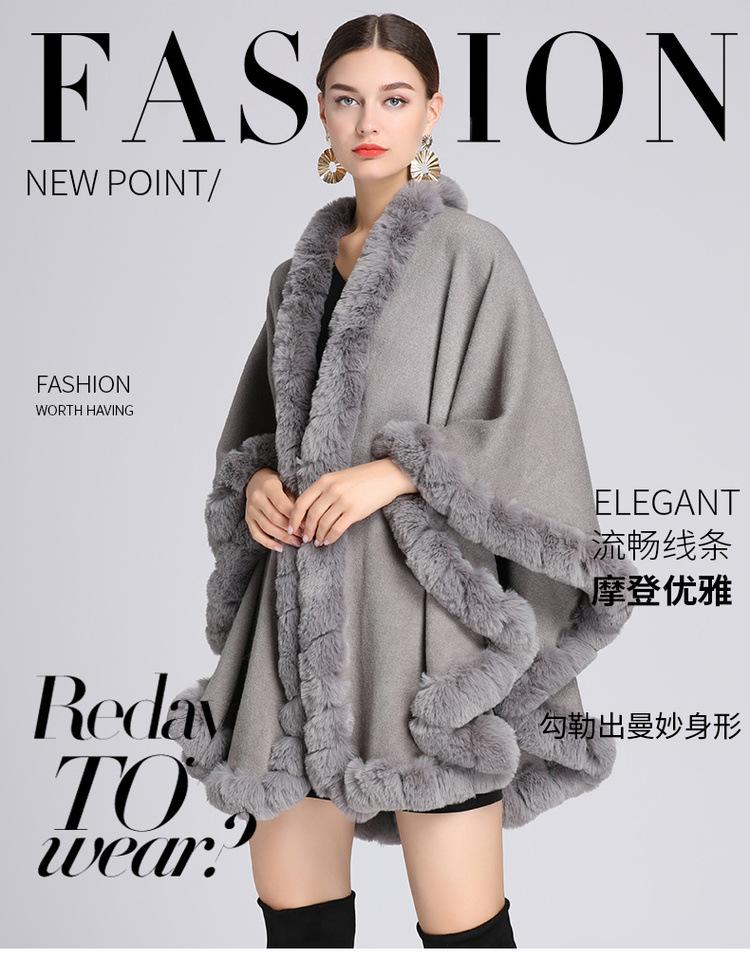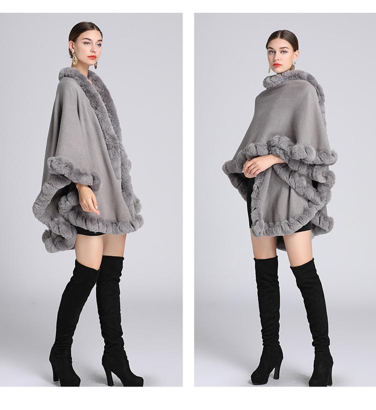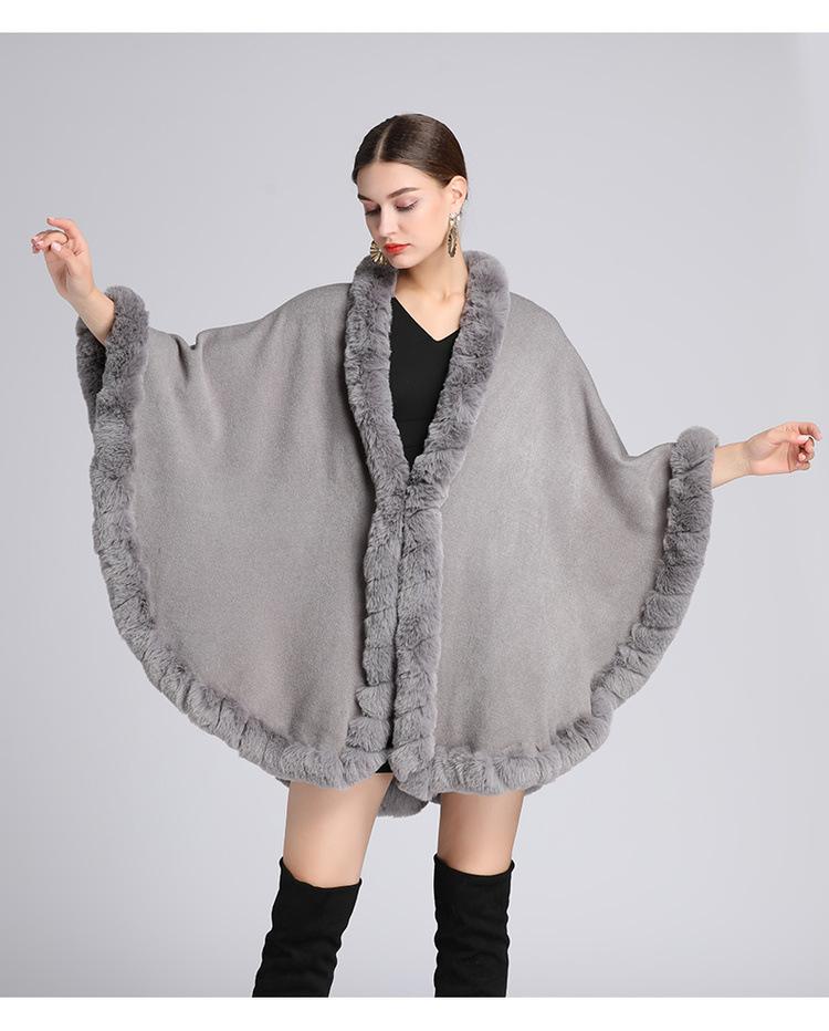 Capa tipo chal con cuello de piel de conejo Rex de imitación para mujer, cárdigan de punto de talla grande, chaqueta holgada de piel sintética, estilo europeo y americano, otoño e invierno, 637#