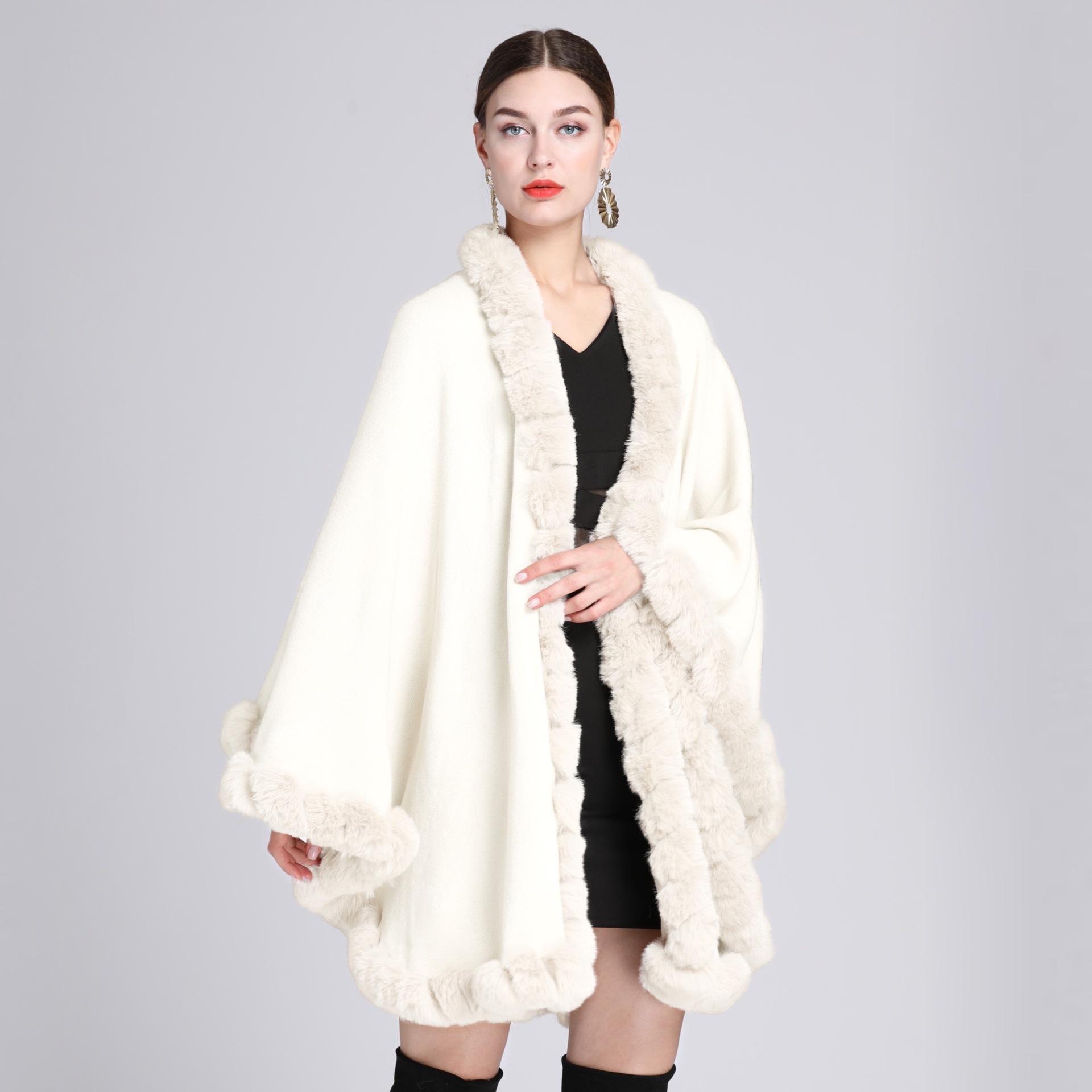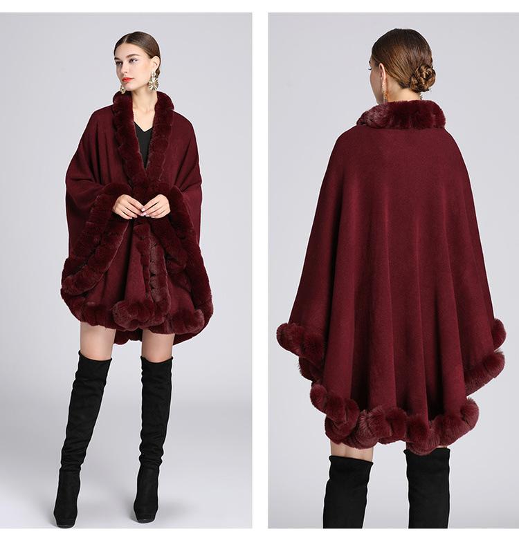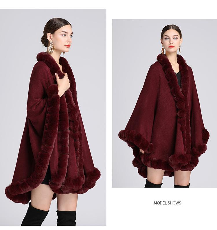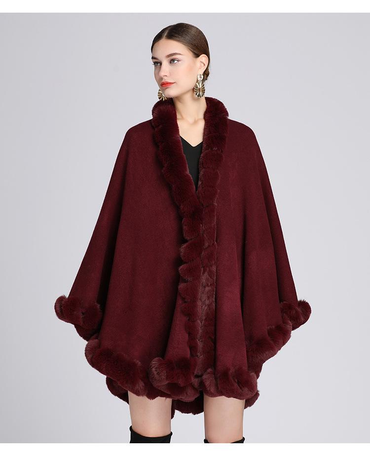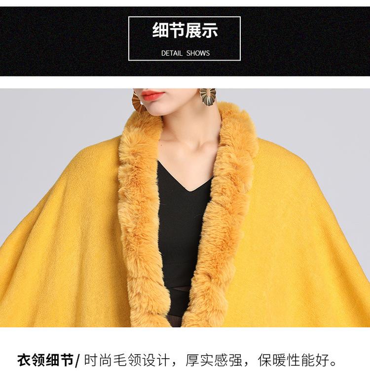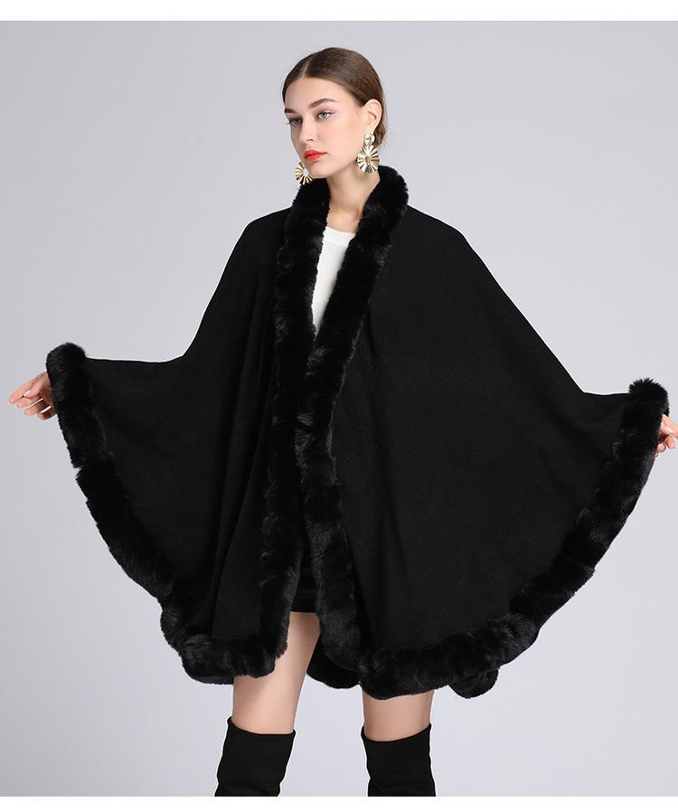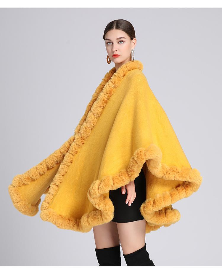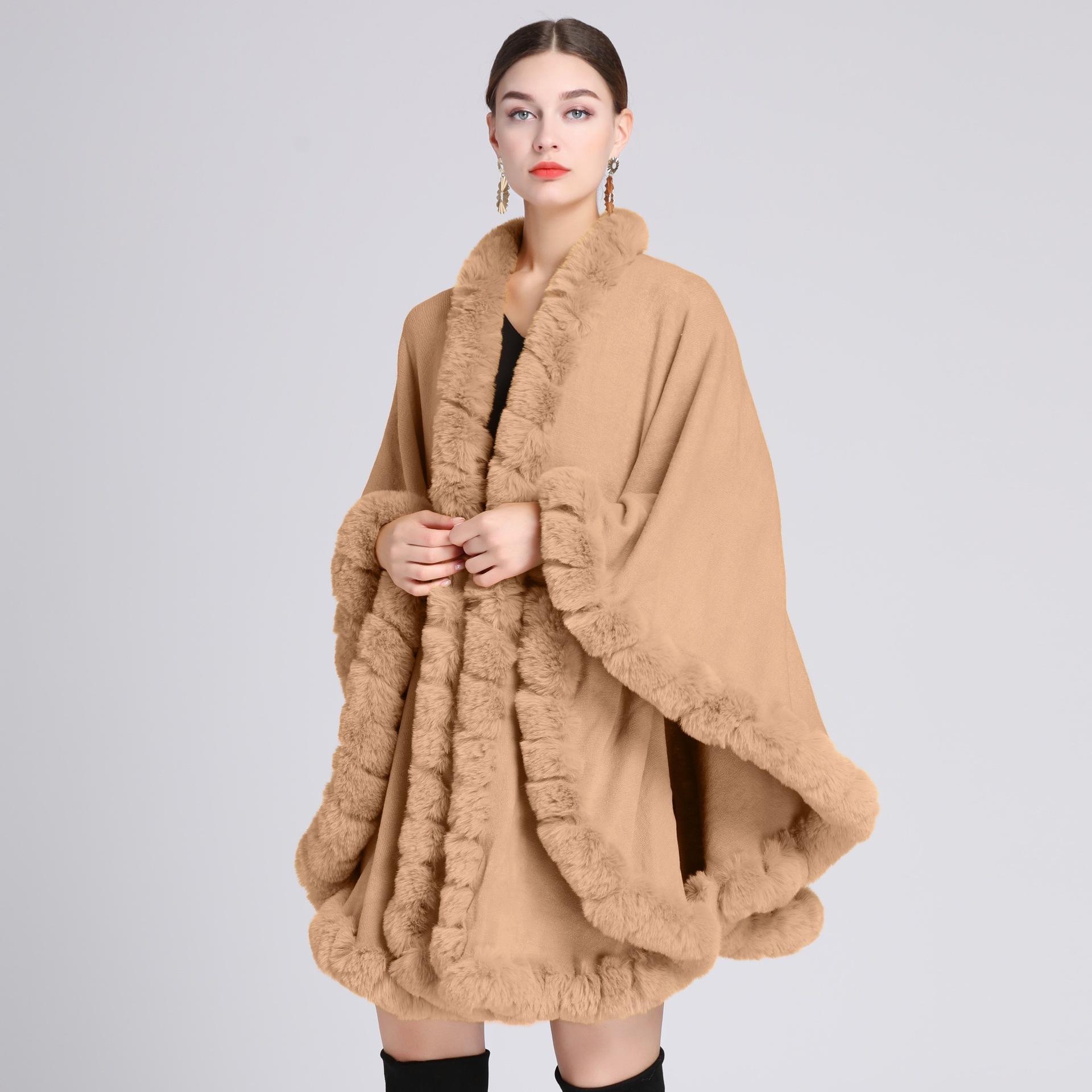 Capa tipo chal con cuello de piel de conejo Rex de imitación para mujer, cárdigan de punto de talla grande, chaqueta holgada de piel sintética, estilo europeo y americano, otoño e invierno, 637#