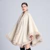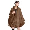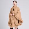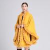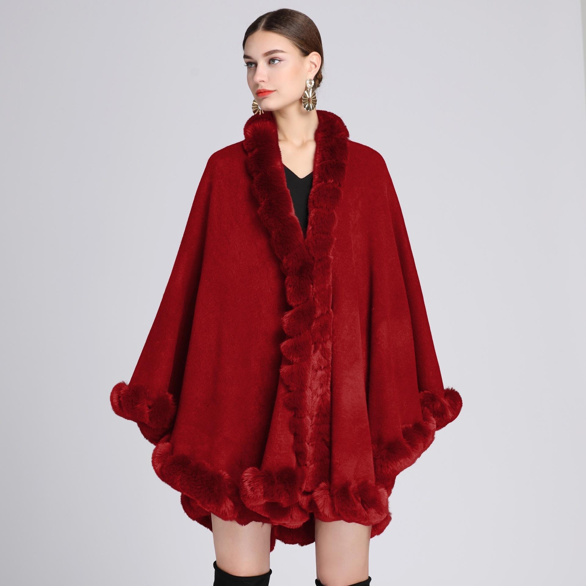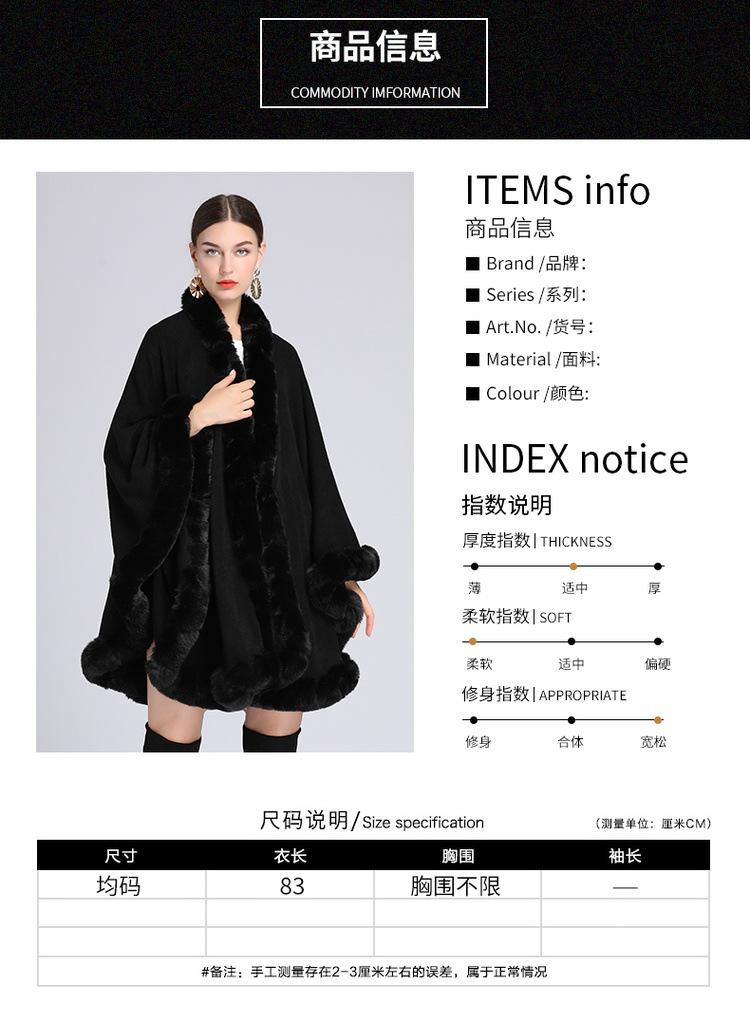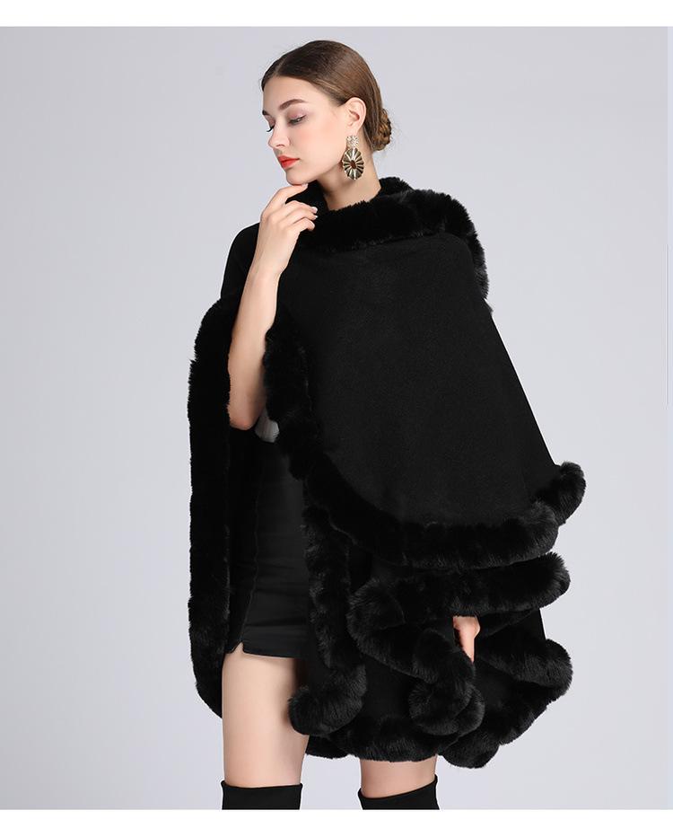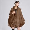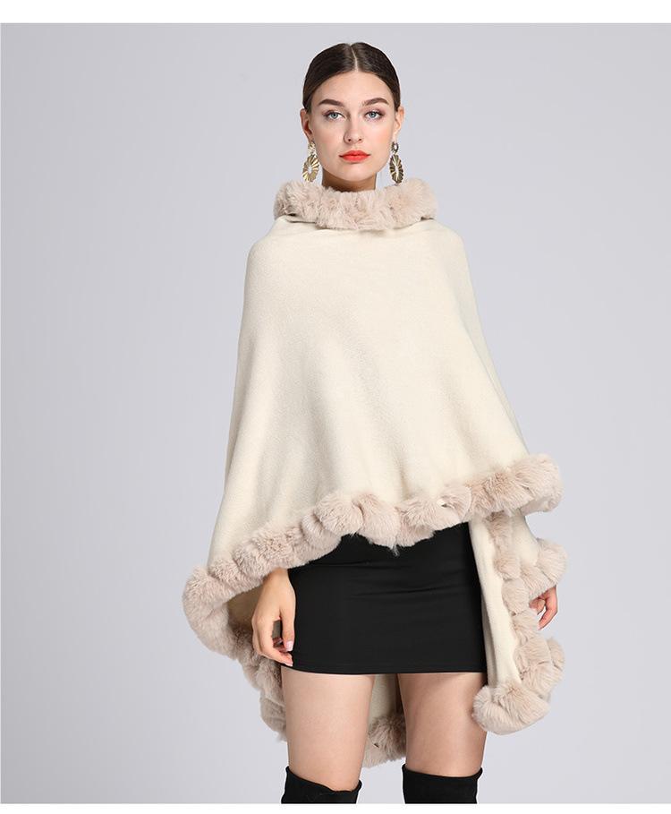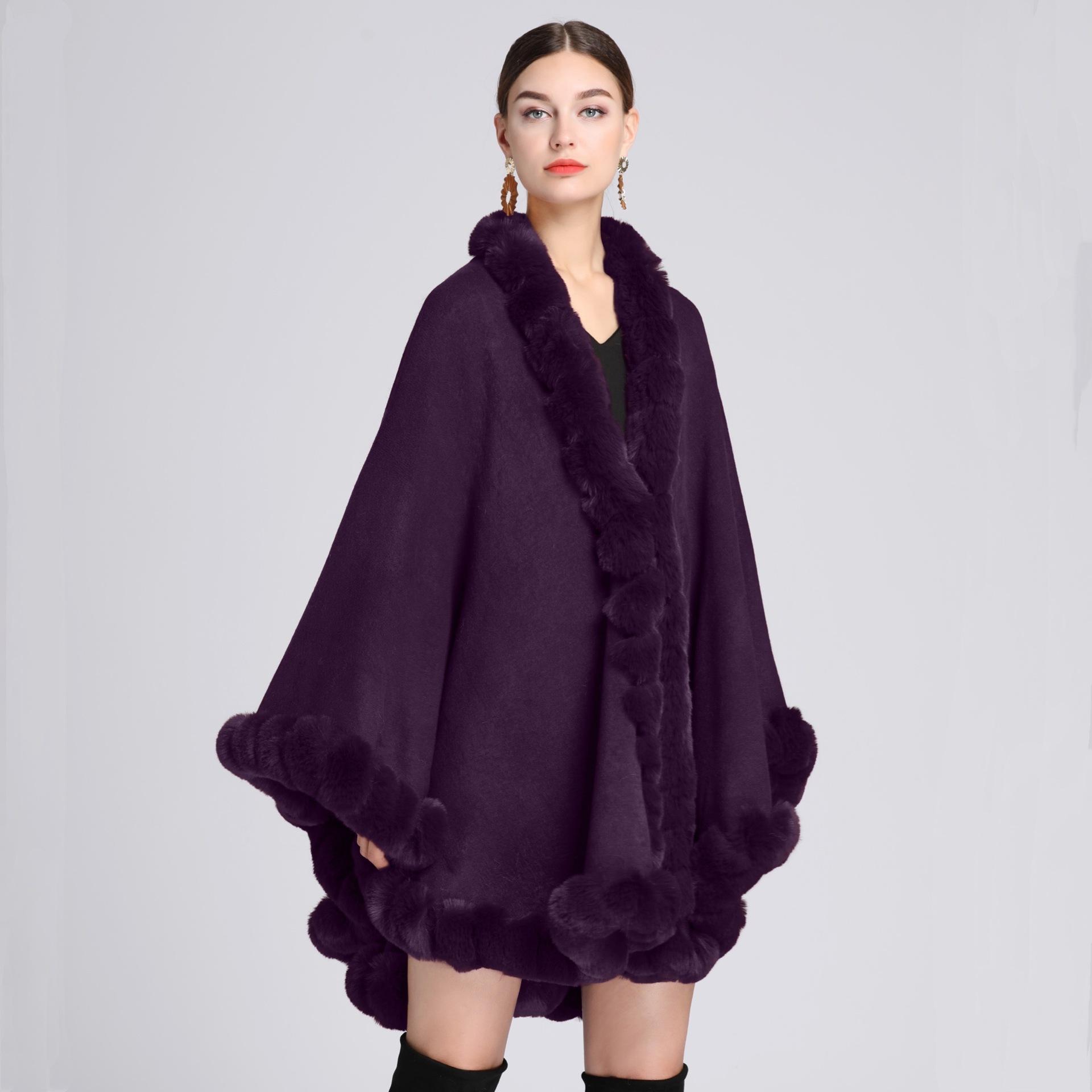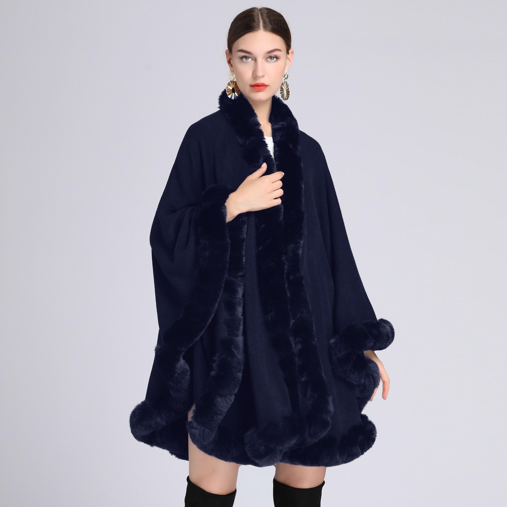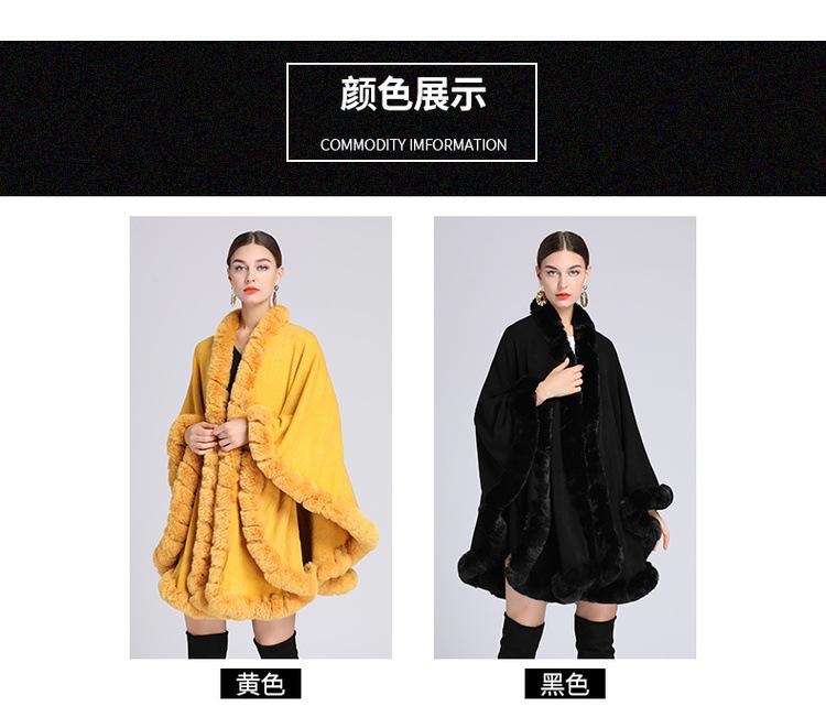 Capa tipo chal con cuello de piel de conejo Rex de imitación para mujer, cárdigan de punto de talla grande, chaqueta holgada de piel sintética, estilo europeo y americano, otoño e invierno, 637#