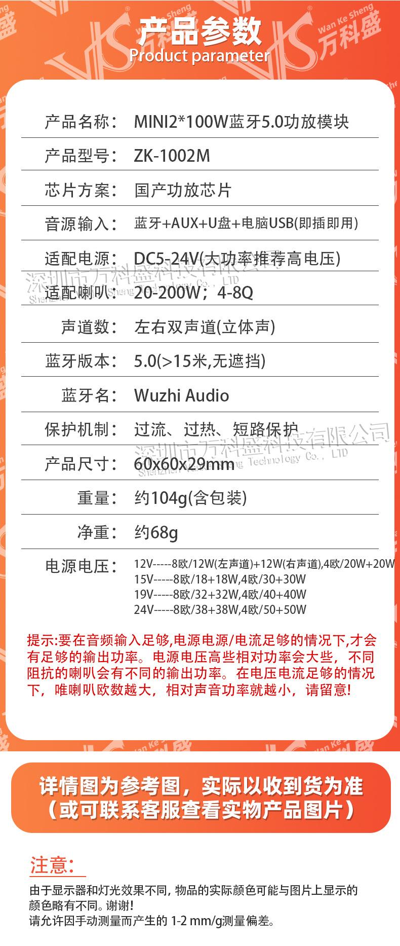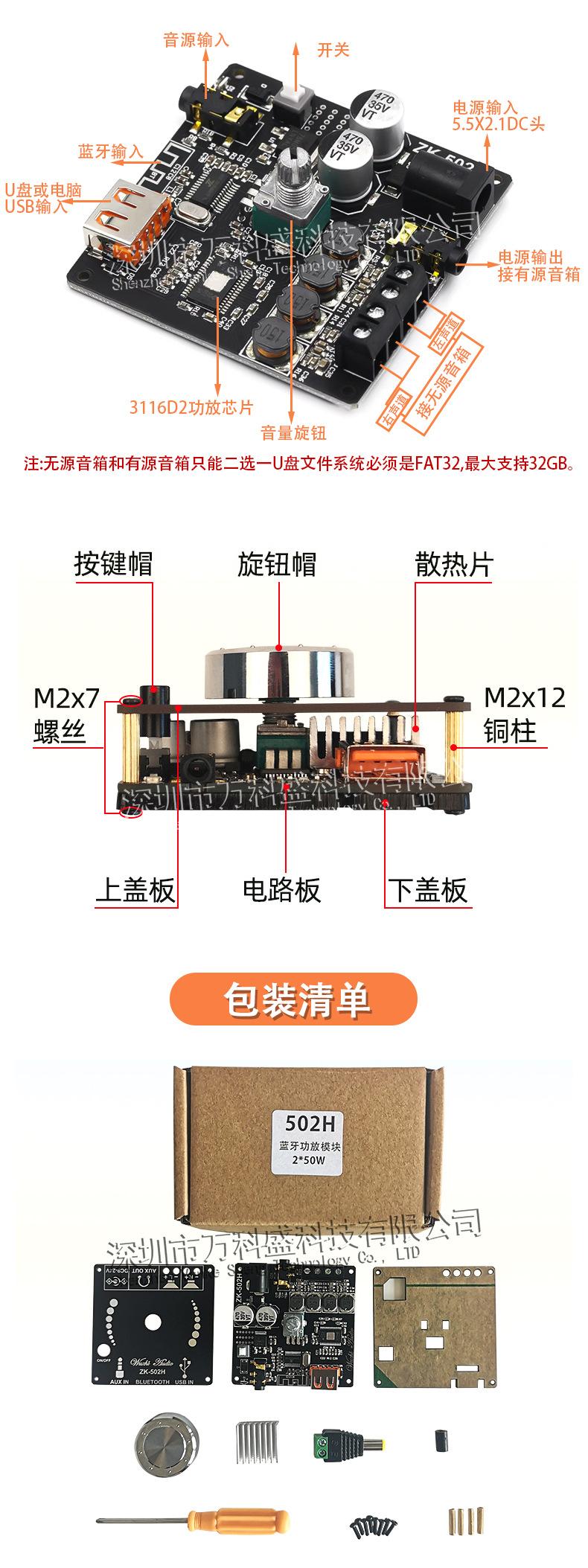 Módulo amplificador de potencia digital Bluetooth estéreo de grado HIFI 2.0 de Wuzhi Audio TPA3116 50WX2