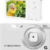 Resolución: HD 1280X720, FHD 1920X1080, 2.7K 2688X1520, 4K 3840X2160 8 zoom Zoom Digital 20X 9 Estabilización de imagen Estabilización electrónica de imagen 10 Sonido de vídeo apoyo 11 pantalla de visualización Monitor LCD de 2.7 pulgadas (4:3) 12 Luz de relleno LED <1.5M 13 Función de flash Flash automático, flash forzado, sin flash 14 balance de blancos Automático/Soleado/Nublado/Incandescente/Fluorescente 15 compensación de exposición -3.0EV~+3.0EV 16 Selfie Apagado/2 segundos/5 segundos/10 segundos 17 interfaz de computadora USB 2.0 18 Apagado automático Apagado/1 minuto/3 minutos/5 minutos/10 minutos 19 fuente de alimentación Batería de litio de 4.2V/5V