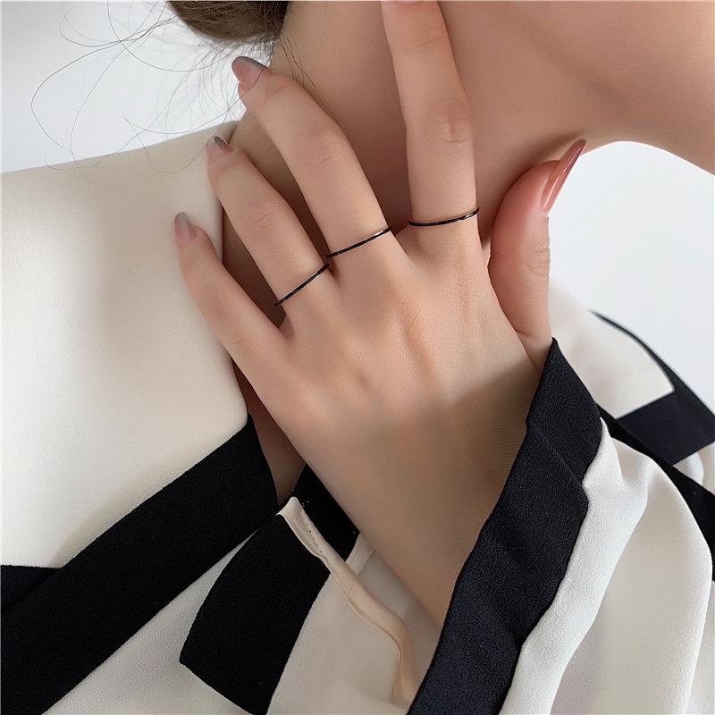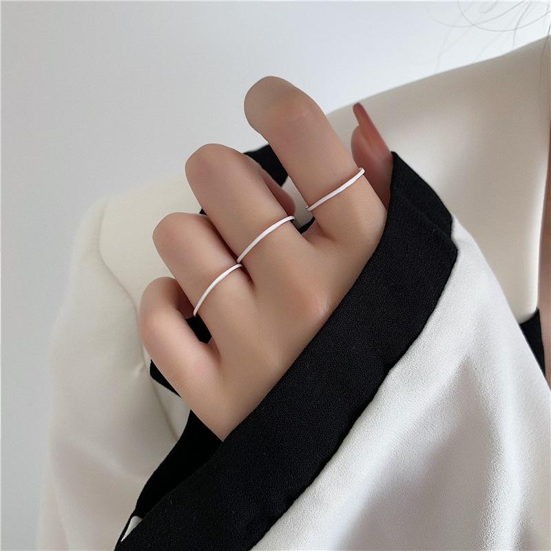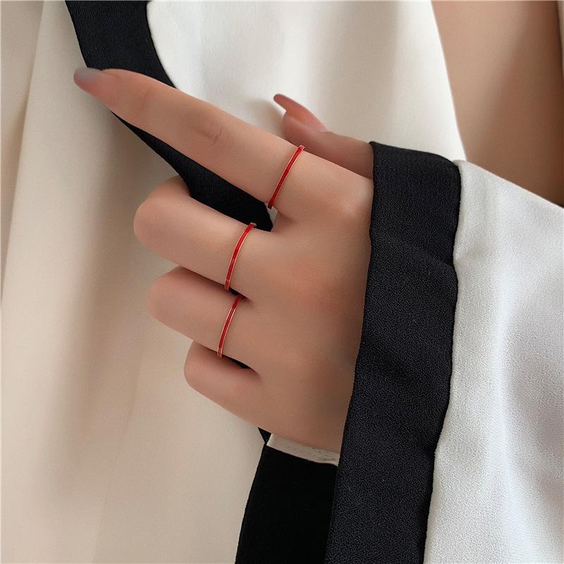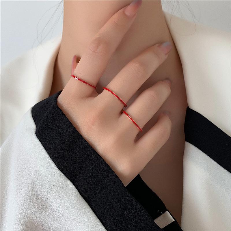 Europeo y Americano Ins Nueva Versión Fina Blanco y Negro Rojo Set de Anillos de Nudillo Pequeño Combinado Anillo de Dedo Índice de Acero de Titanio a la Moda Anillo de Cola