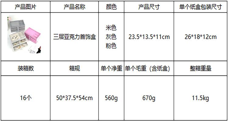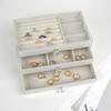 Caja de almacenamiento de joyas de acrílico de tres capas con cajón para pendientes, anillos, collares, pulseras y joyas.
