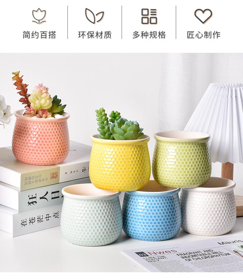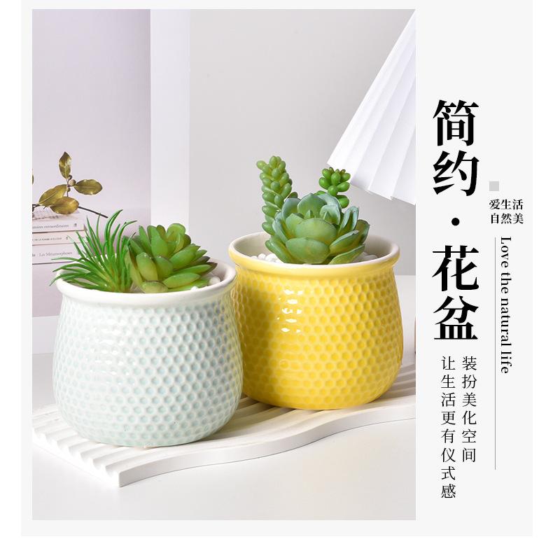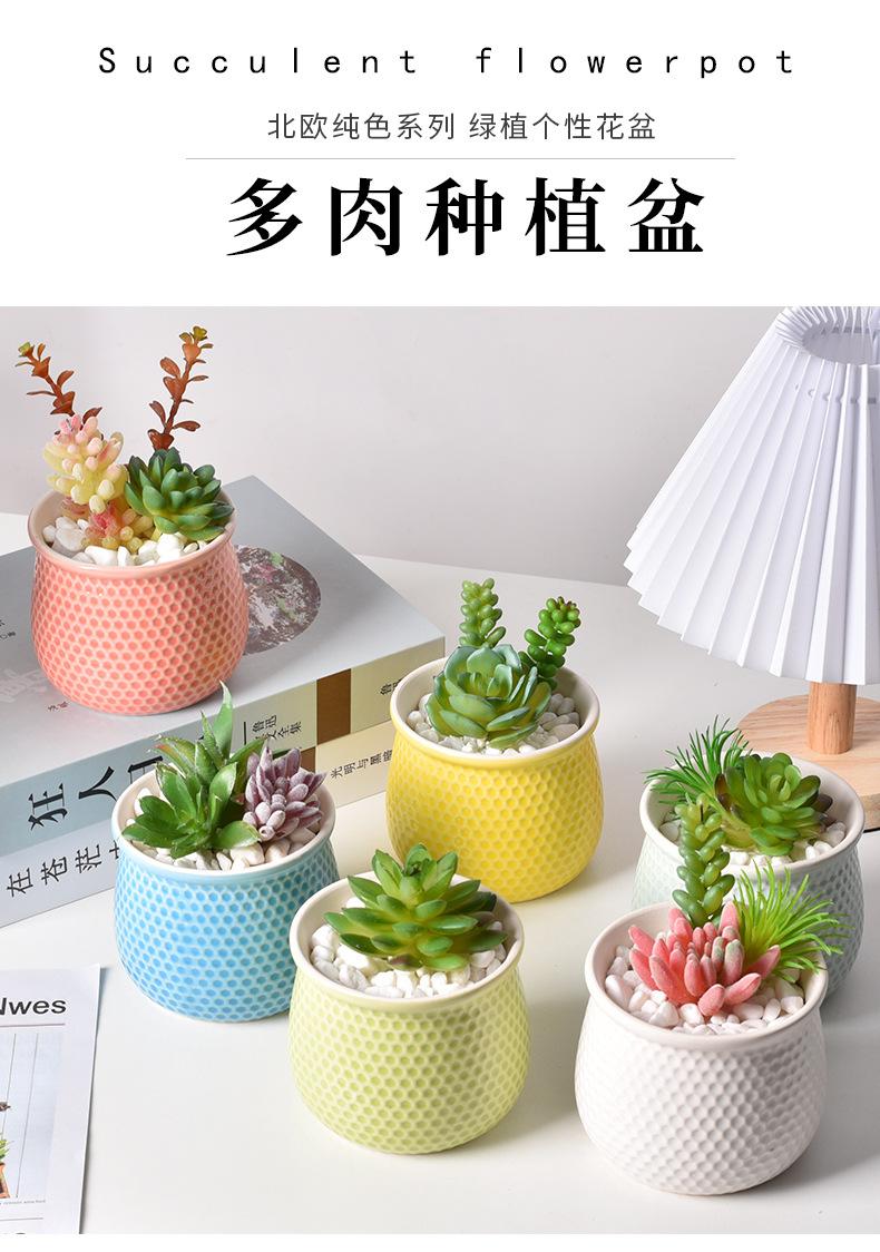 Planta de maceta carnosa, maceta de cerámica, traje de macarrón, combinación creativa de maceta carnosa, planta verde, bonsái