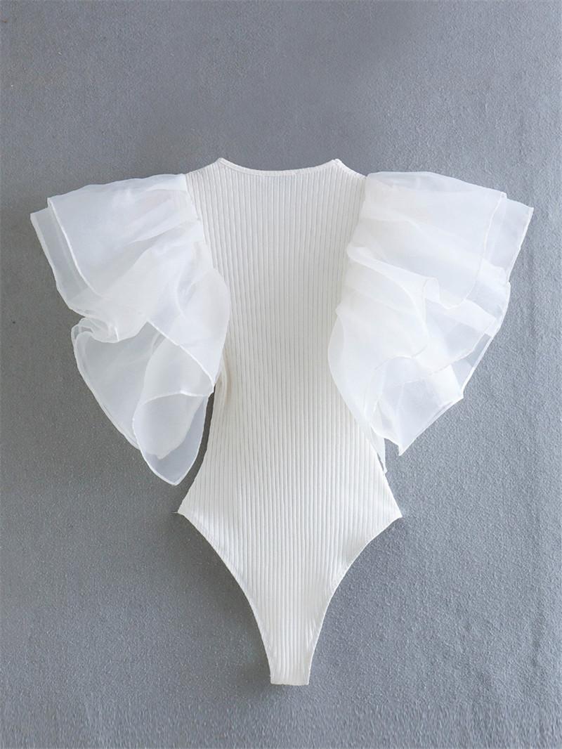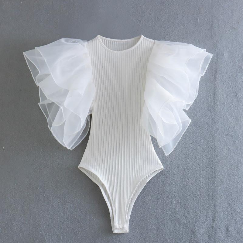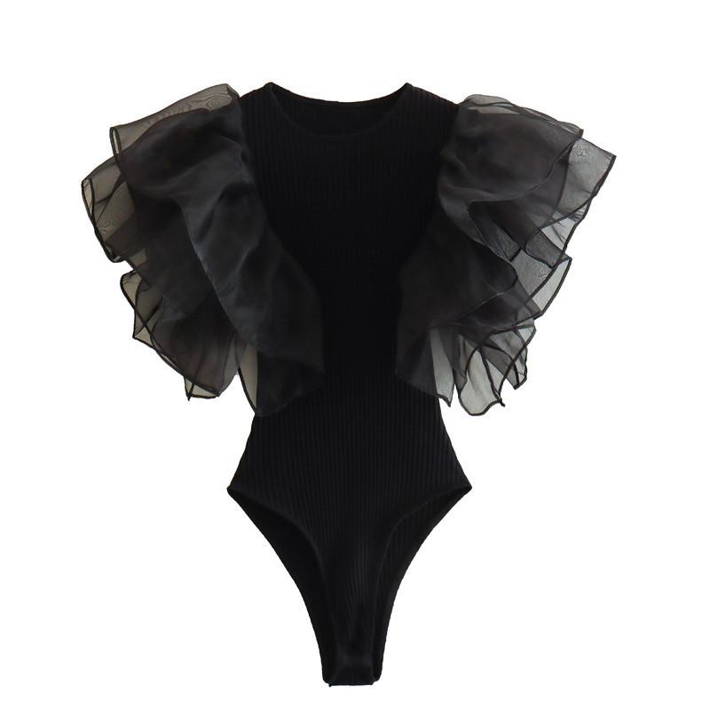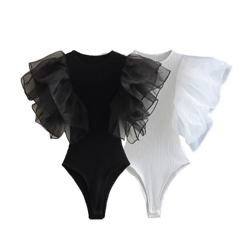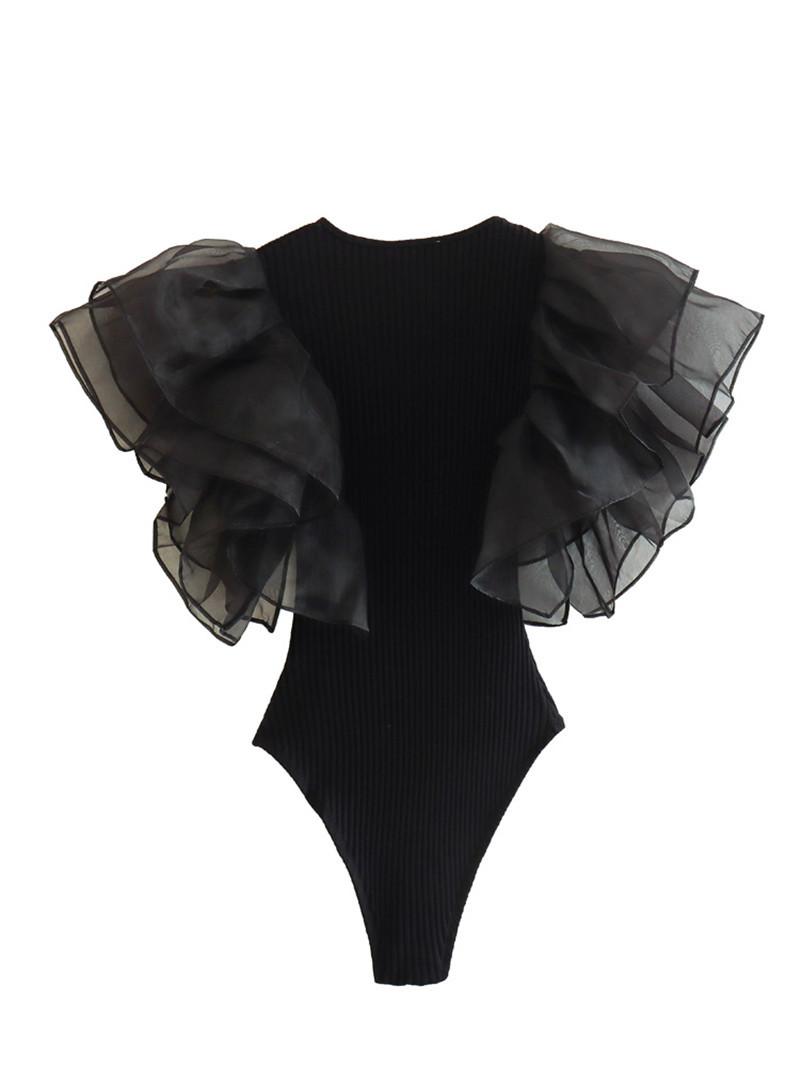 Exportación Transfronteriza 2023 Verano Nuevo Mono Delgado Decorativo Apilado de Organza de Color Puro para Mujer