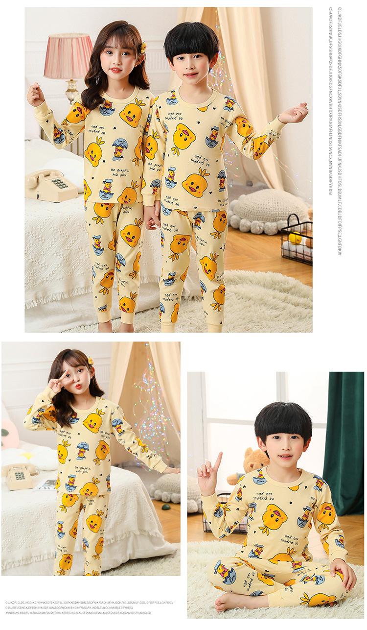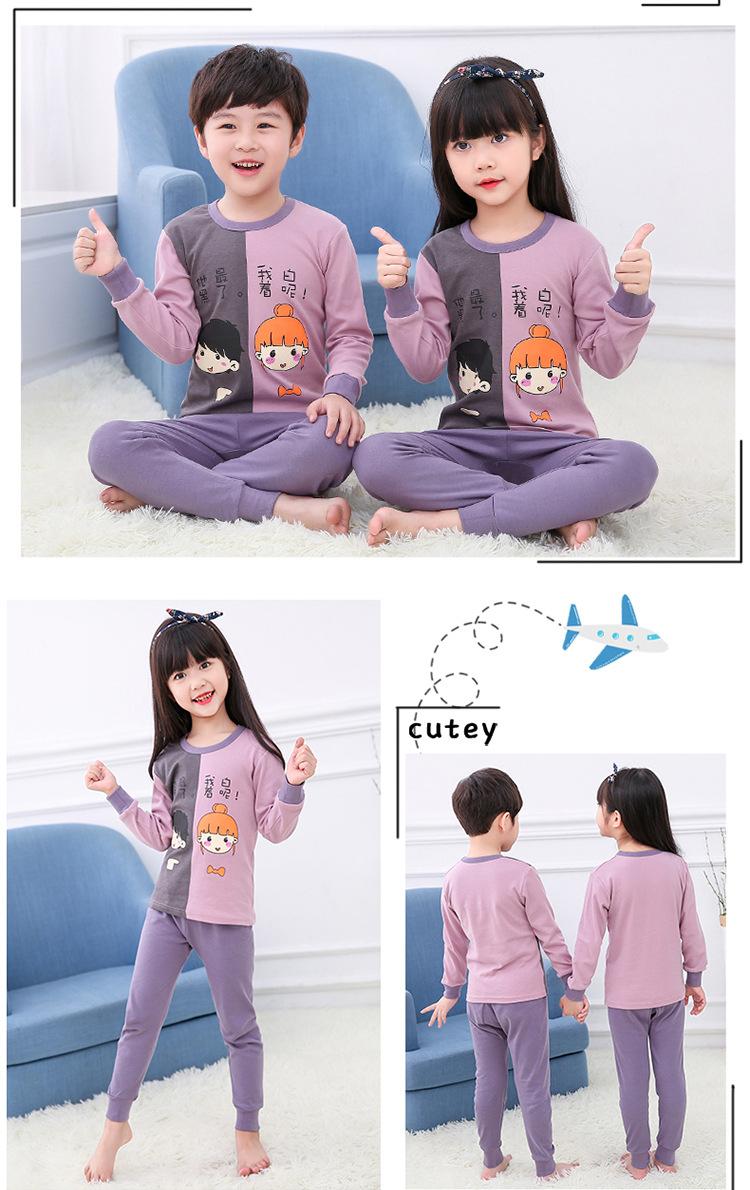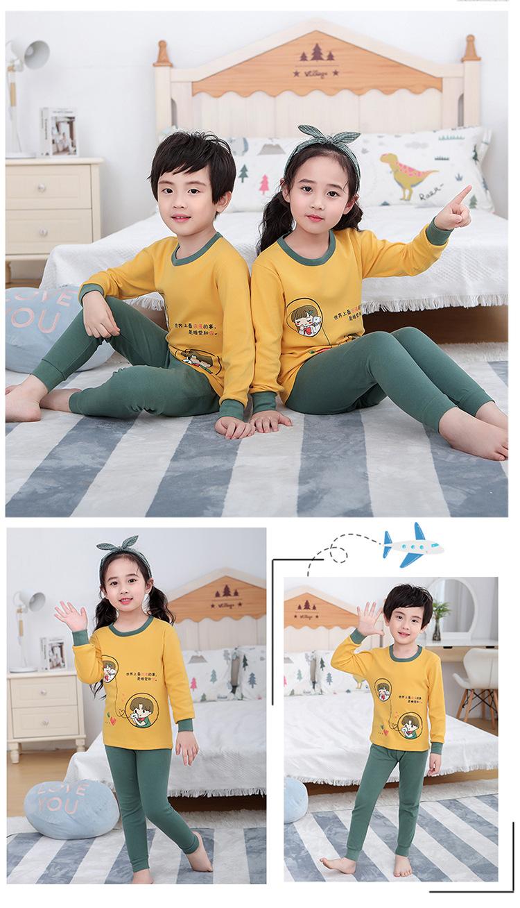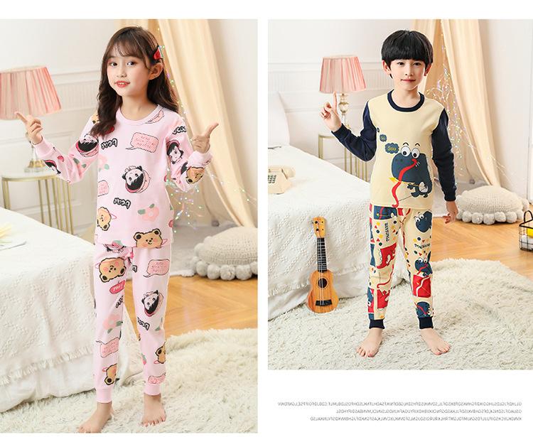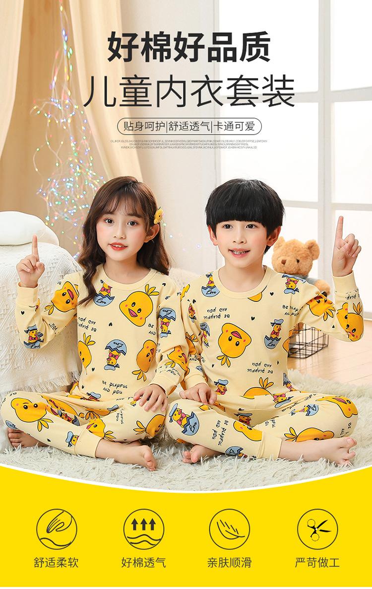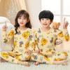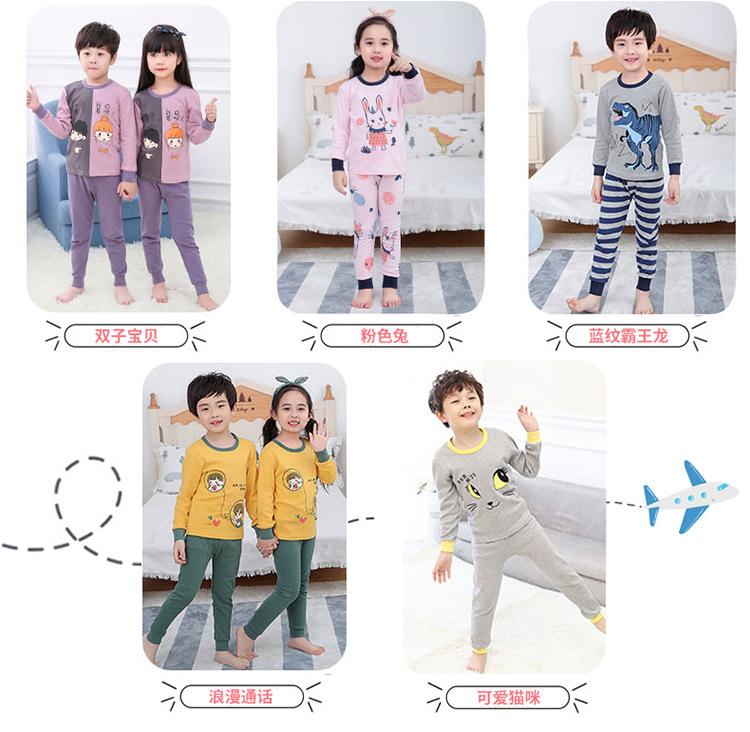 Conjunto de dos piezas de ropa de casa de algodón para niños y niñas para otoño e invierno, conjunto térmico de ropa interior en stock