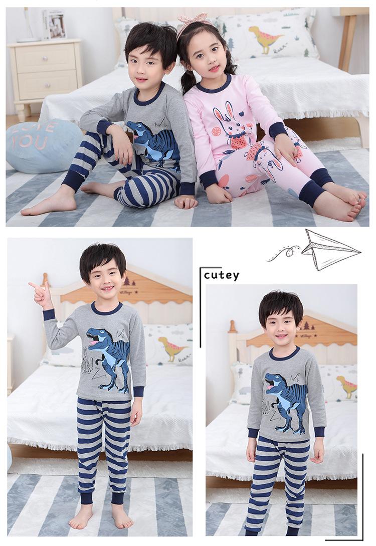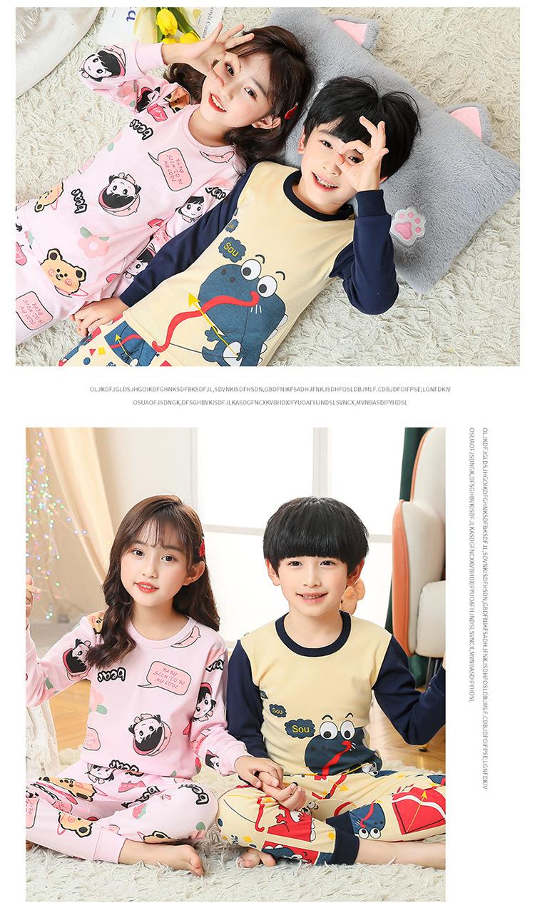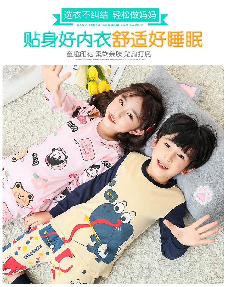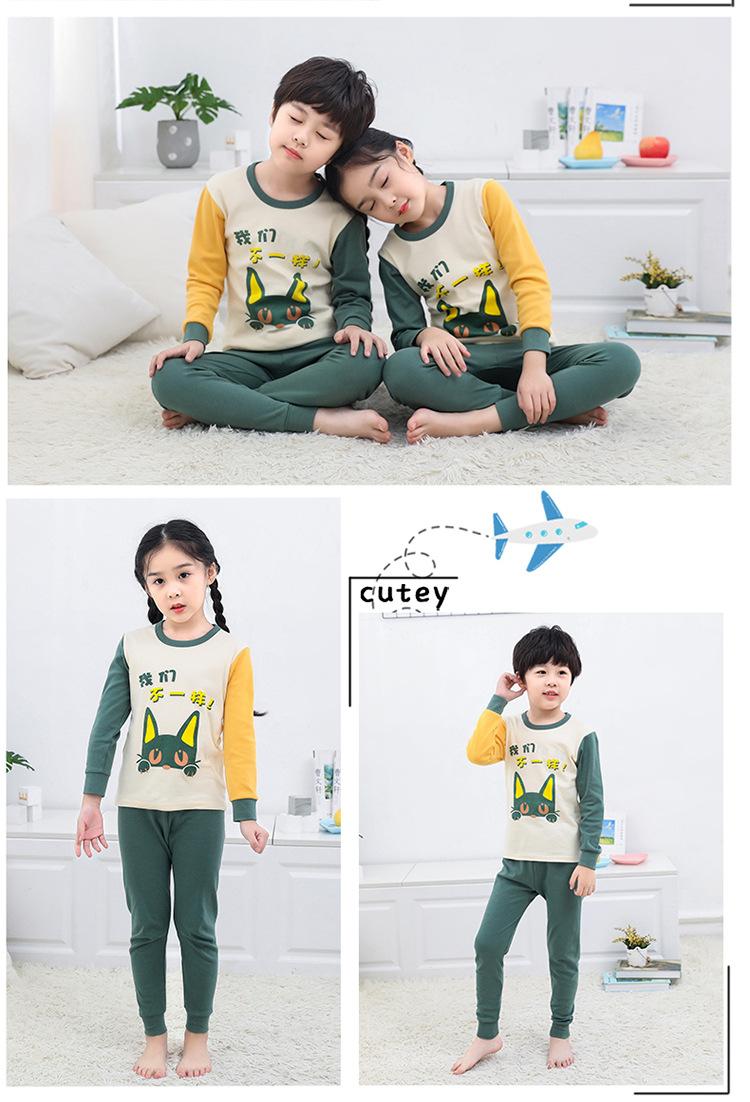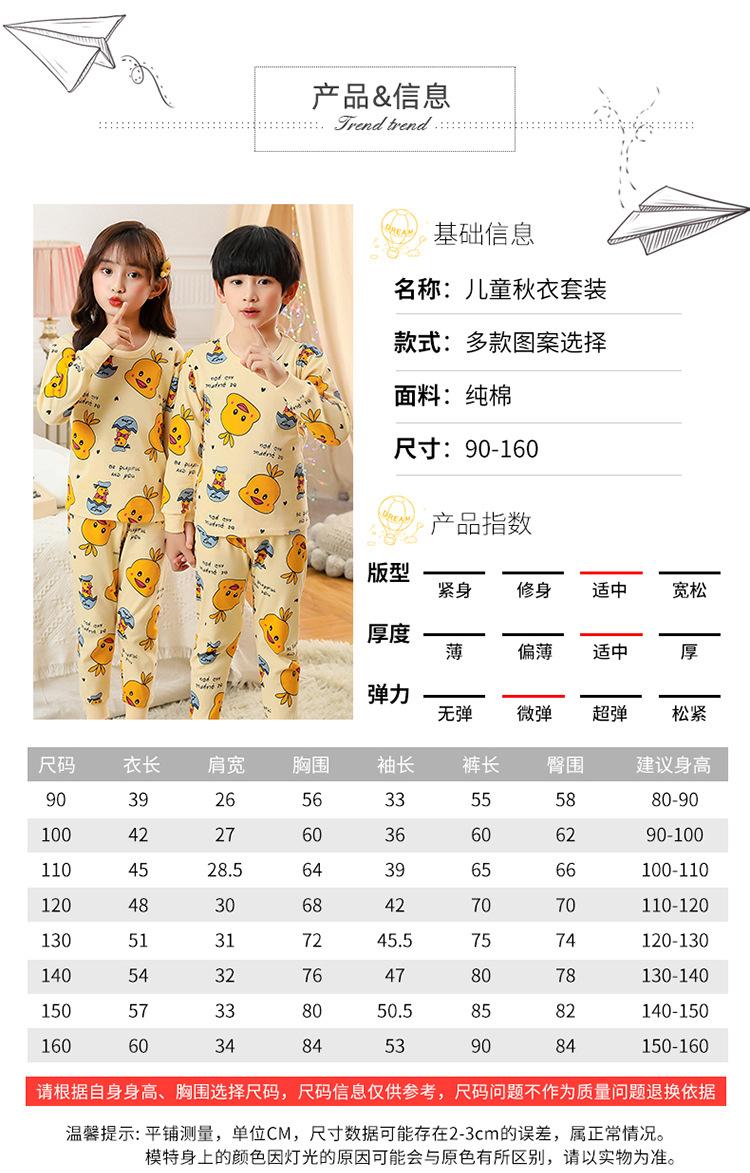 Conjunto de dos piezas de ropa de casa de algodón para niños y niñas para otoño e invierno, conjunto térmico de ropa interior en stock