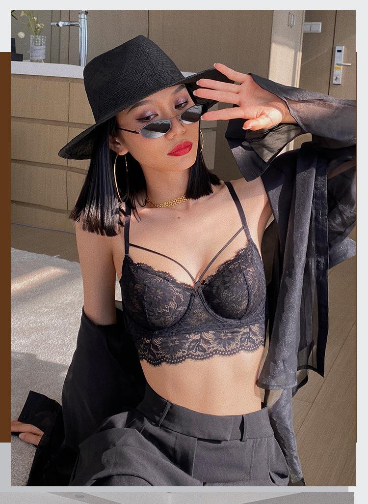 Ropa interior sexy transfronteriza europea y americana para mujer en verano, Sujetador de encaje bordado ultradelgado, Pechos grandes, Conjunto de ropa interior francesa