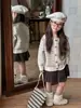 Otoño 2024 Tesoro Estilo Coreano para Mujer Sencillo Combinable de Rayas Cuello Redondo Cárdigan Tejido para Niños Top Chaqueta Tejida para Niñas