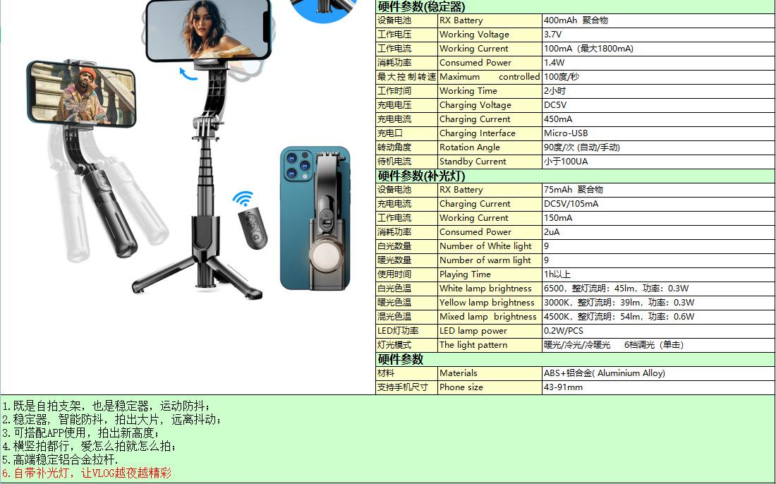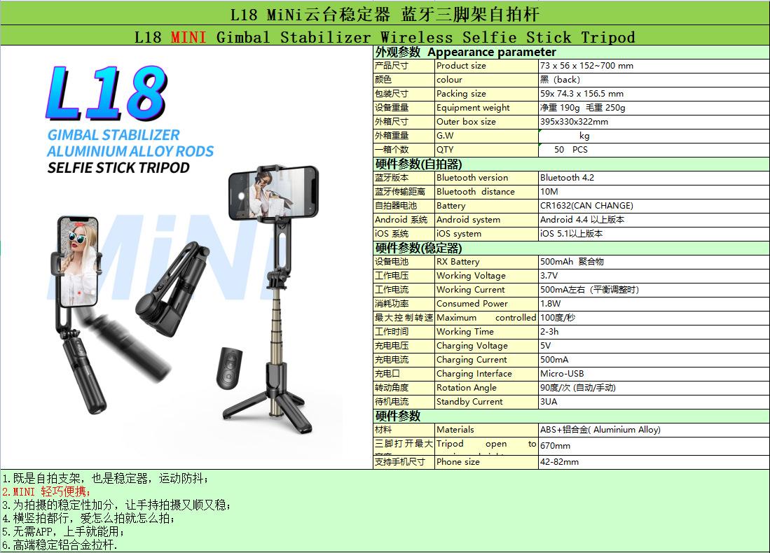 Nuevo estabilizador de mano L18mini mini soporte para teléfono móvil cardán palo selfie antivibración selfie artefacto para transmisión en vivo