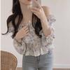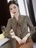 Camisa de gasa con lazo y manga larga para mujer, estilo francés, elegante y de alta sociedad, para principios de otoño 2022