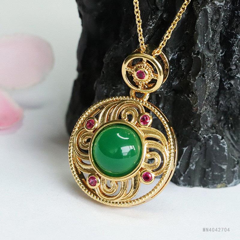 Colgante de calcedonia verde hielo Yuyu, collar de cristal de ágata, fábrica de joyería nacional de mareas, venta al por mayor, generación MN4042704