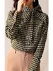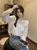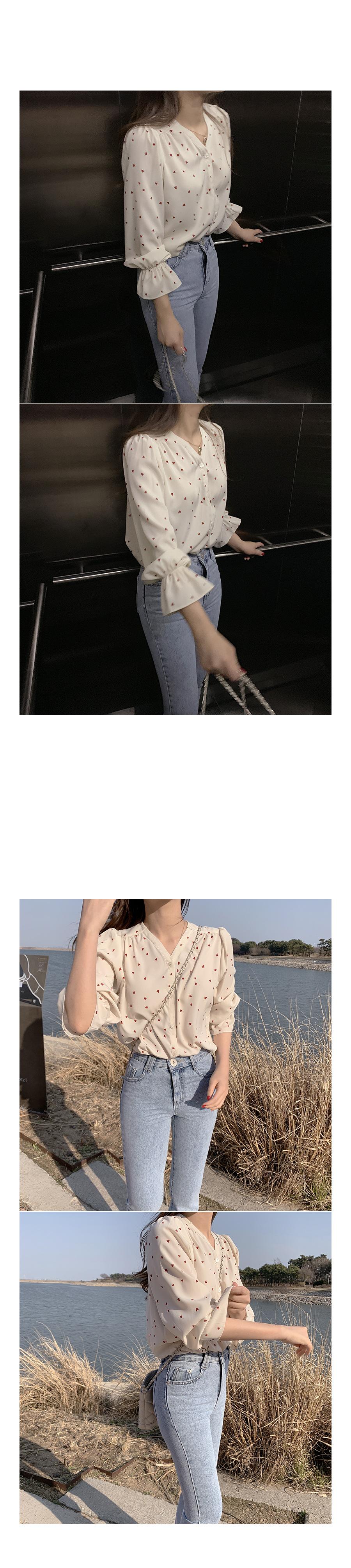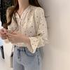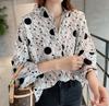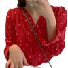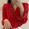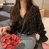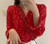Camisa de mujer estilo coreano con estampado de amor, de gasa, manga larga, cuello en V, estilo retro de Hong Kong, diseño personalizado, estilo occidental.