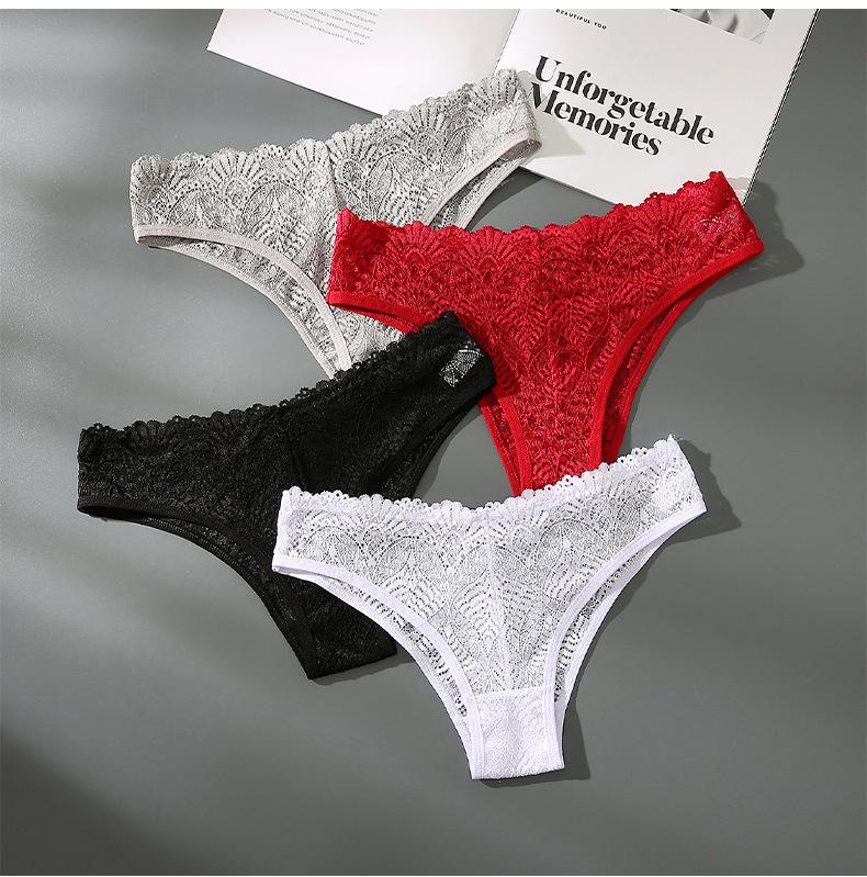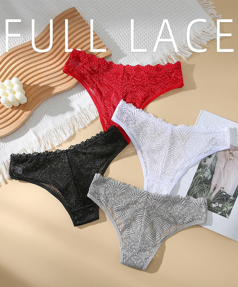 Tanga de encaje para mujer, ropa interior sexy y tentadora, transparente, deportiva, de cintura baja, brasileña