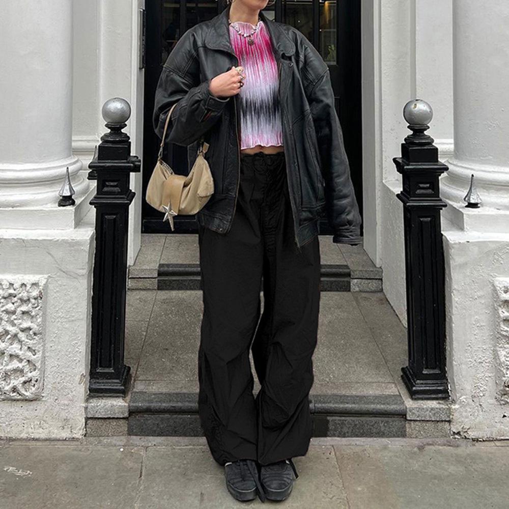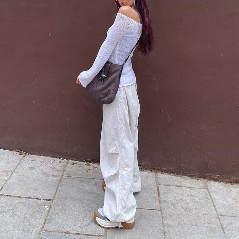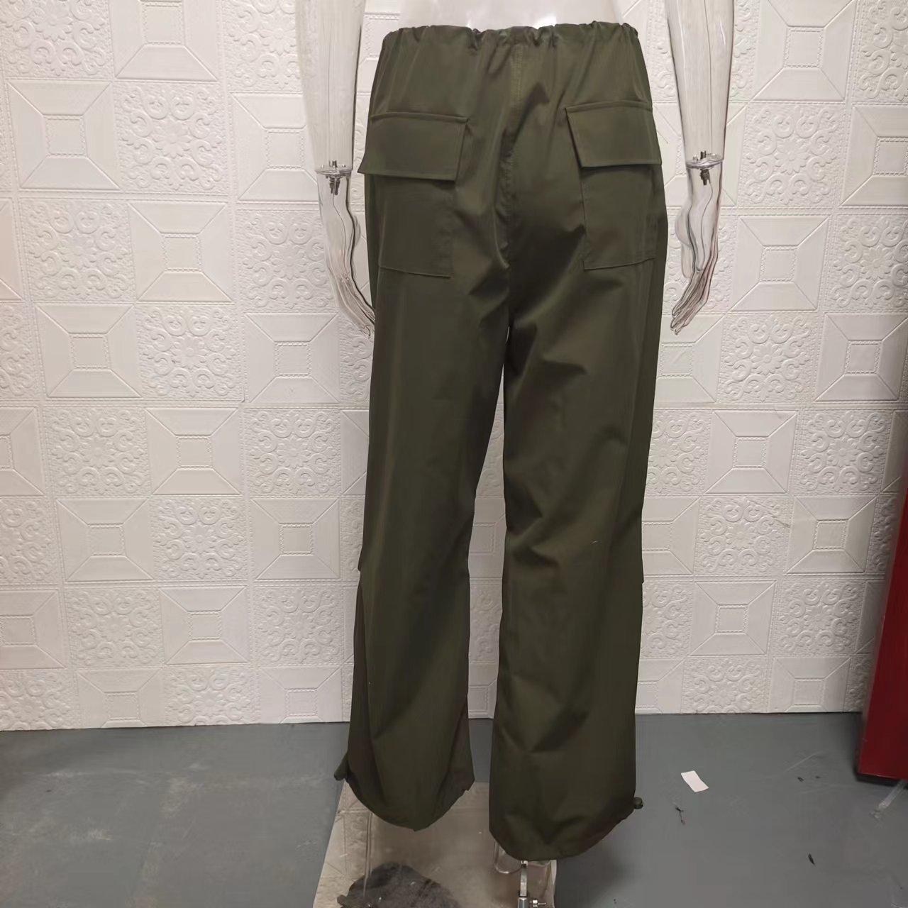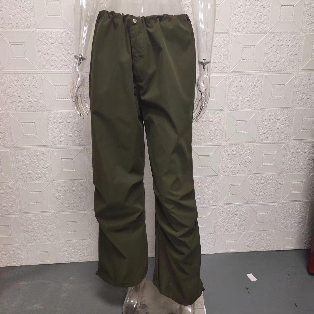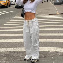 2022 Primavera y Verano Transfronterizo Europeo y Americano Nuevo Europeo y Americano Chica Caliente Ropa de Trabajo Elástico Cordón Moda Cintura Baja Pierna Ancha Pantalones Casuales