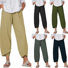 Ropa de mujer transfronteriza de Amazon 2022 nueva europea y americana Amazon eBay europea y americana talla grande holgada algodón y lino pantalones casuales