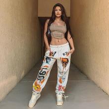 2022 Amazon Otoño e Invierno Nuevo Halloween Tendencia Callejera Vendaje Multiestampado Cálido Pantalón Recto Pantalón Casual