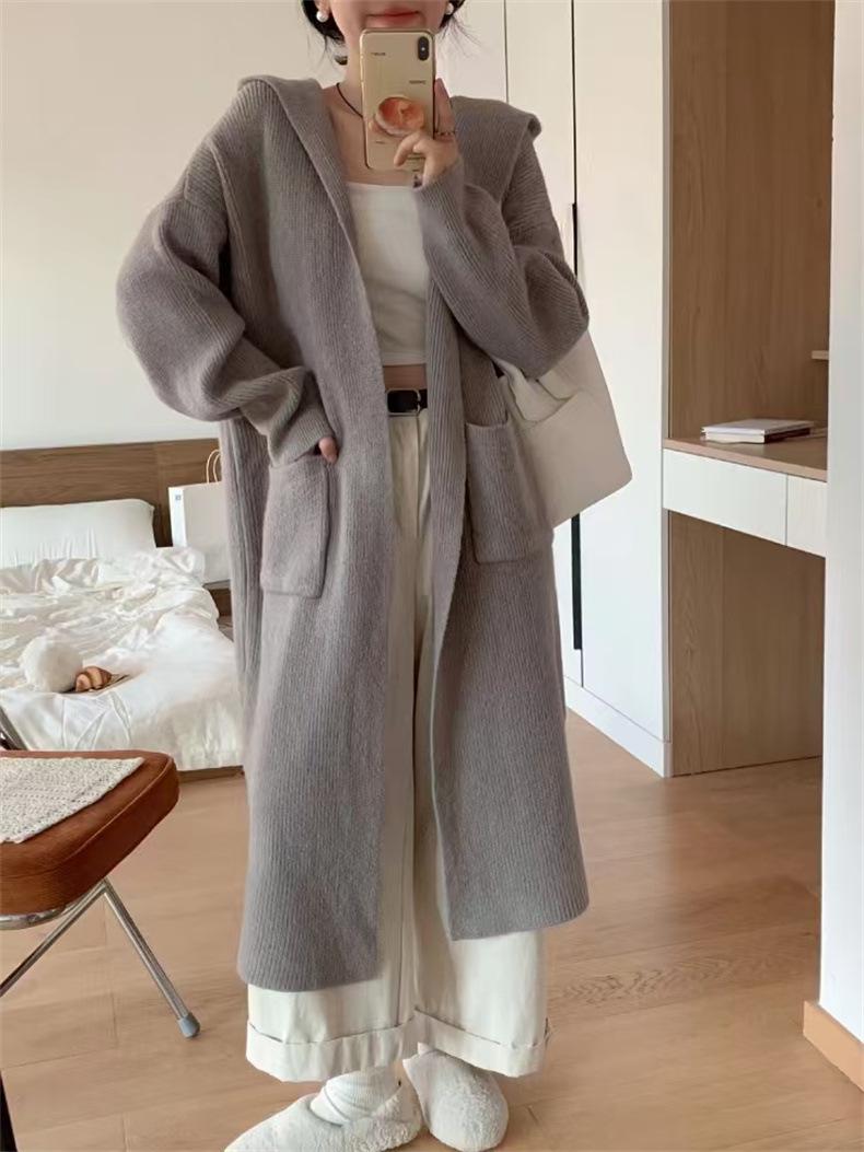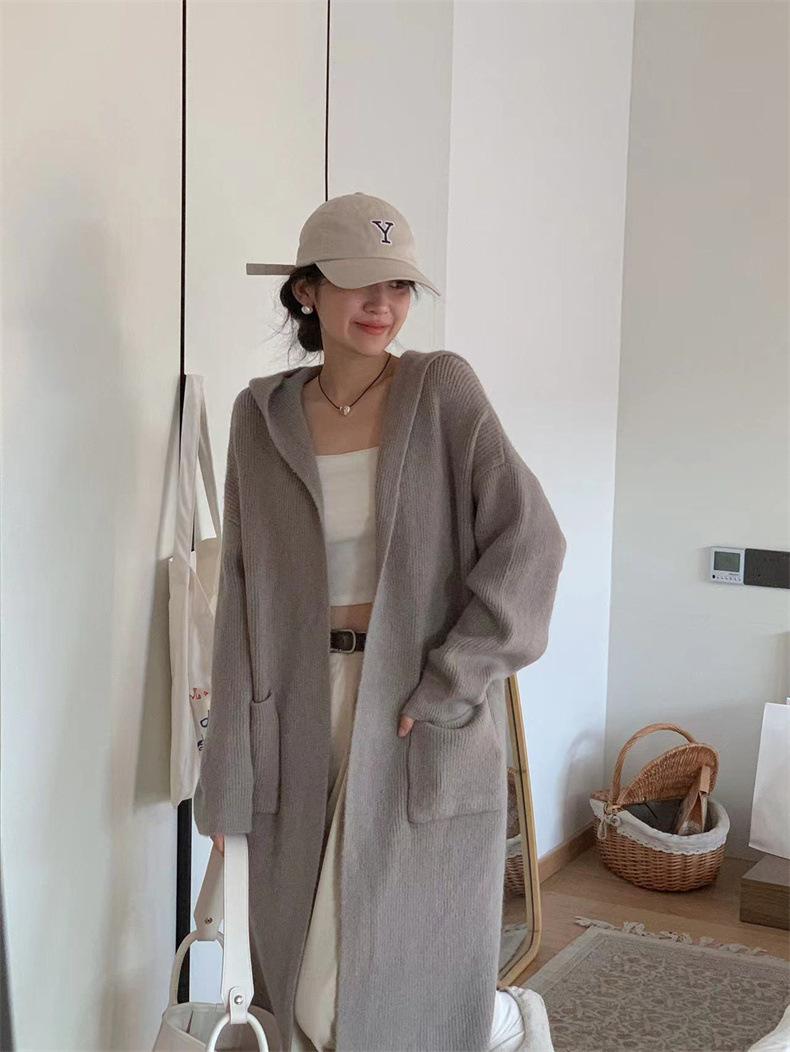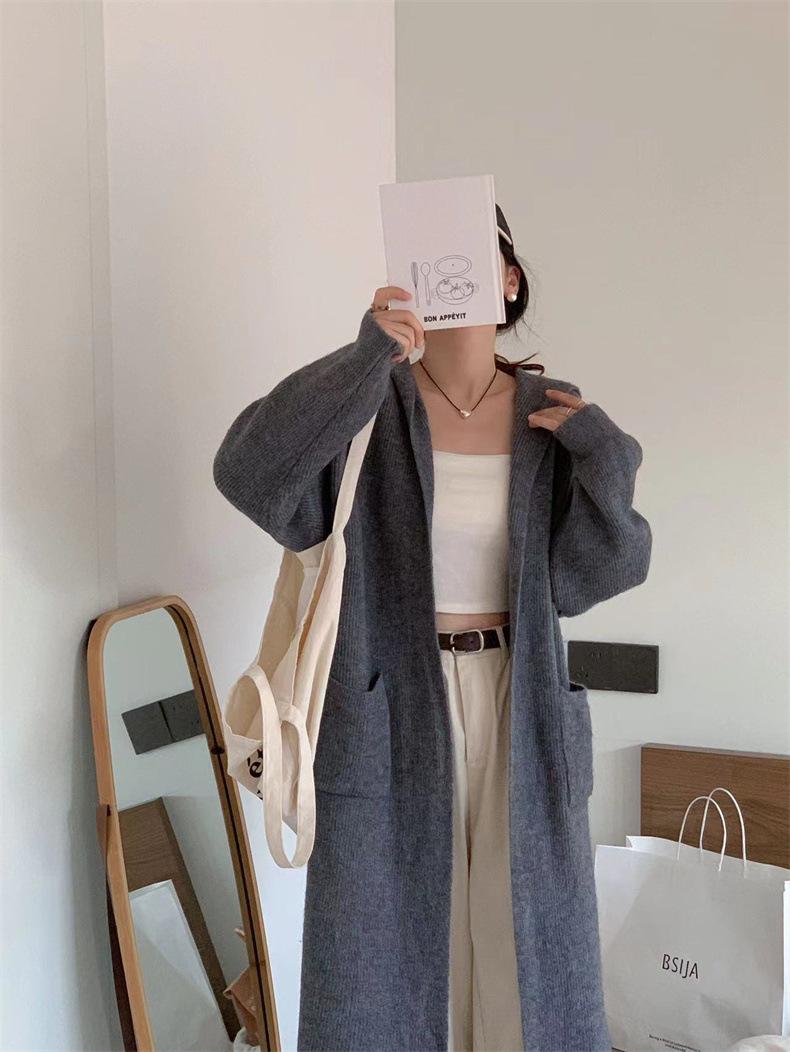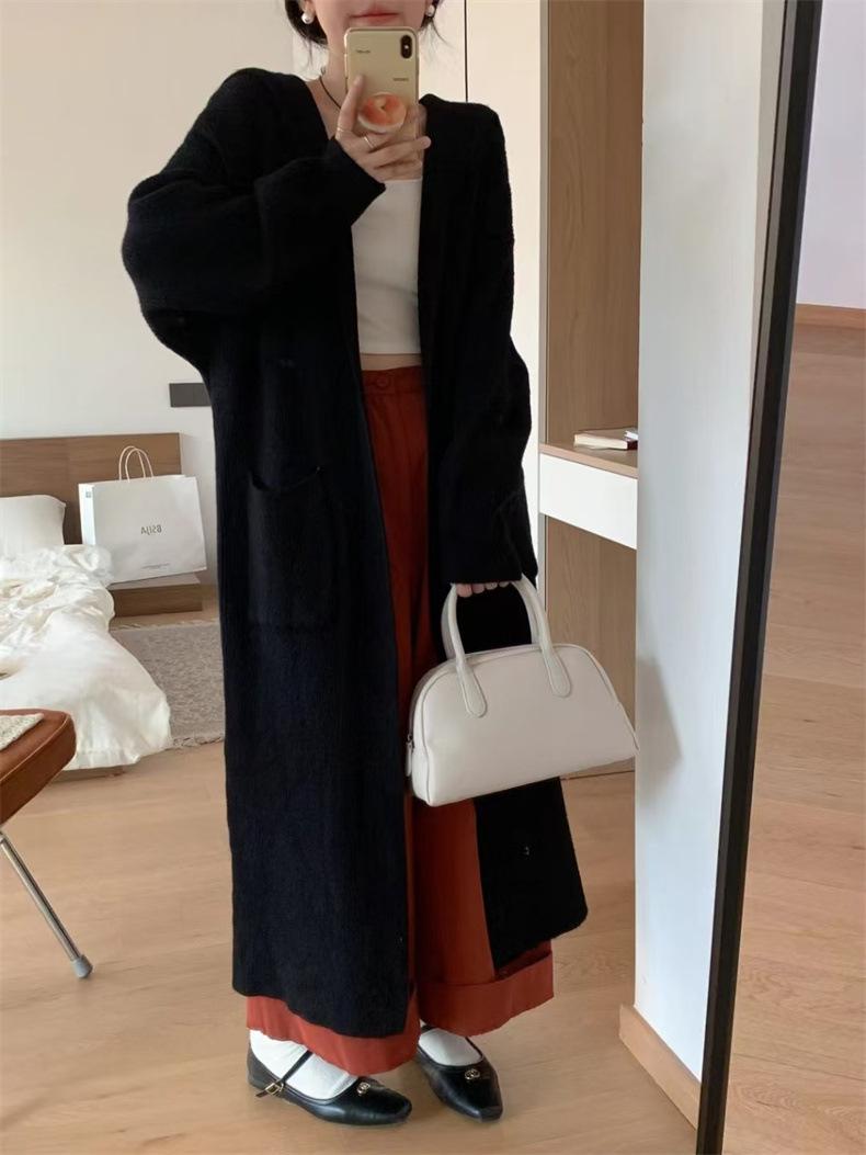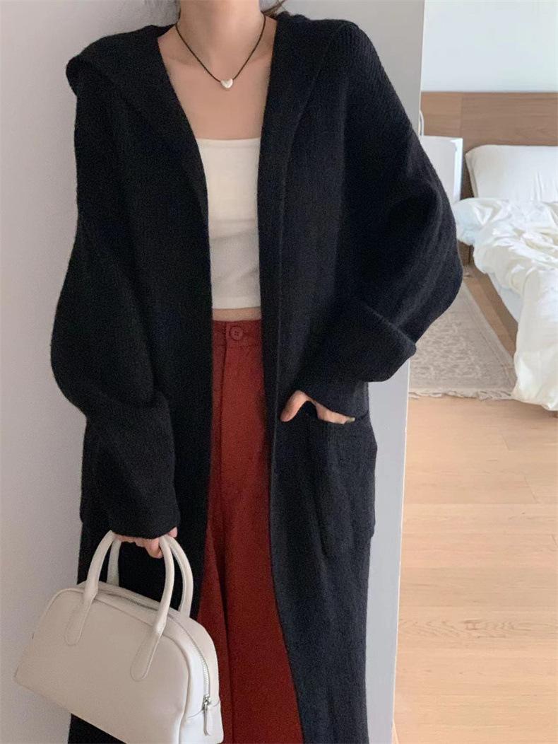 Suéter informal de estilo coreano de longitud media y estilo holgado para mujer, otoño e invierno, nuevo cárdigan de punto sencillo y holgado, abrigo para mujer