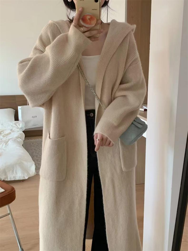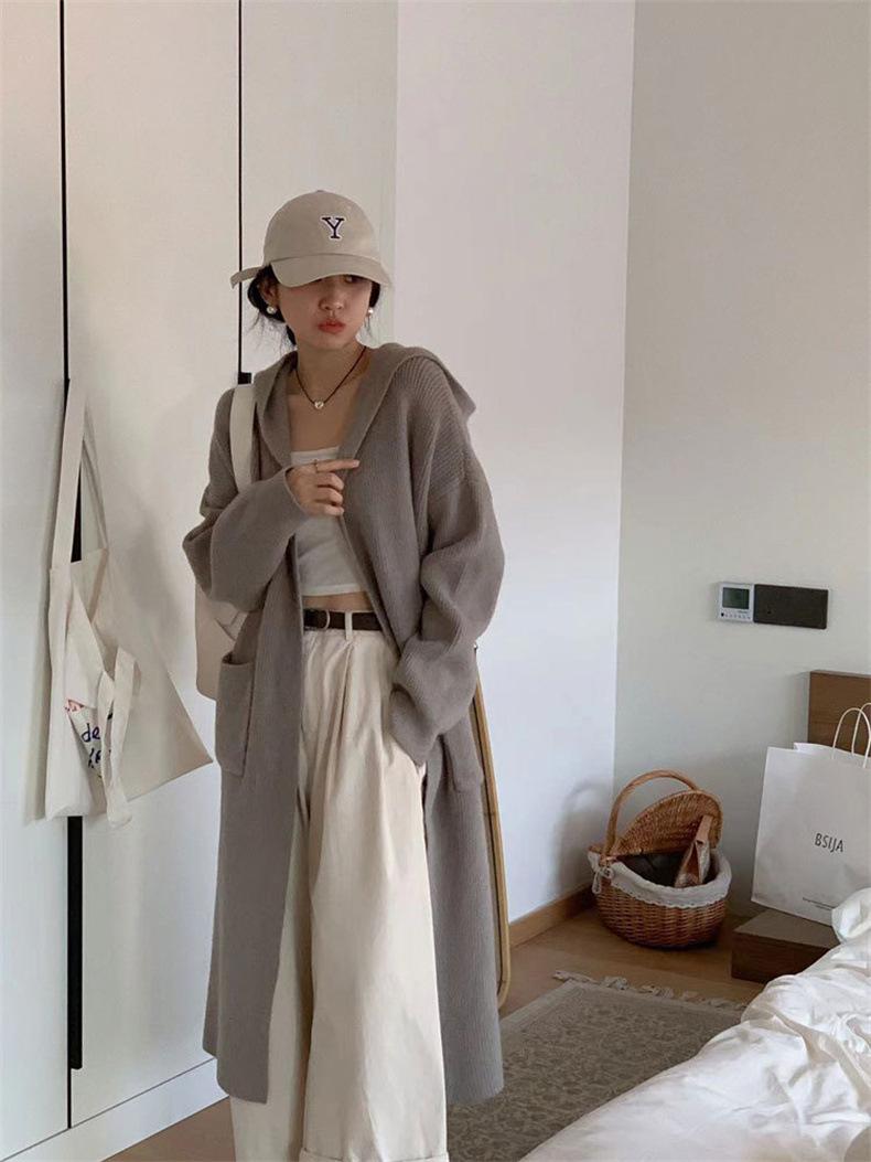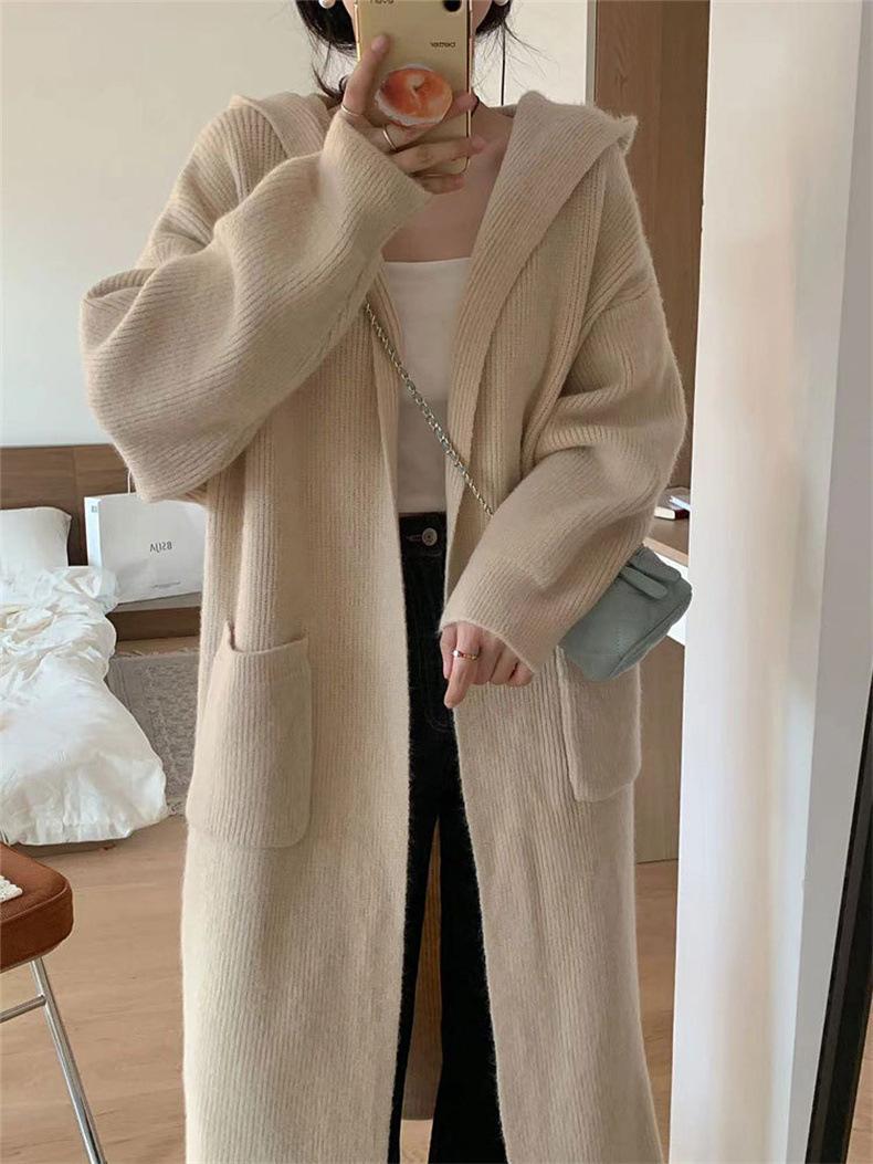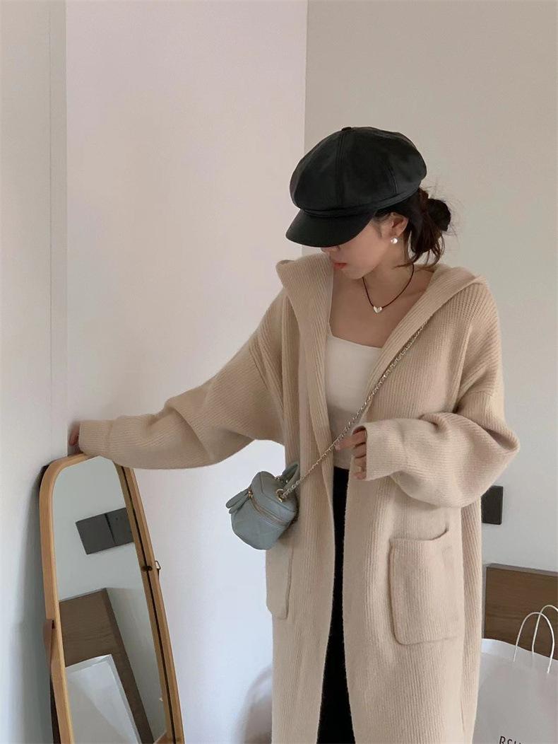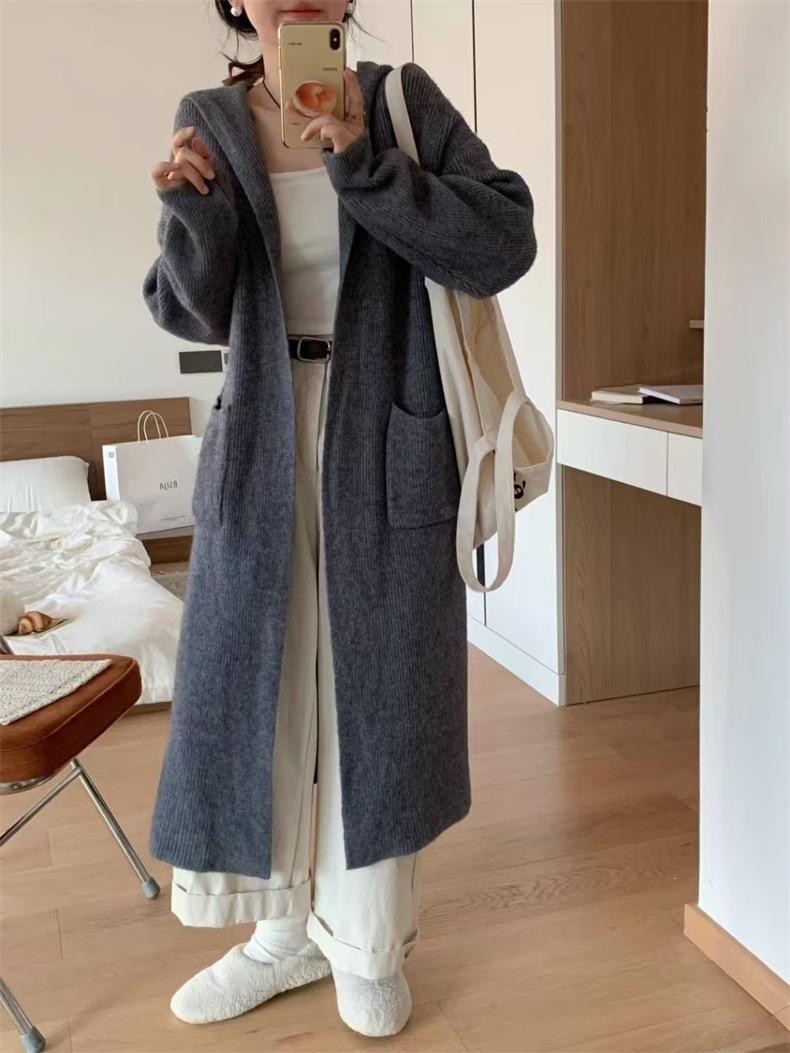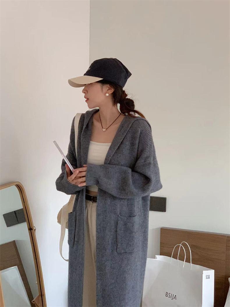 Suéter informal de estilo coreano de longitud media y estilo holgado para mujer, otoño e invierno, nuevo cárdigan de punto sencillo y holgado, abrigo para mujer