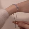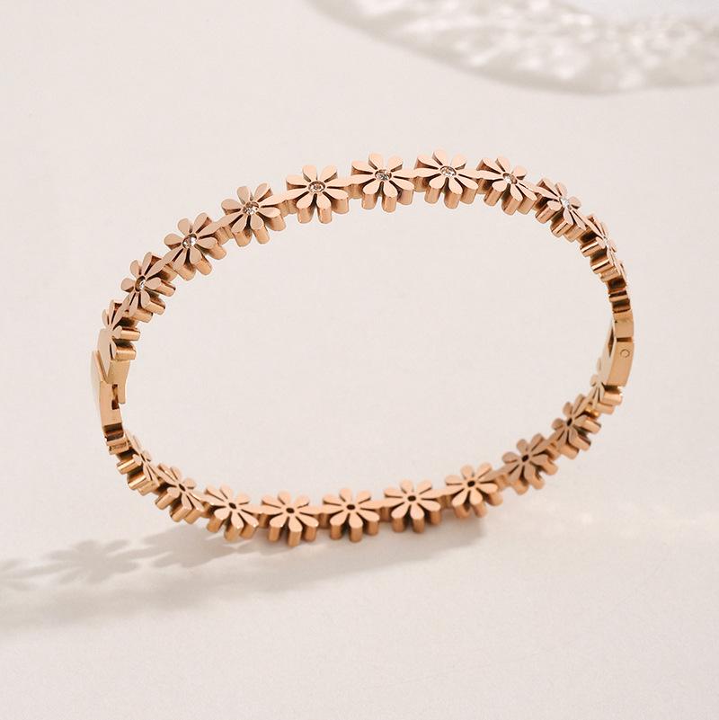 Pulsera de acero de titanio con margarita incrustada de diamantes para mujer, diseño de minoría de verano, sentido de lujo ligero, joyería de acero inoxidable, temperamento con sentido de alta gama, simple