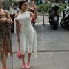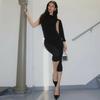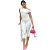 Ropa Europea y Americana 2025 Verano Nueva Moda Fotografía Callejera Cuello Inclinado Top sin Mangas Traje de Pantalones Cortos Ajustados con Cordones al por Mayor
