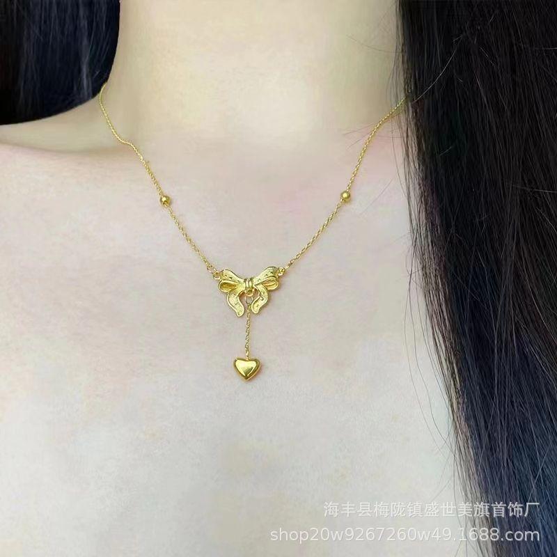 Collar de Princesa Huyendo de Explosiones Vivas Diseño de Nicho de Moda Borla de Lazo Colgante de Amor Cadena para Clavícula