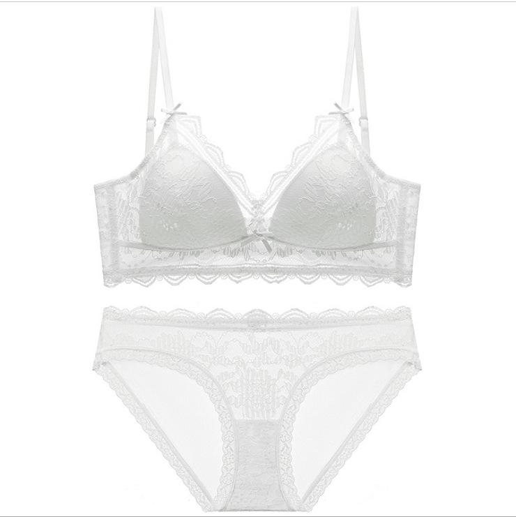 Conjunto de sujetador invisible fino de encaje sexy estilo francés para mujer, ropa interior grande sin espalda en forma de U