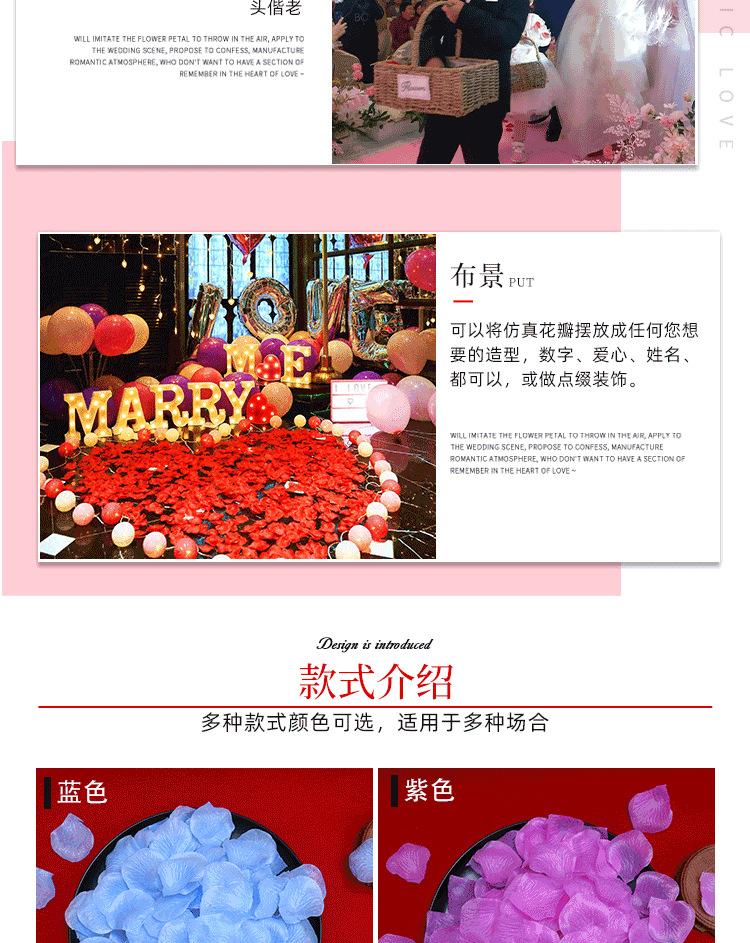 Wine red-simulated petals 1000, Big Red-Simulation Petal 1000, Pink-Simulation Petal 1000, Powder gradient col...