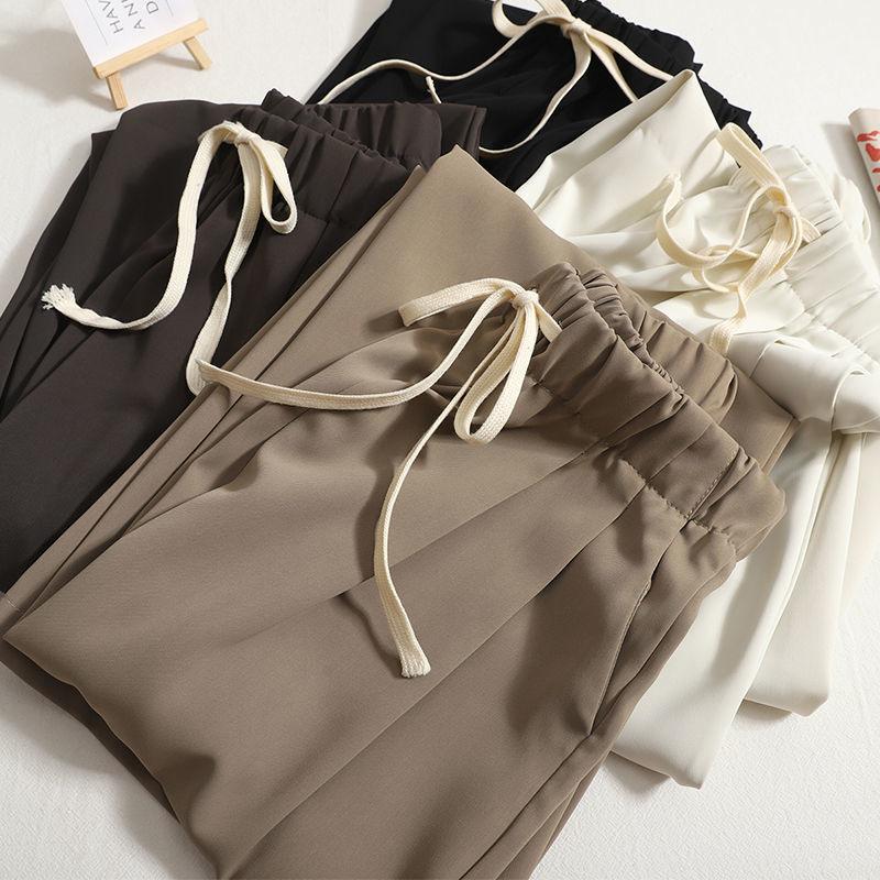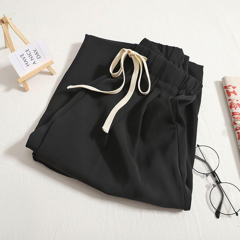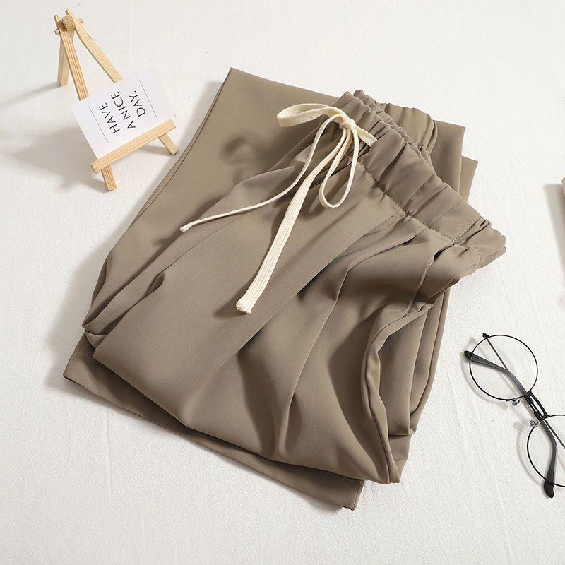 Pantalones de mujer, traje de seda de hielo, pantalones de pierna ancha para chicas gorditas, pantalones casuales de verano sueltos y rectos de talla grande para mujer