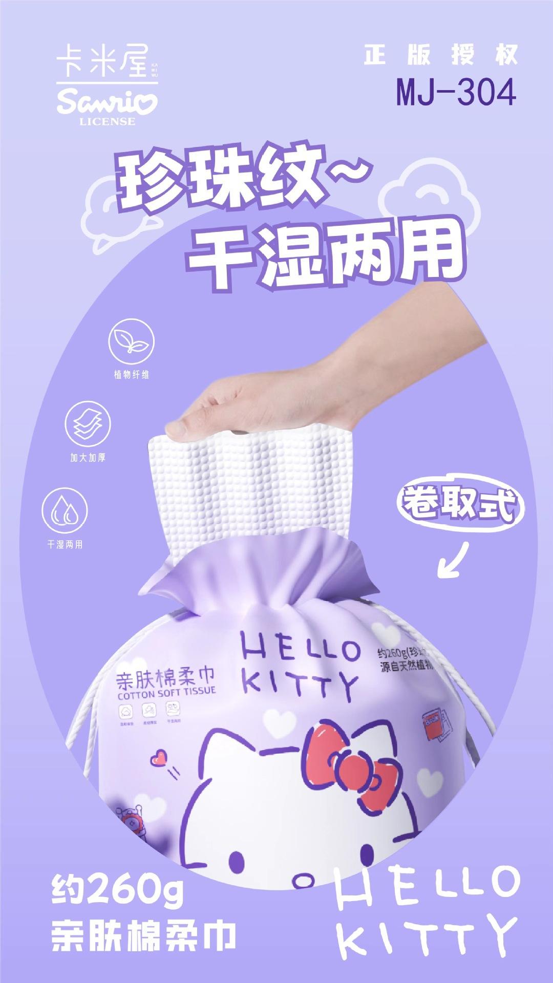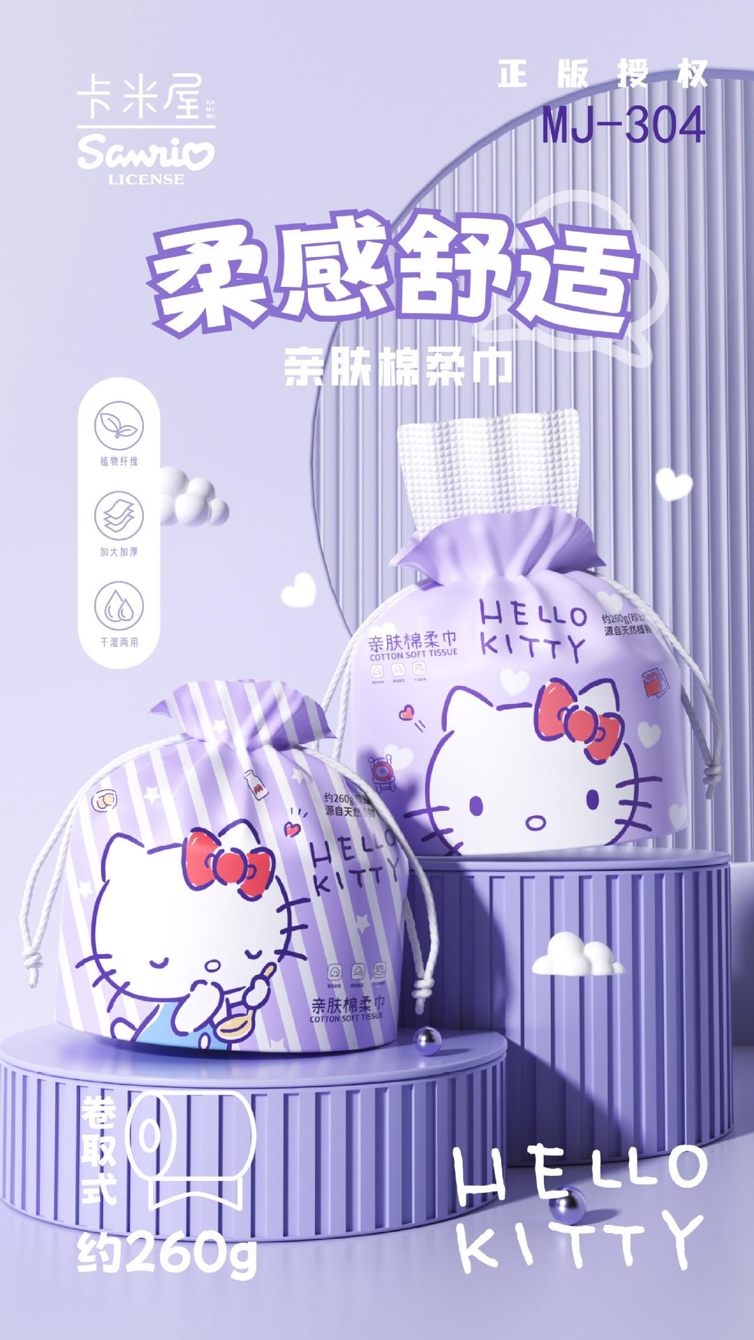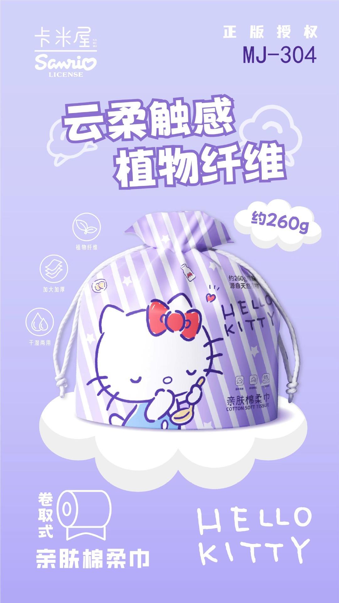 Kitty pink 260g roll towel mj-004, Kitty purple 260g roll towel mj-305, Melody 260g roll towel mj-050