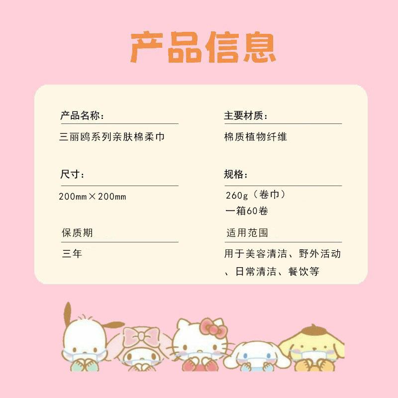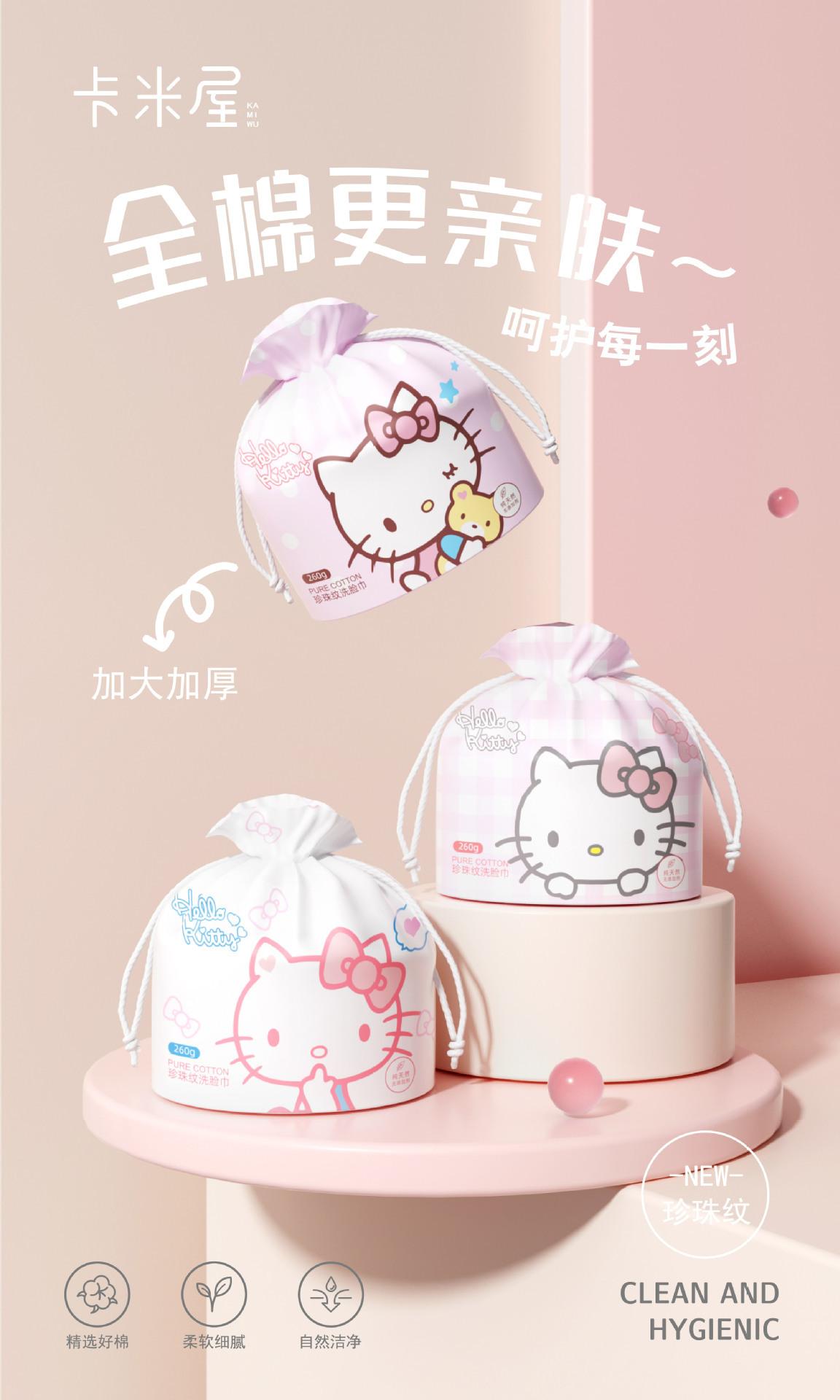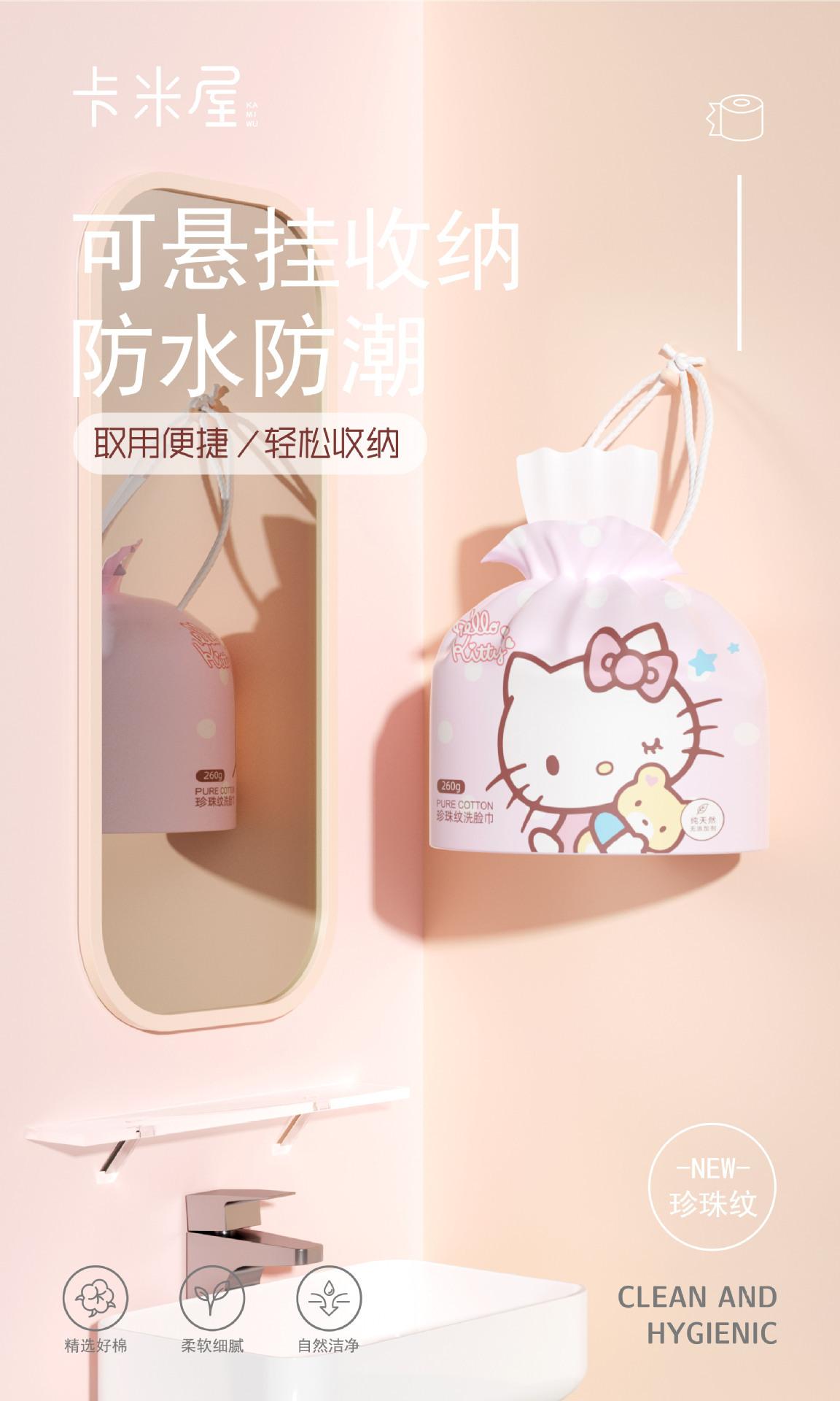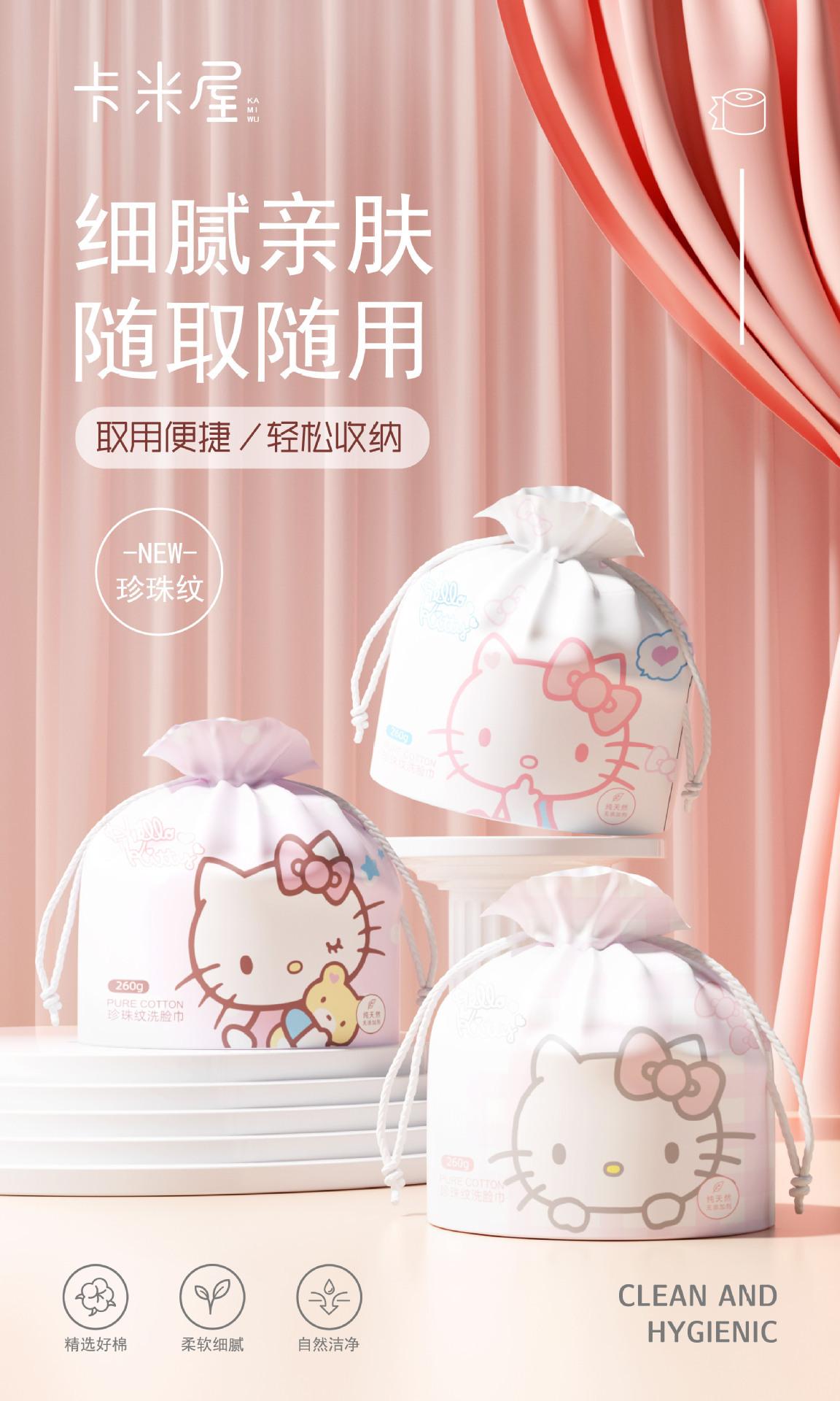 Toalla suave desechable de algodón grueso, toalla facial Sanrio Kitty, toalla de limpieza húmeda y seca con patrón de perlas, venta al por mayor