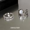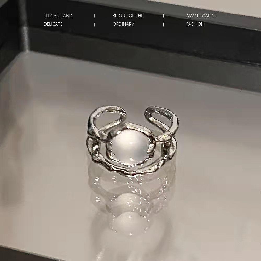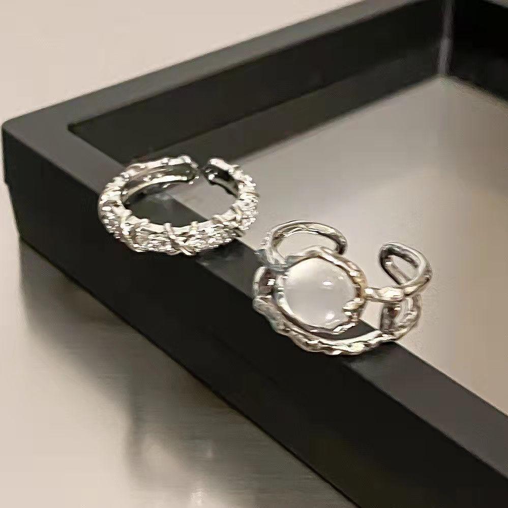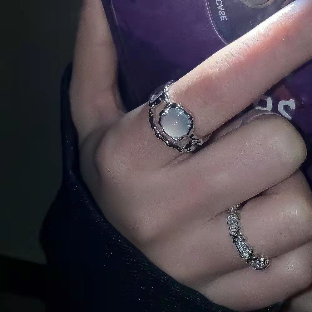 Anillo de Piedra Lunar de Dos Piezas Anillo Abierto de Diamantes para Mujer Diseño Nicho Anillo Liso Anillo para el Dedo Anillo Francés de Autodisciplina