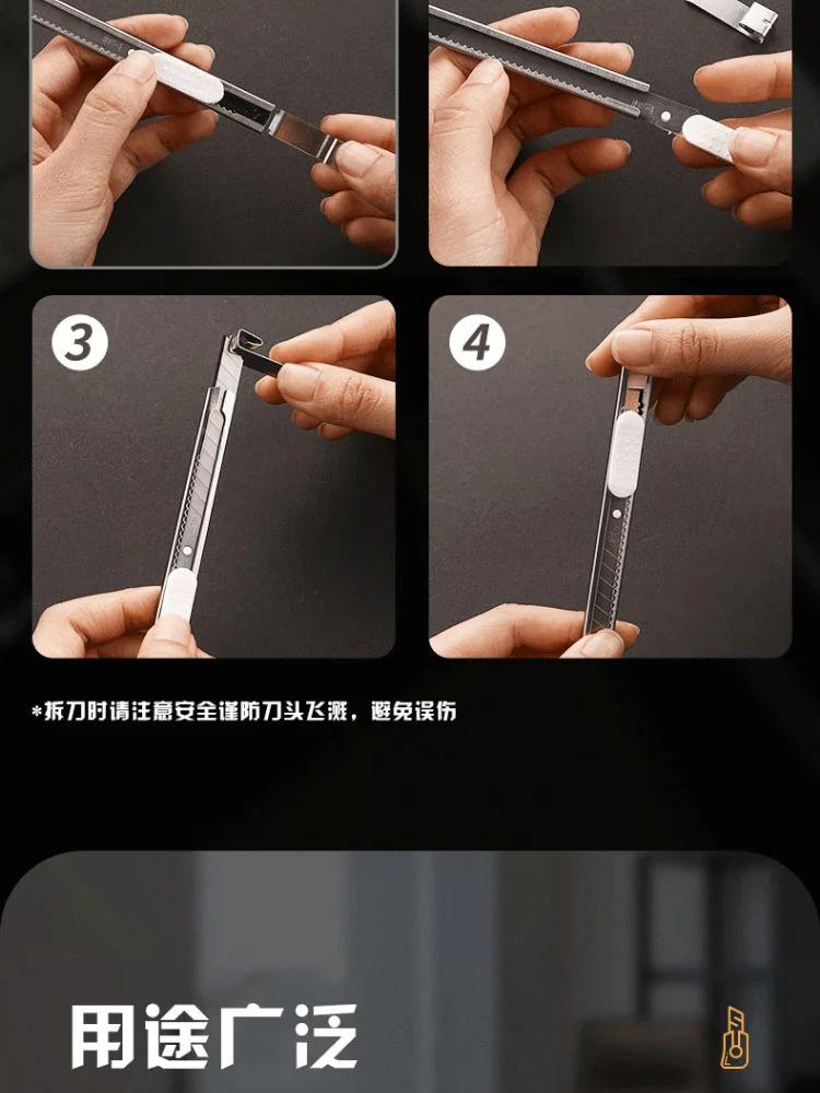 Cuchillo utilitario de acero inoxidable tamaño pequeño 9 mm cortador de papel cortador de película cuchillo para papel tapiz abrecartas cuchillo pequeño soporte para cuchillo utilitario