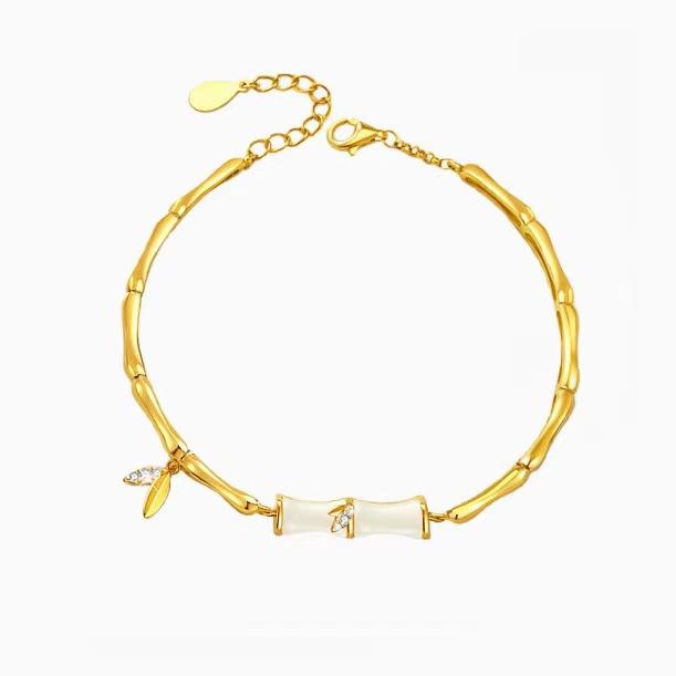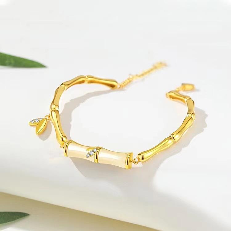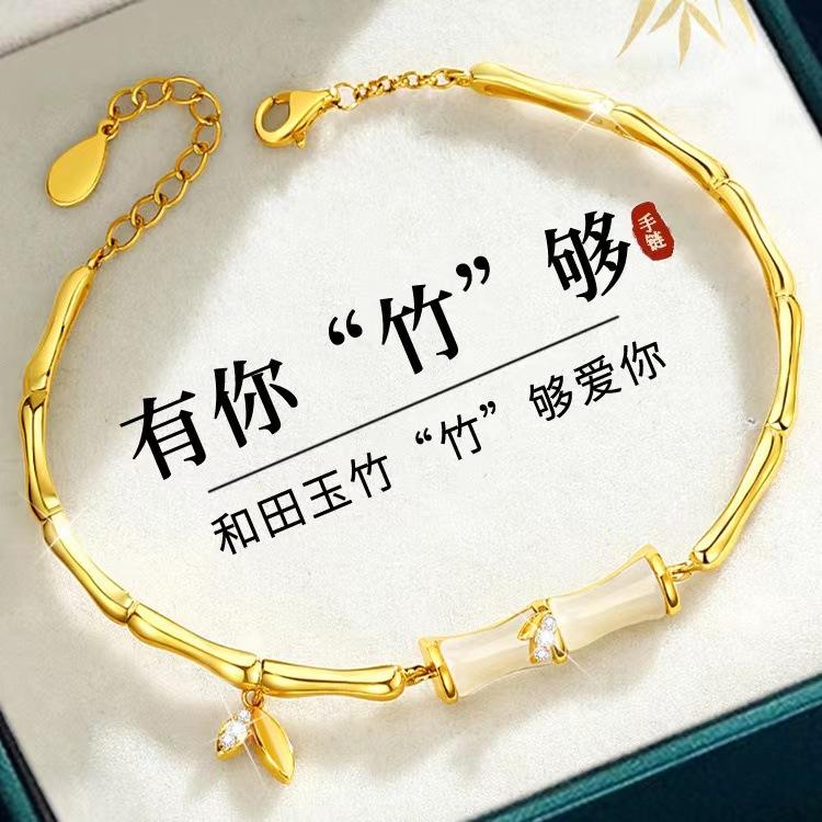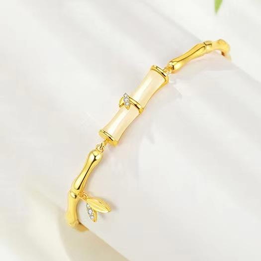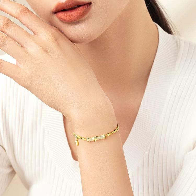 ¿Tienes suficiente bambú? Pulsera de bambú para mujer, pulsera de jade Hetian de alta gama estilo chino, joyería galvanizada, regalo para novia