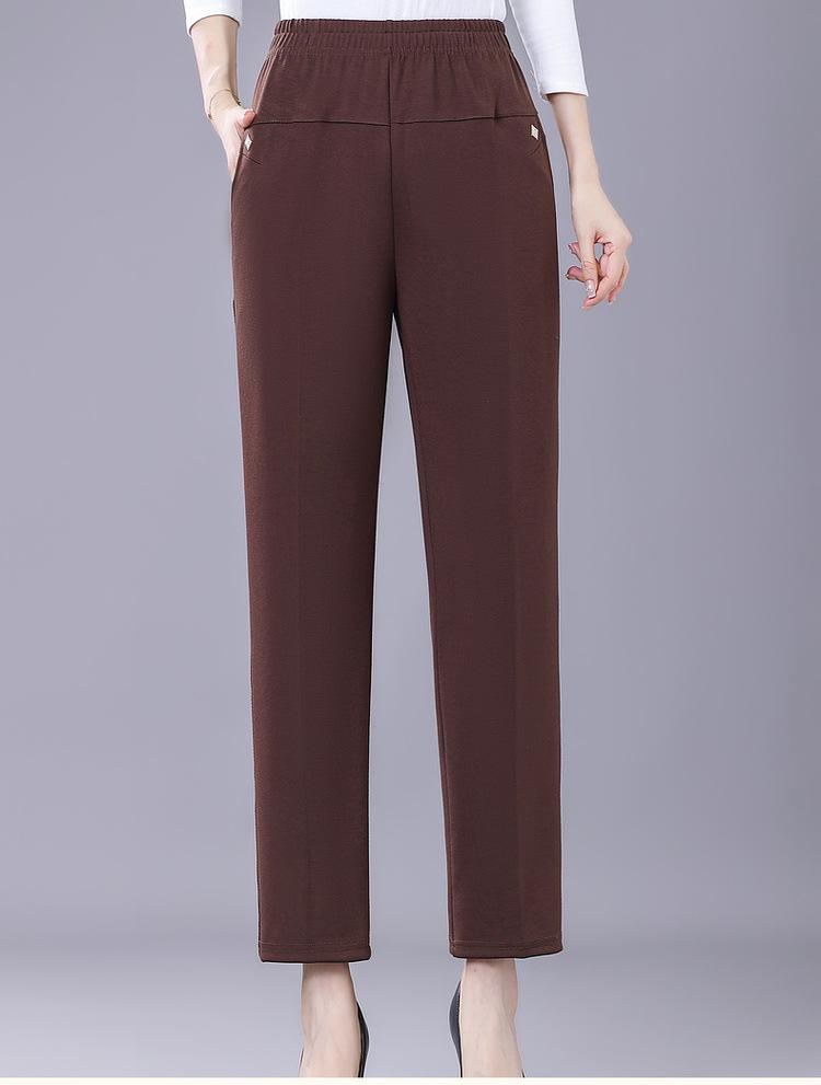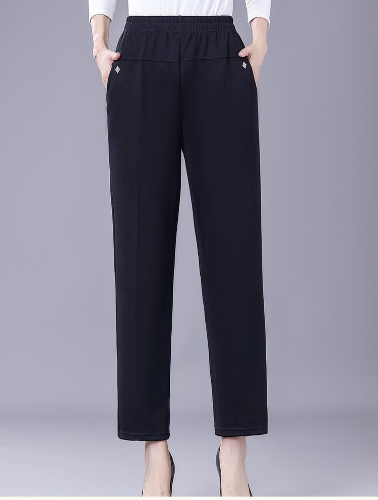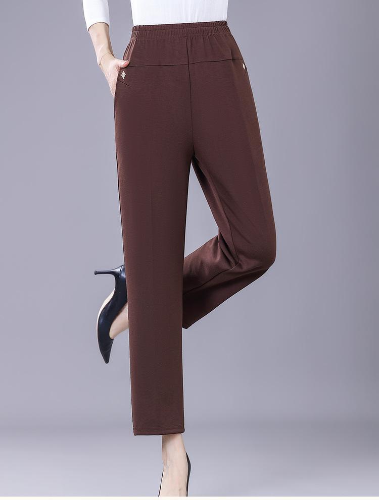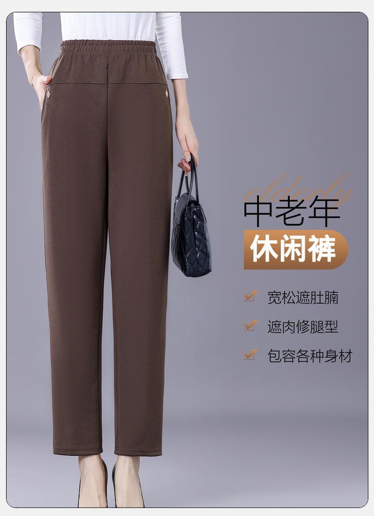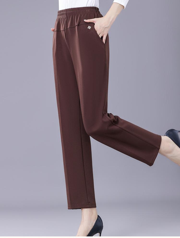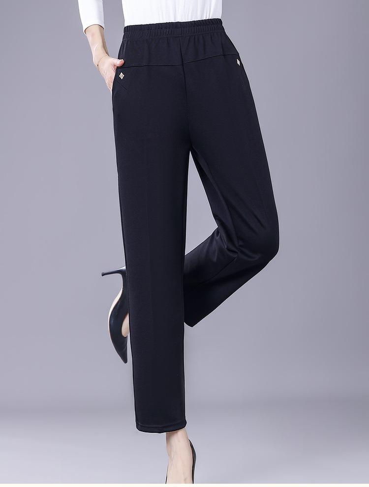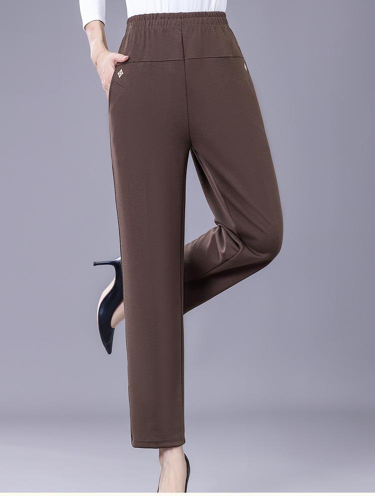 Pantalones de Mamá Primavera y Otoño Pantalones Delgados para Mediana Edad y Ancianas Elásticos Cintura Alta Rectos Otoño Cintura de Abuela Pantalones de Mujer