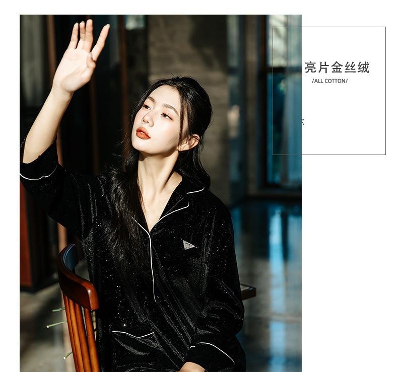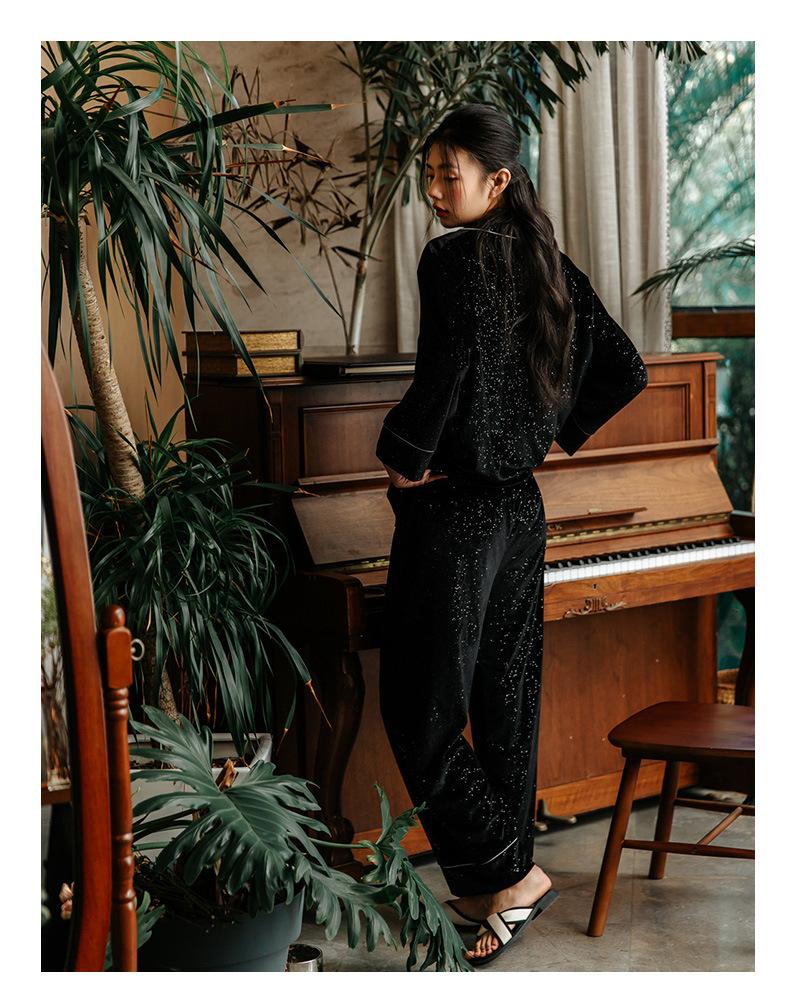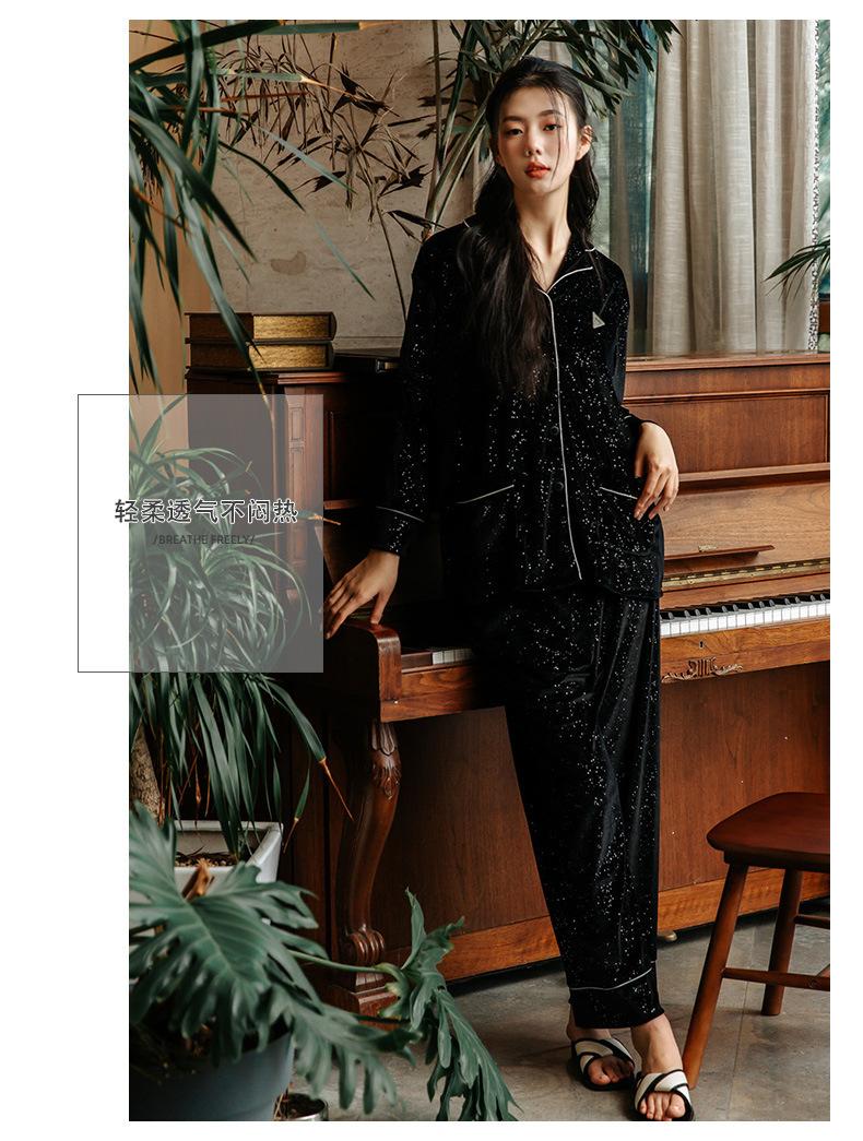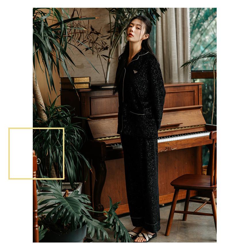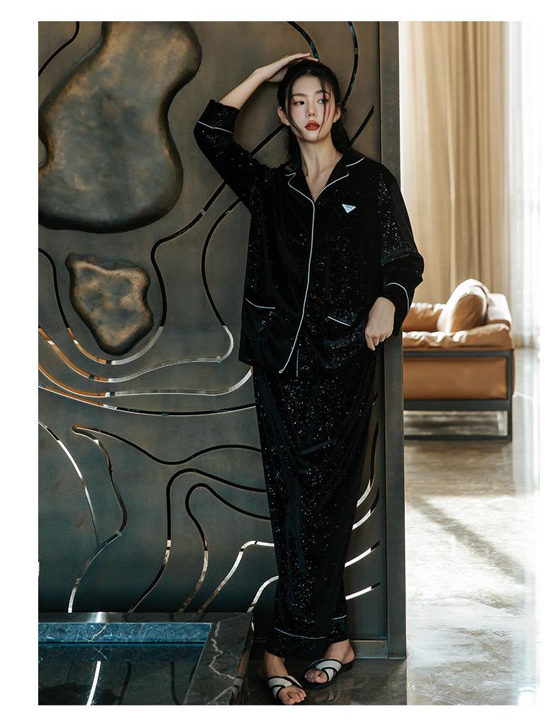 [gypsophila] otoño e invierno lentejuelas de terciopelo dorado brillante ropa de casa gran banyan vivir con lujo ligero pijama de manga larga para mujer