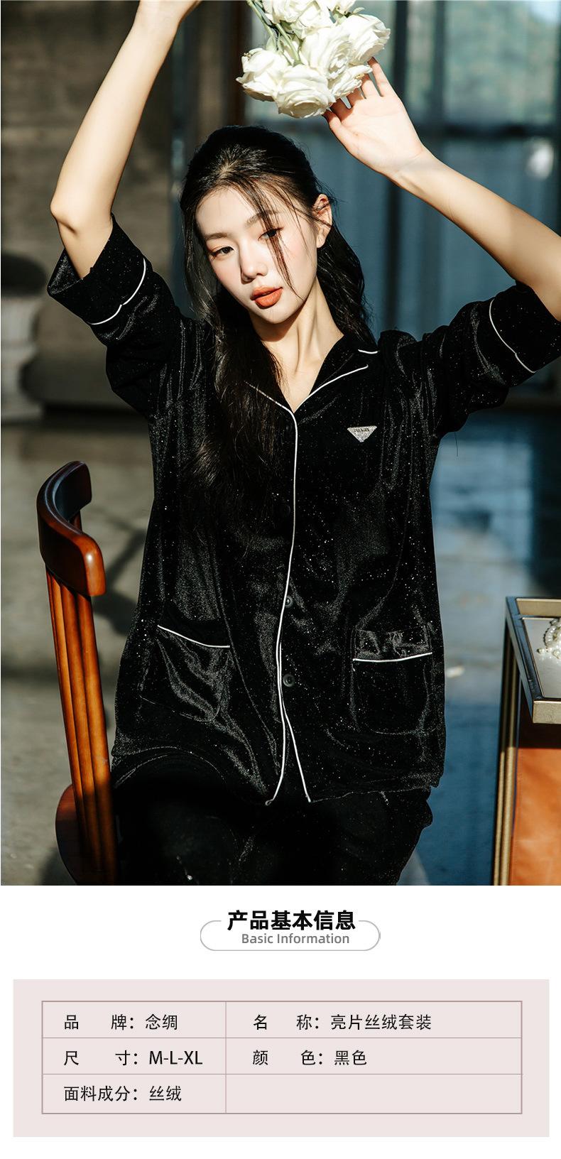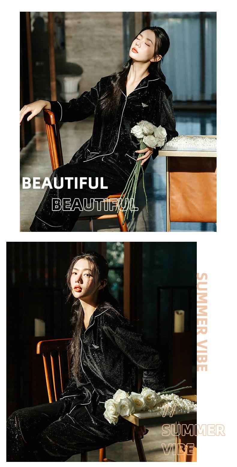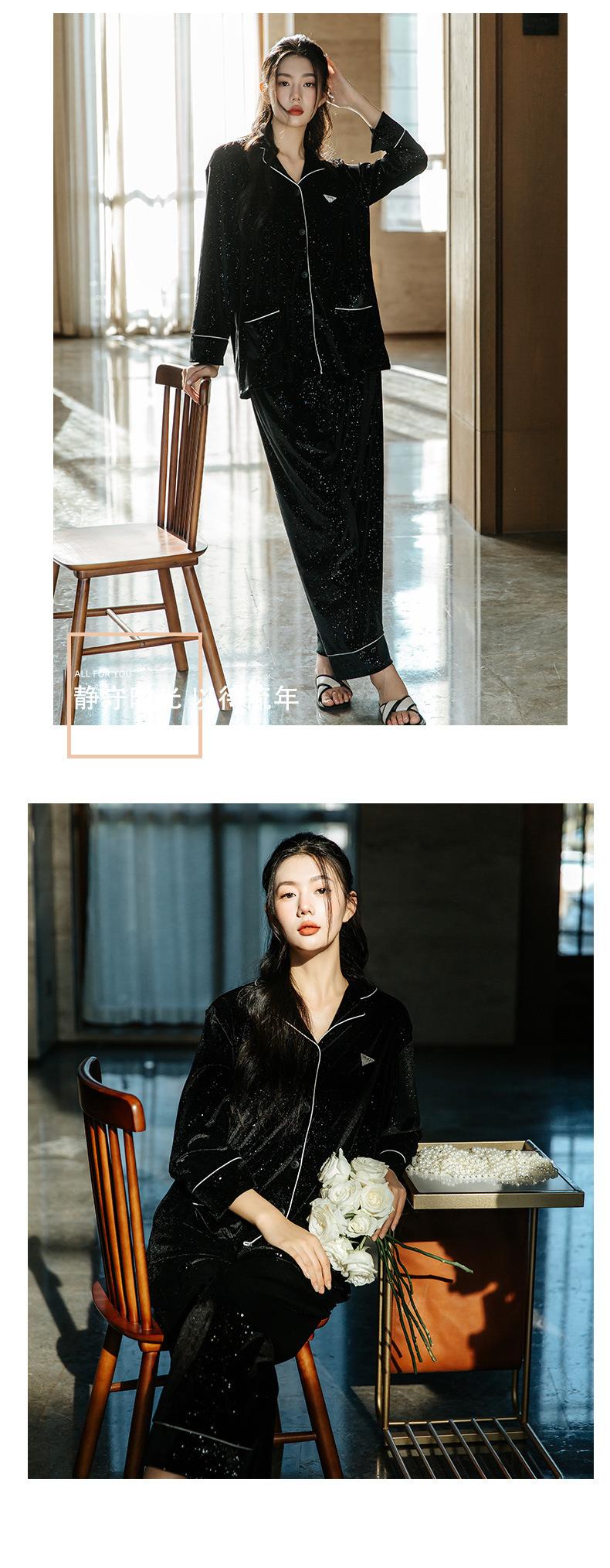 [gypsophila] otoño e invierno lentejuelas de terciopelo dorado brillante ropa de casa gran banyan vivir con lujo ligero pijama de manga larga para mujer