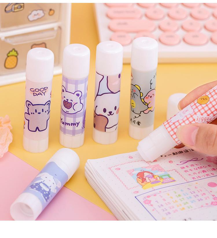 Barra de pegamento de dibujos animados para niños, gran material de oficina para jardín de infantes, barra de pegamento blanca hecha a mano, papelería para estudiantes