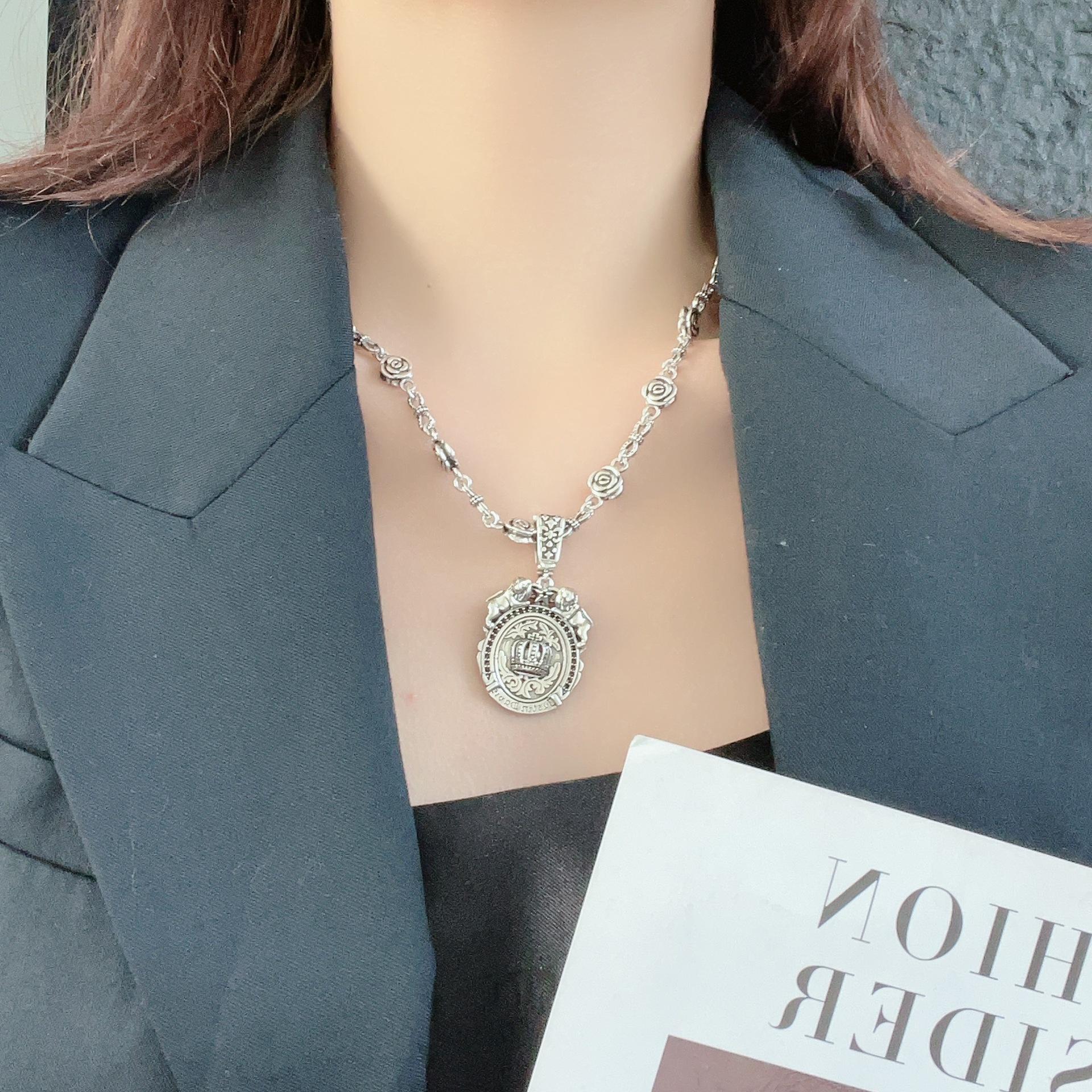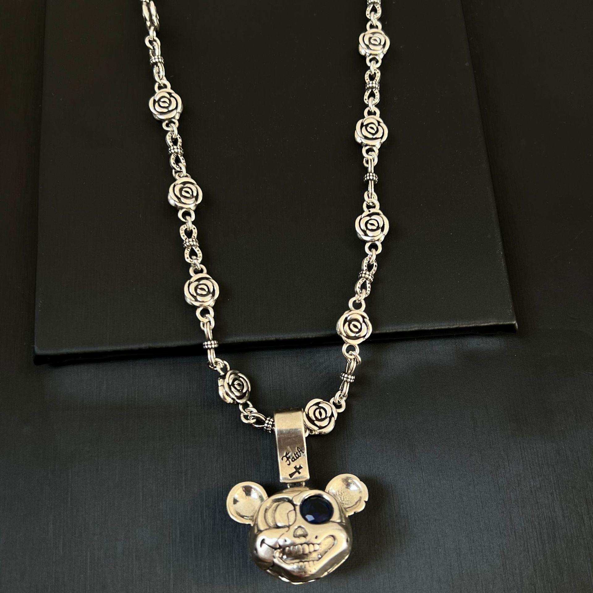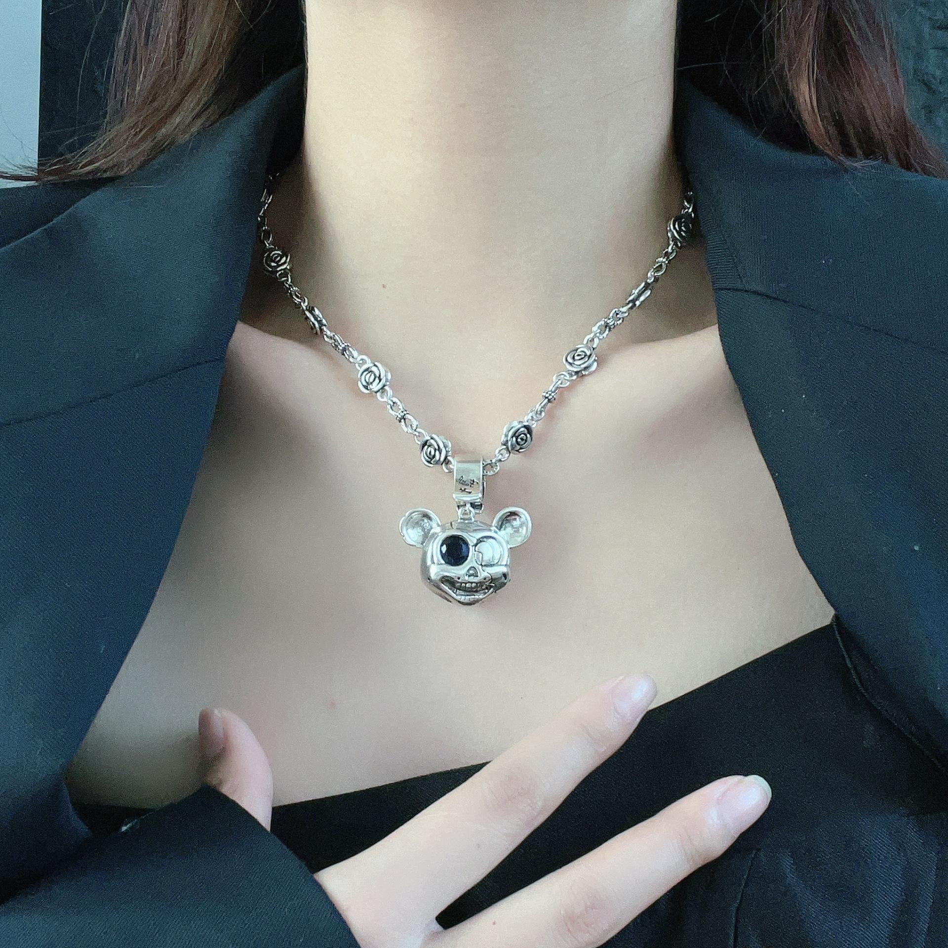 Collar con escudo de dibujos animados estilo hip-hop punk, estilo frío, cadena de sudadera para hombre y mujer, collar personalizado.