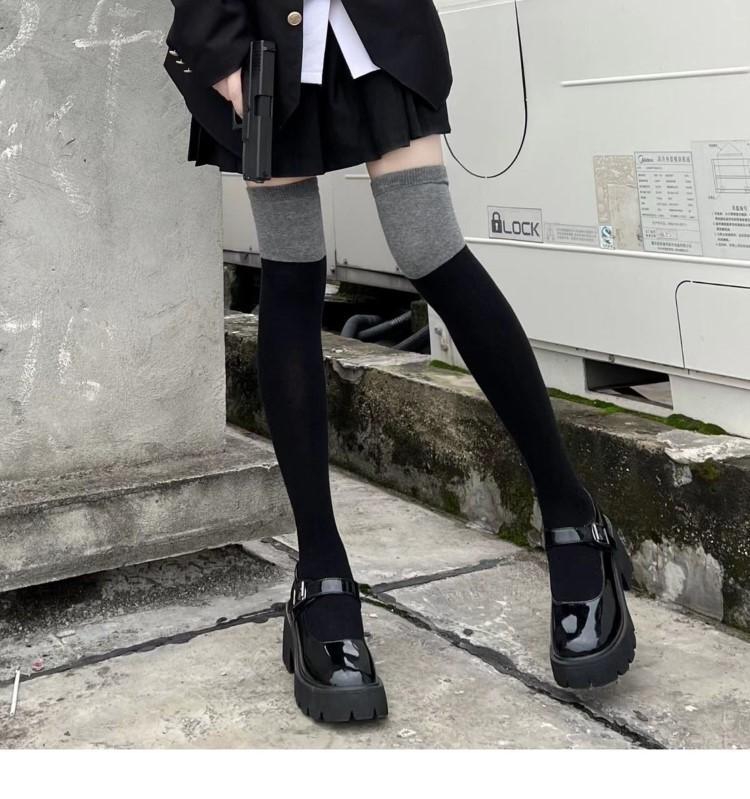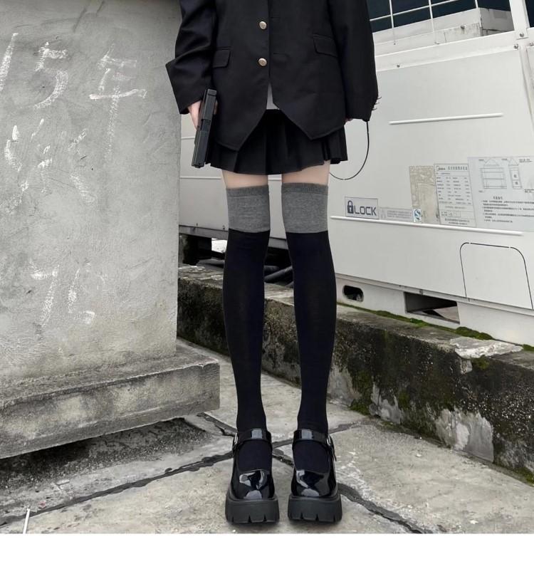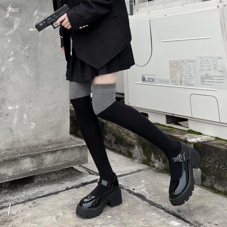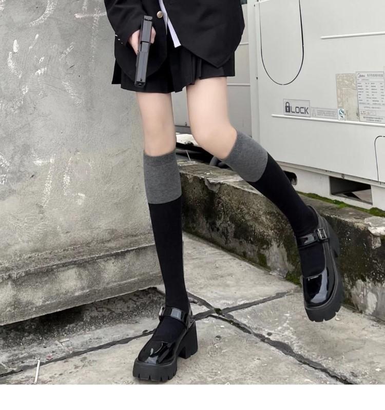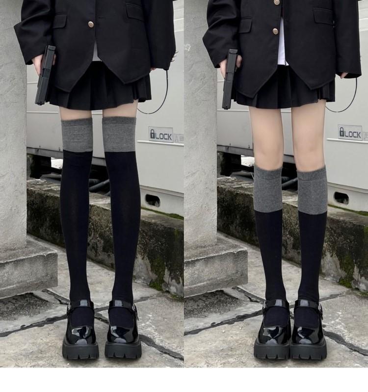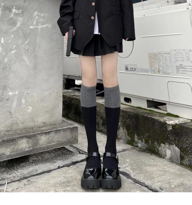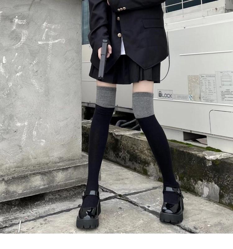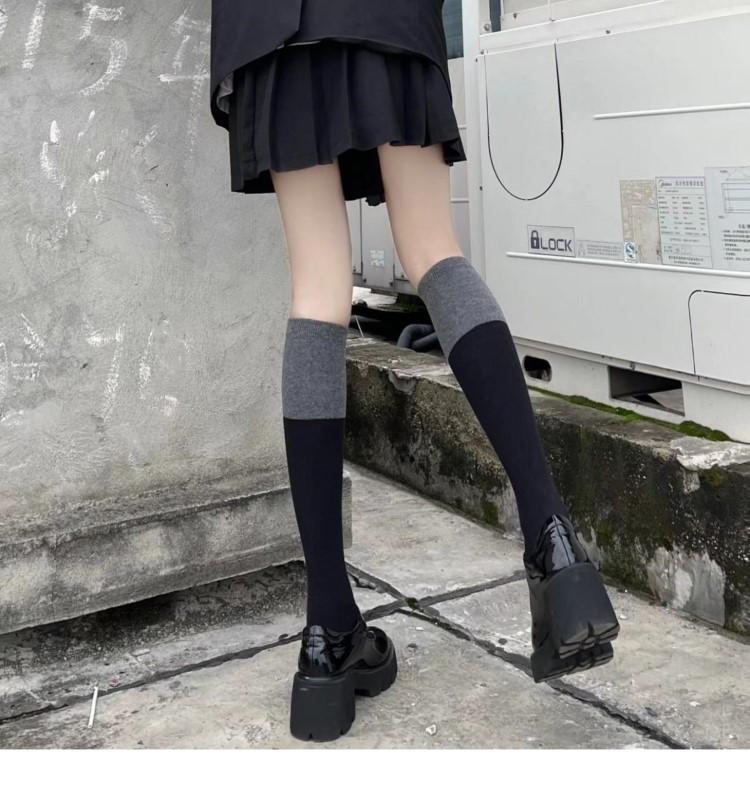 Calcetines de primavera y otoño para mujer, medias hasta la pantorrilla, calcetines hasta el muslo, calcetines por encima de la rodilla, adelgazantes, color sólido, negro, gris, calcetines jk a juego.